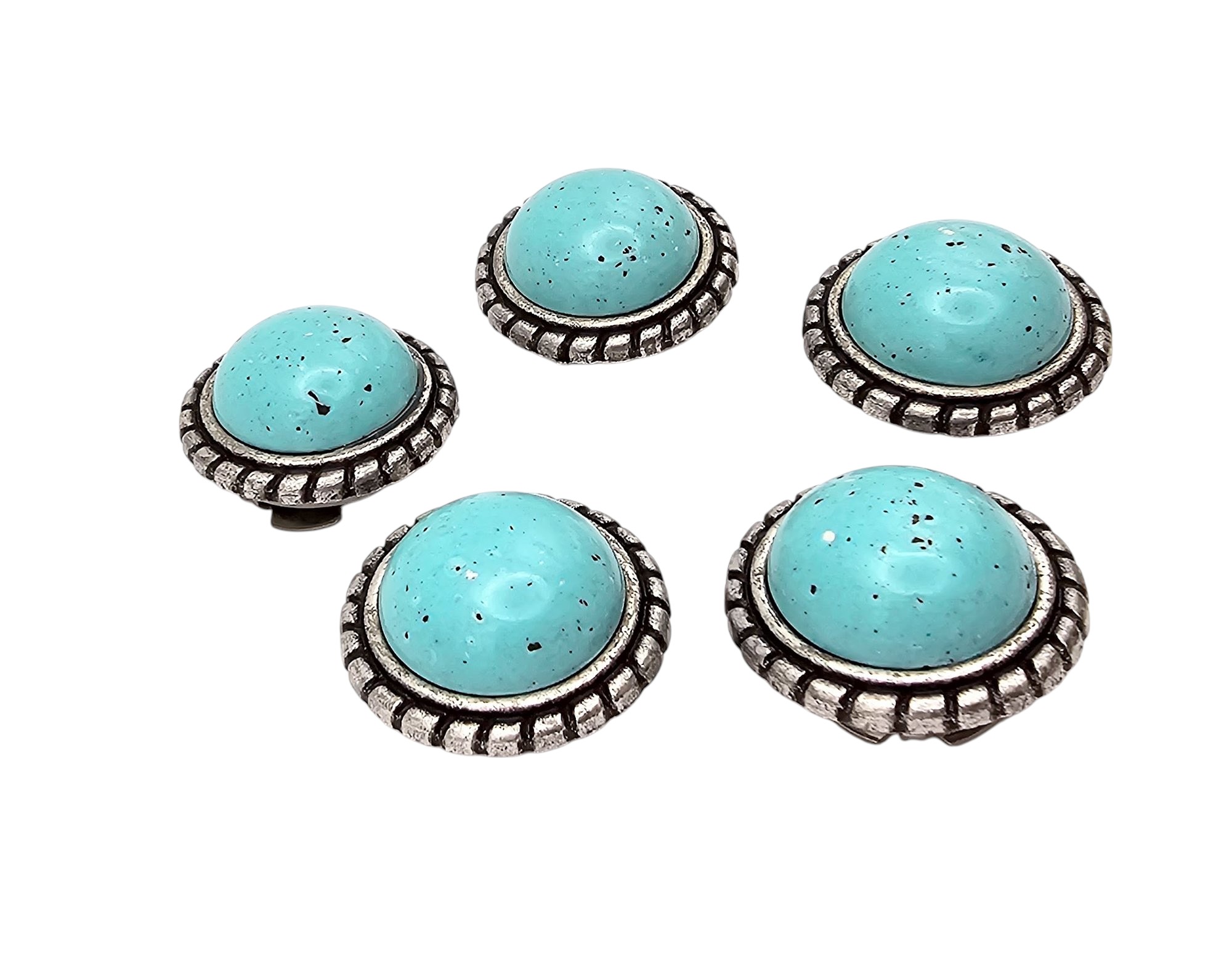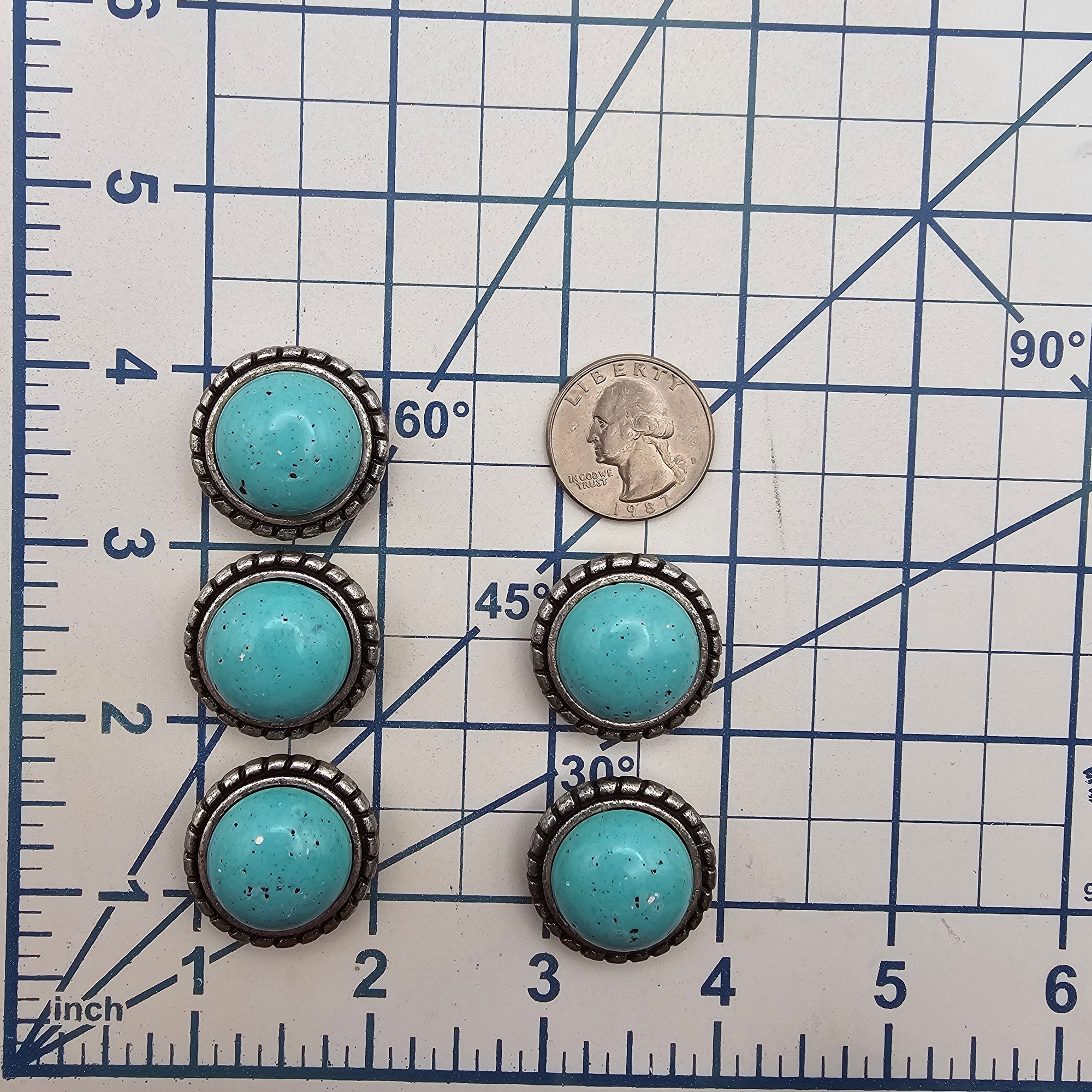 Southwestern Turquoise Nickel Silver Button Covers Lot of 5 55.5 G