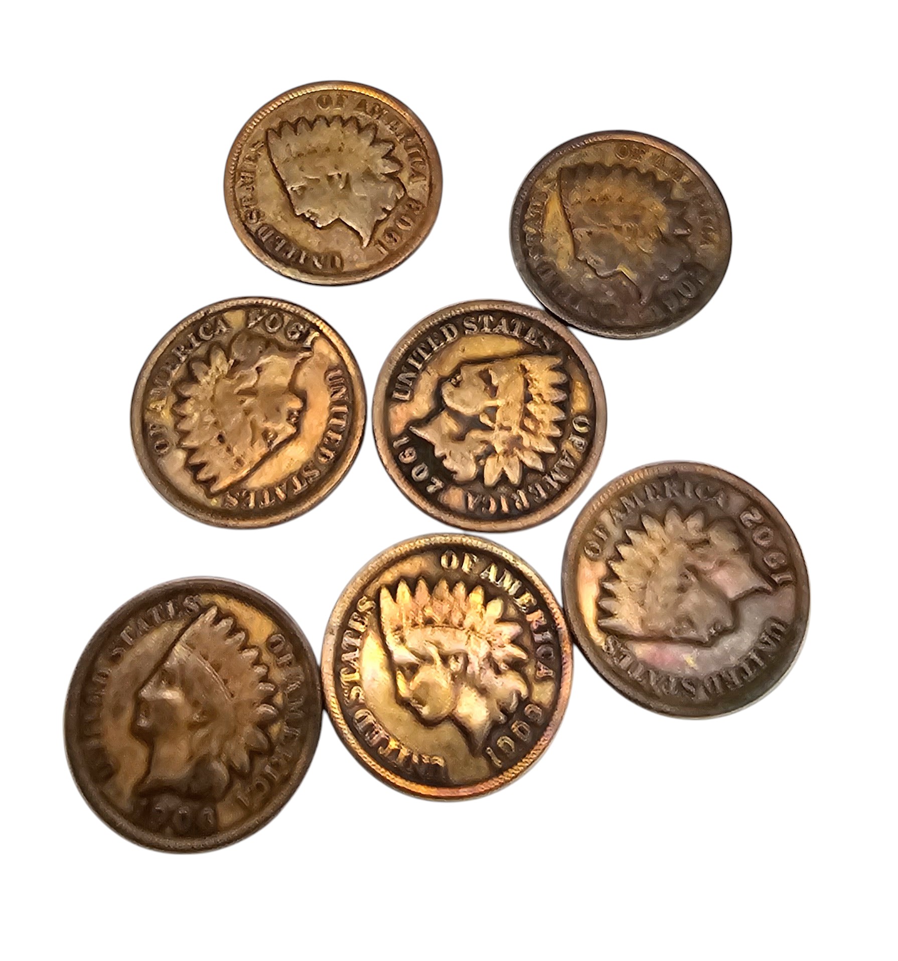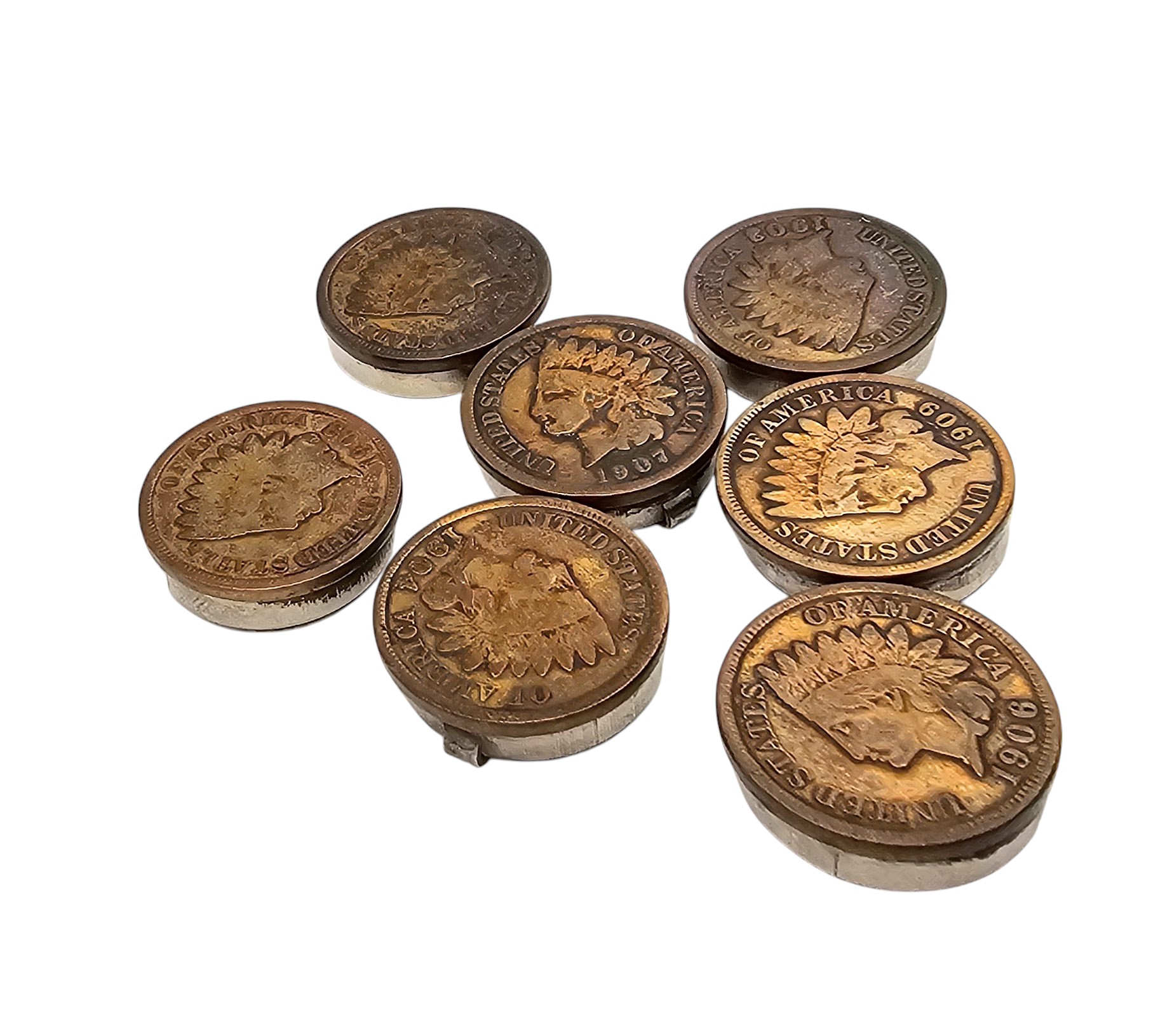Vintage Indian Head Penny Button Covers Lot of 7 37.5 G