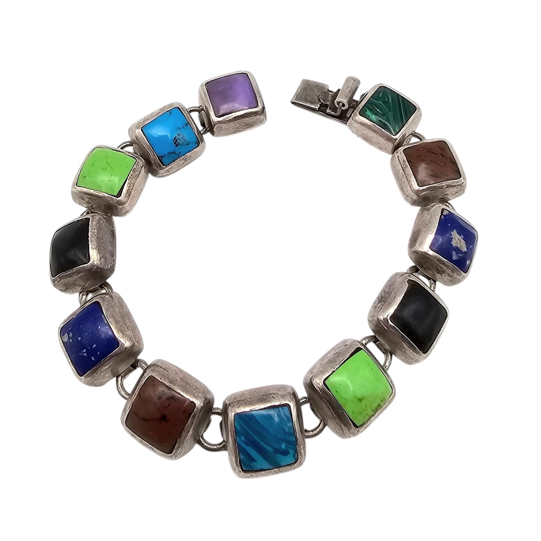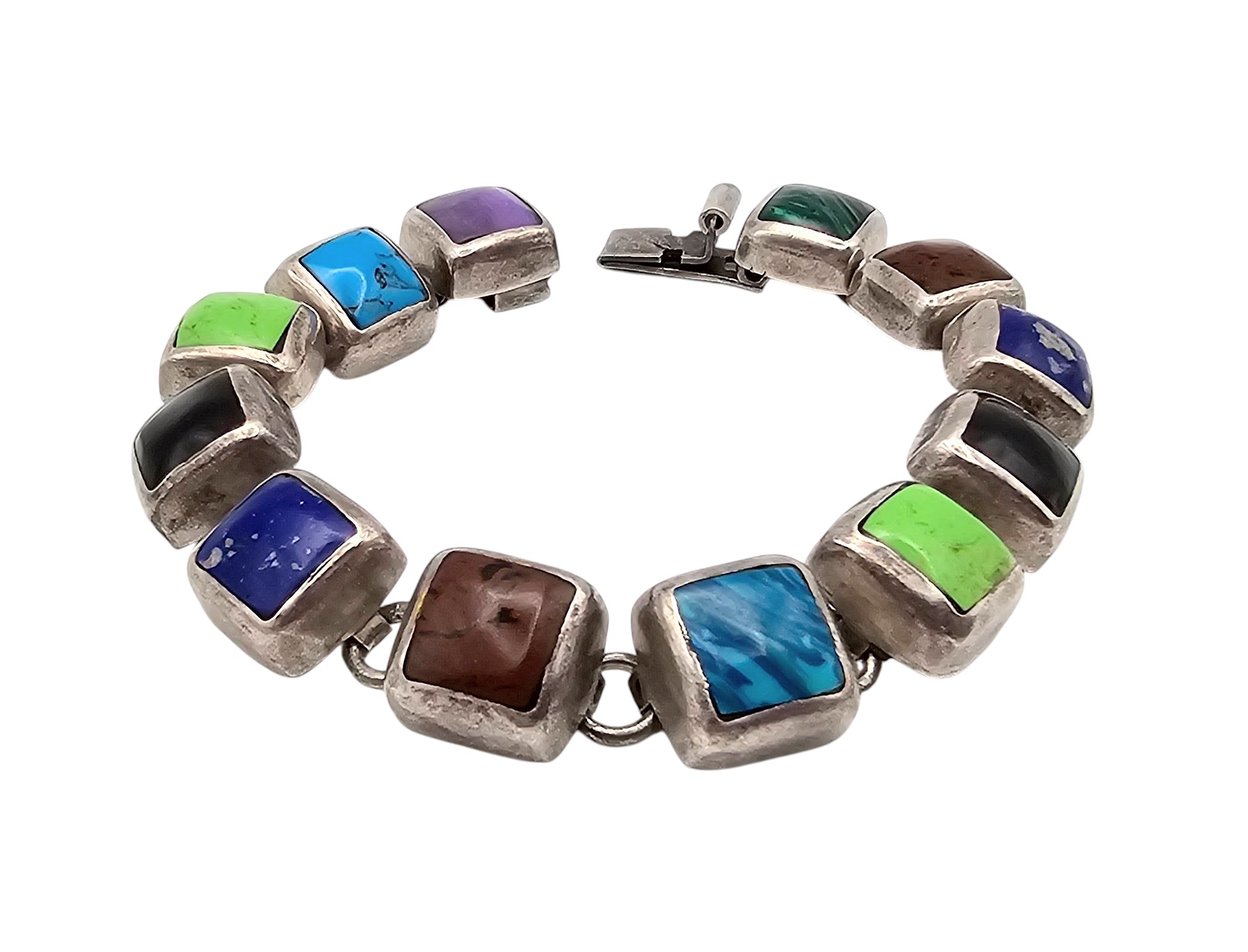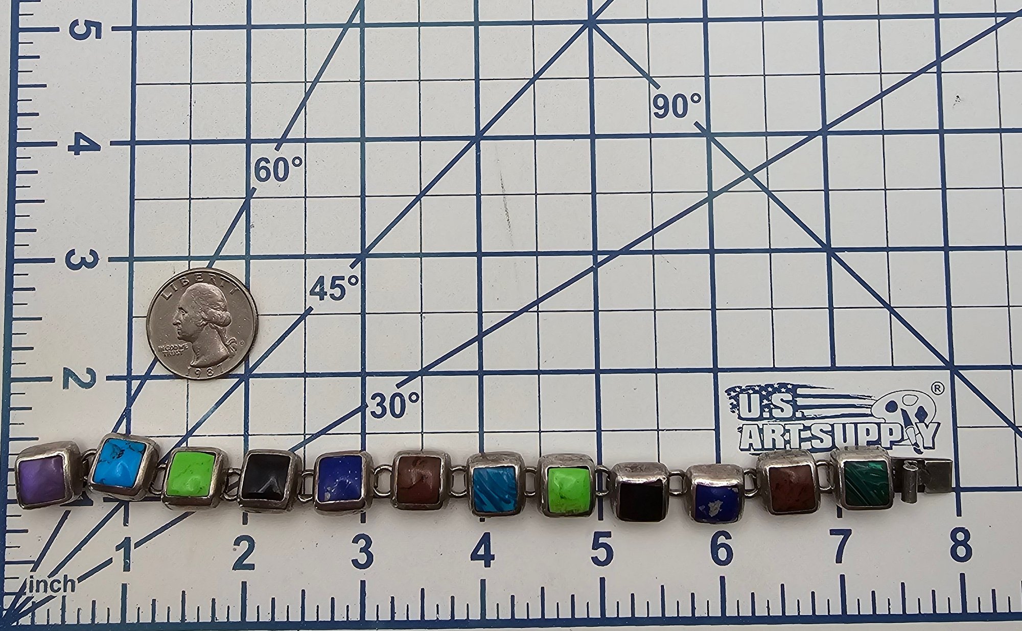 Mexico TC-311 Multi Stone Sterling Silver Brac40.5 G