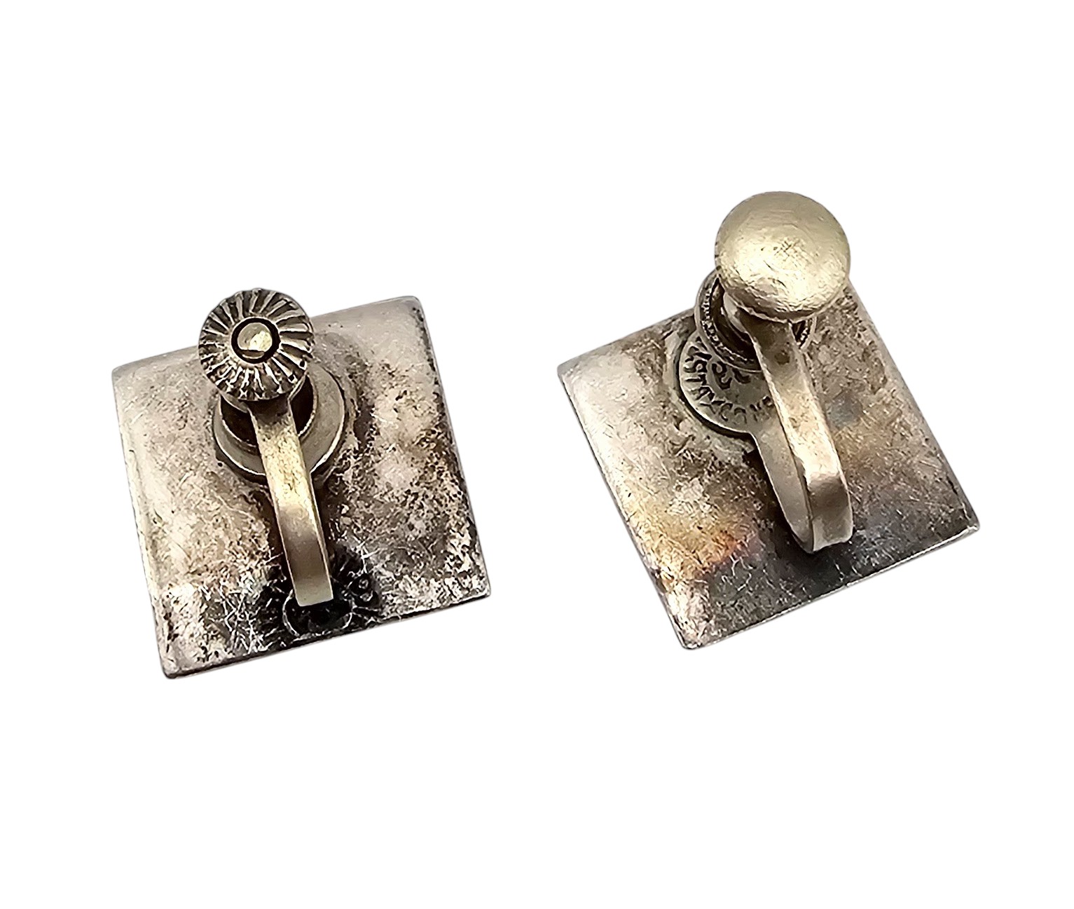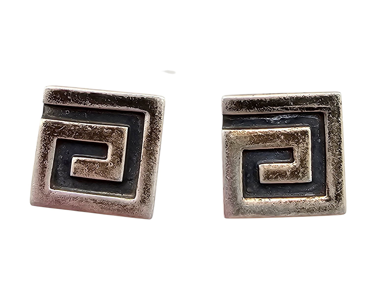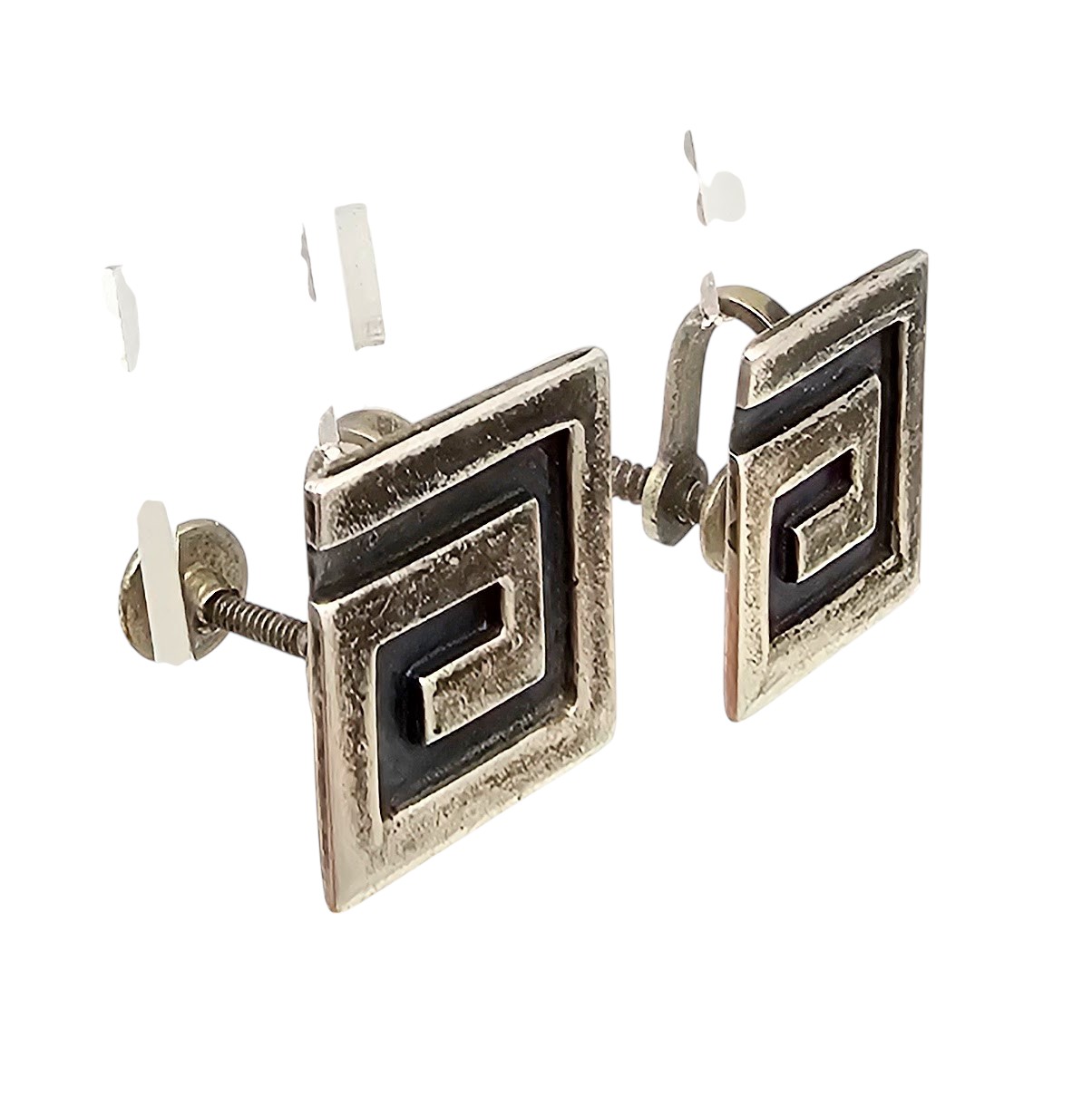 ECC Taxco Mexico Sterling Silver Aztec Style Earrings 6.7 G