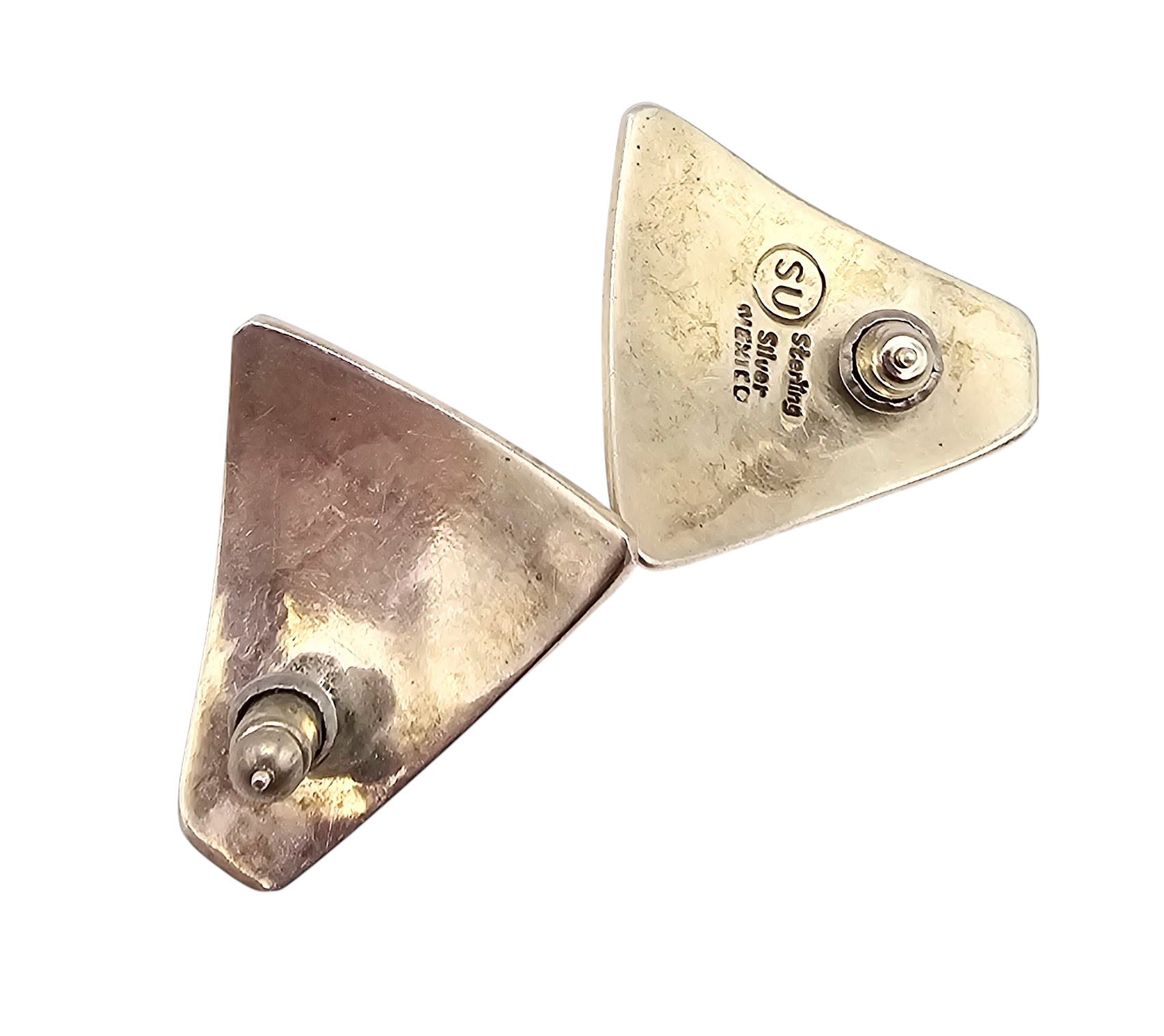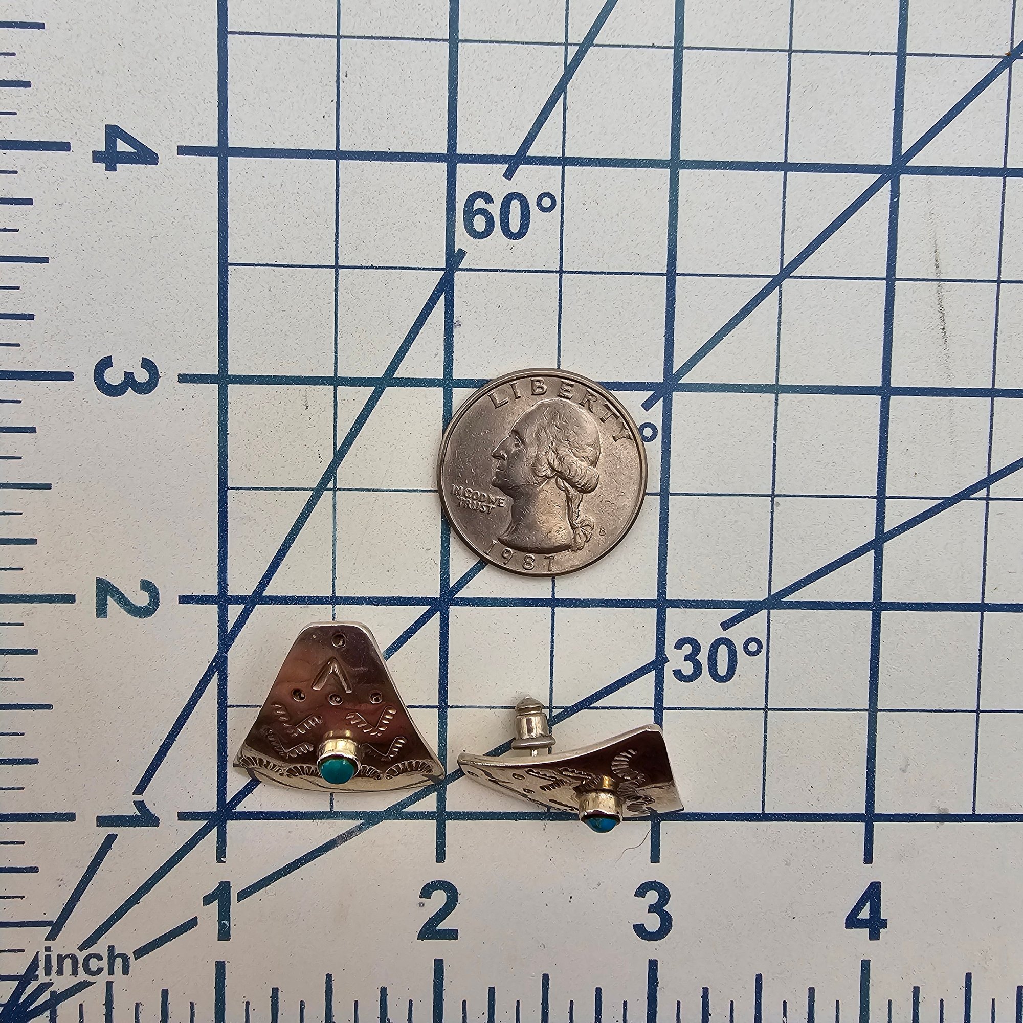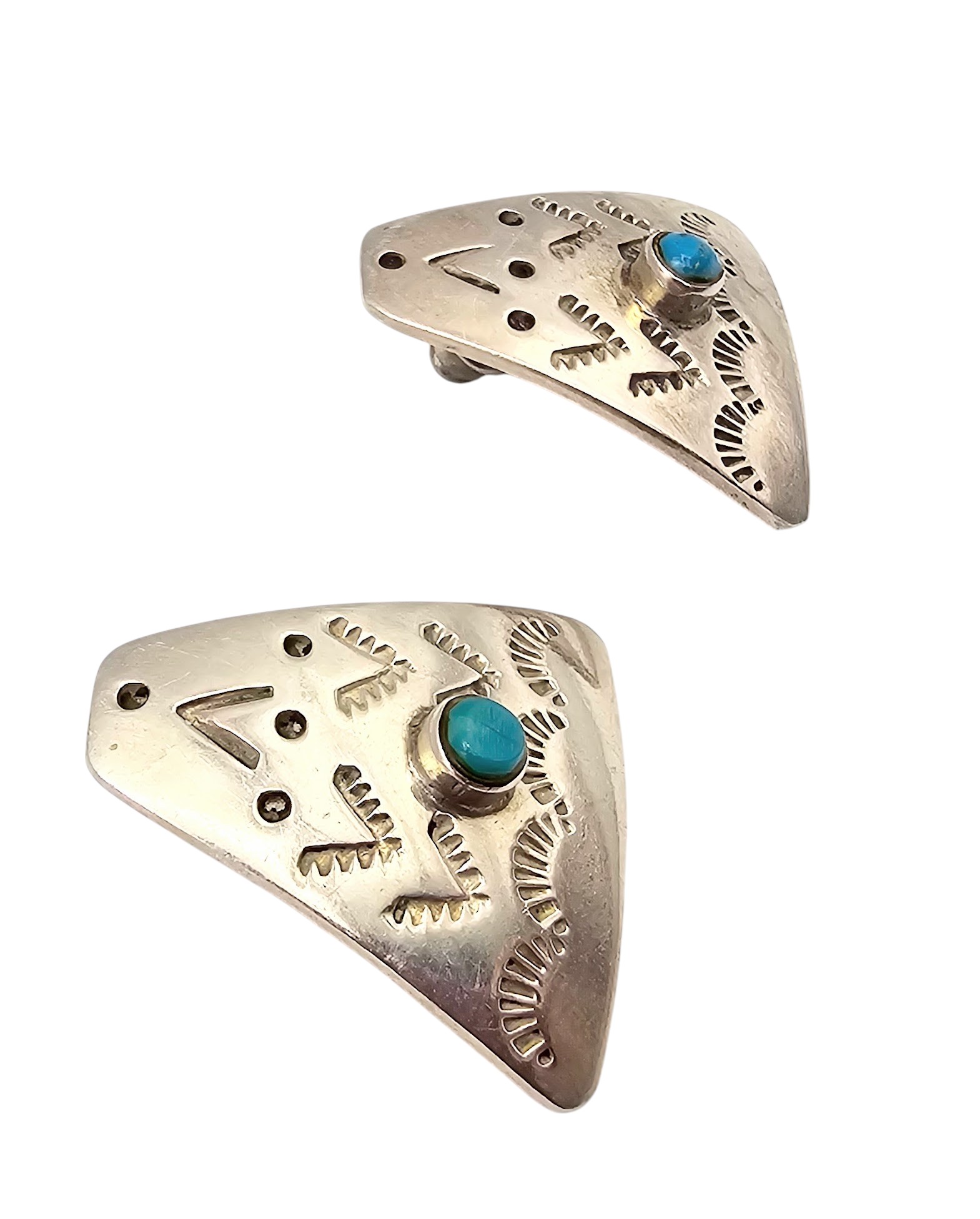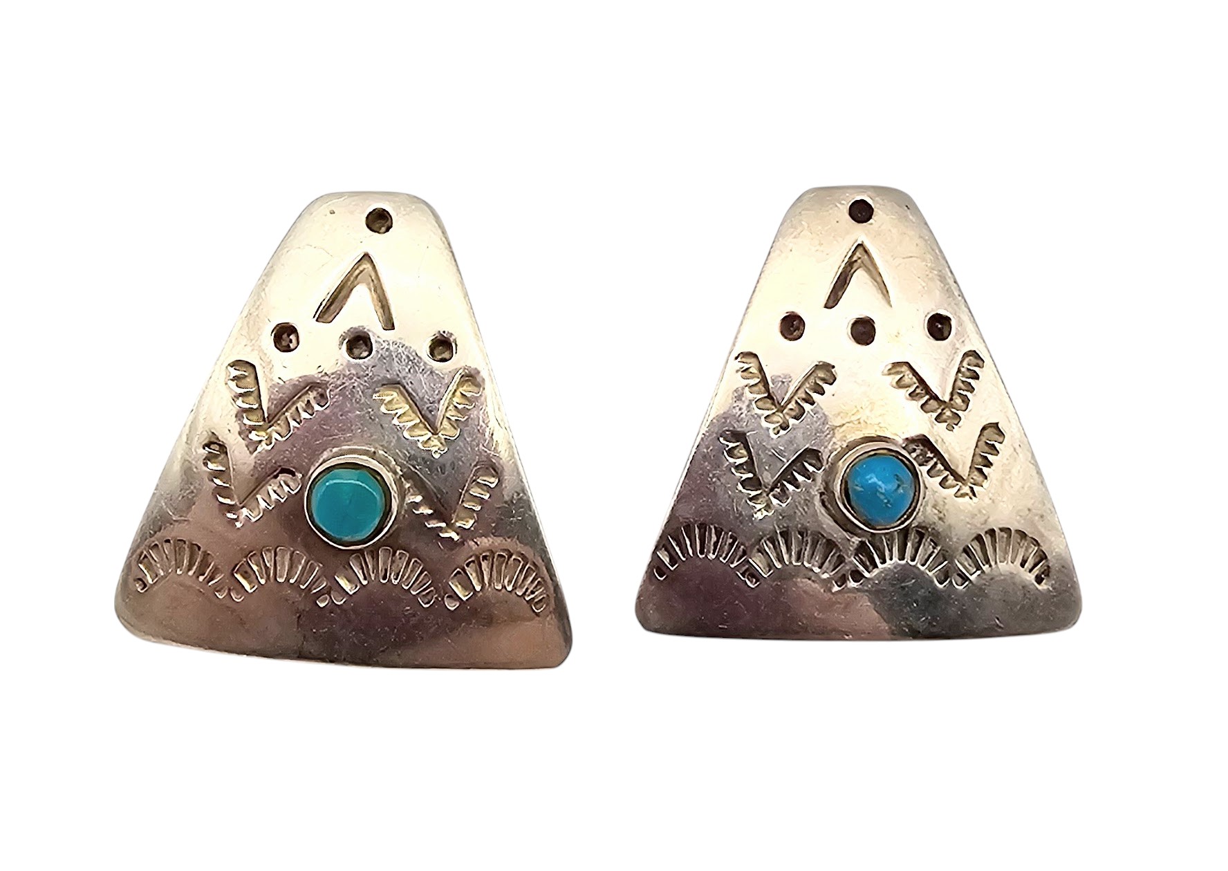 Mexico Turquoise Sterling Silver Stamp Work Earrings 11 G