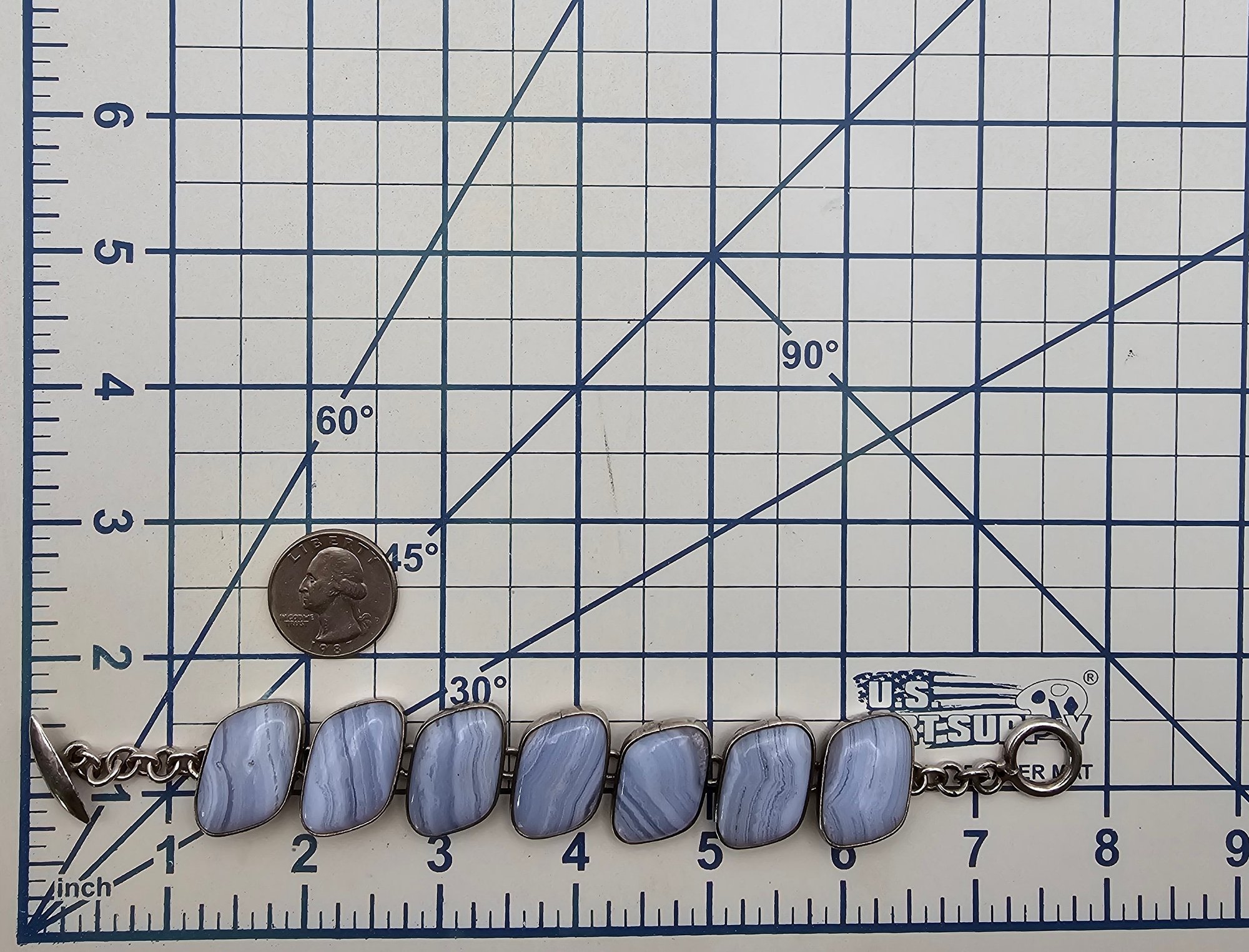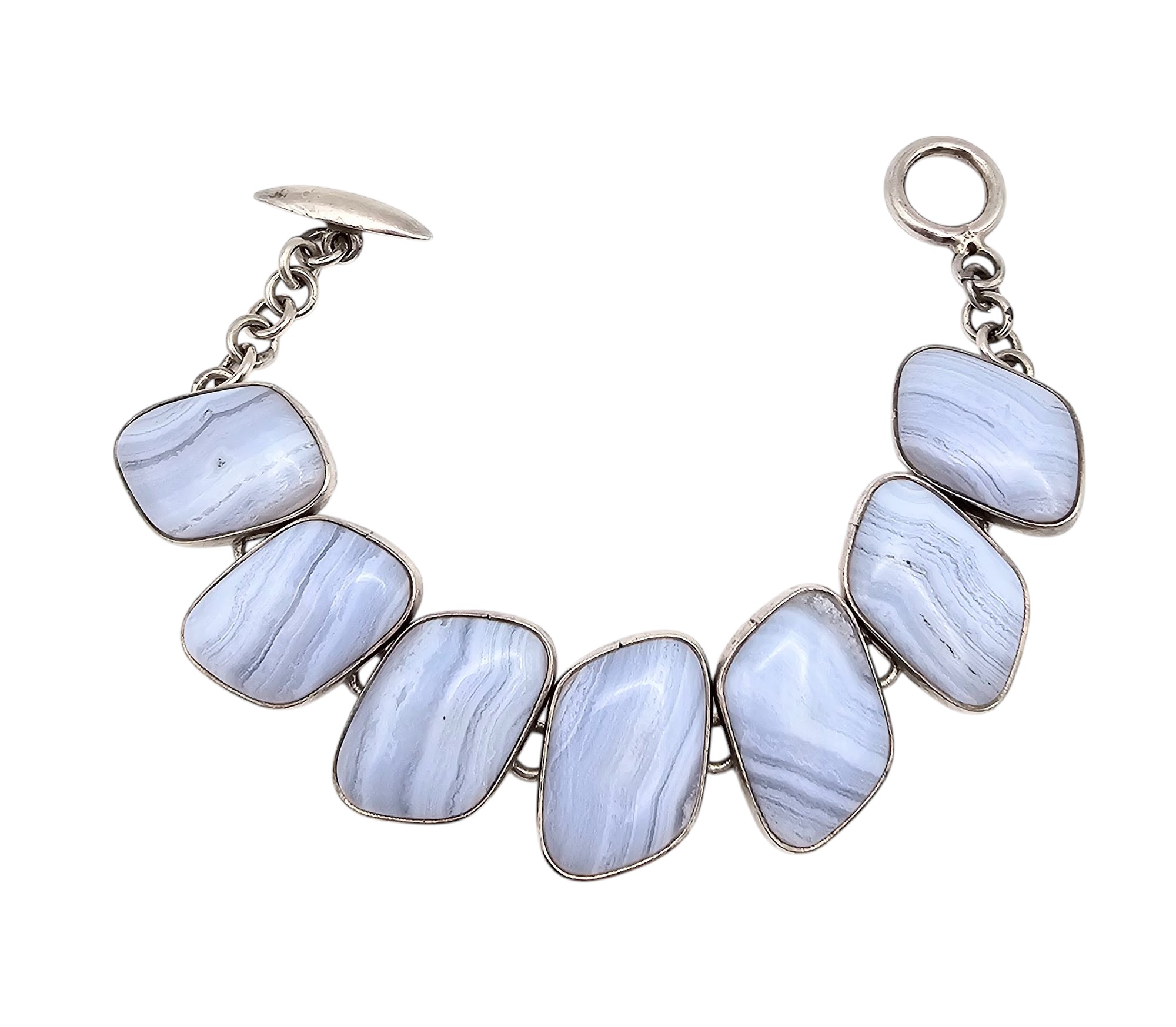 Citlal Mexico Blue Lace Agate Sterling Silver Toggle Bracelet 57.1 G