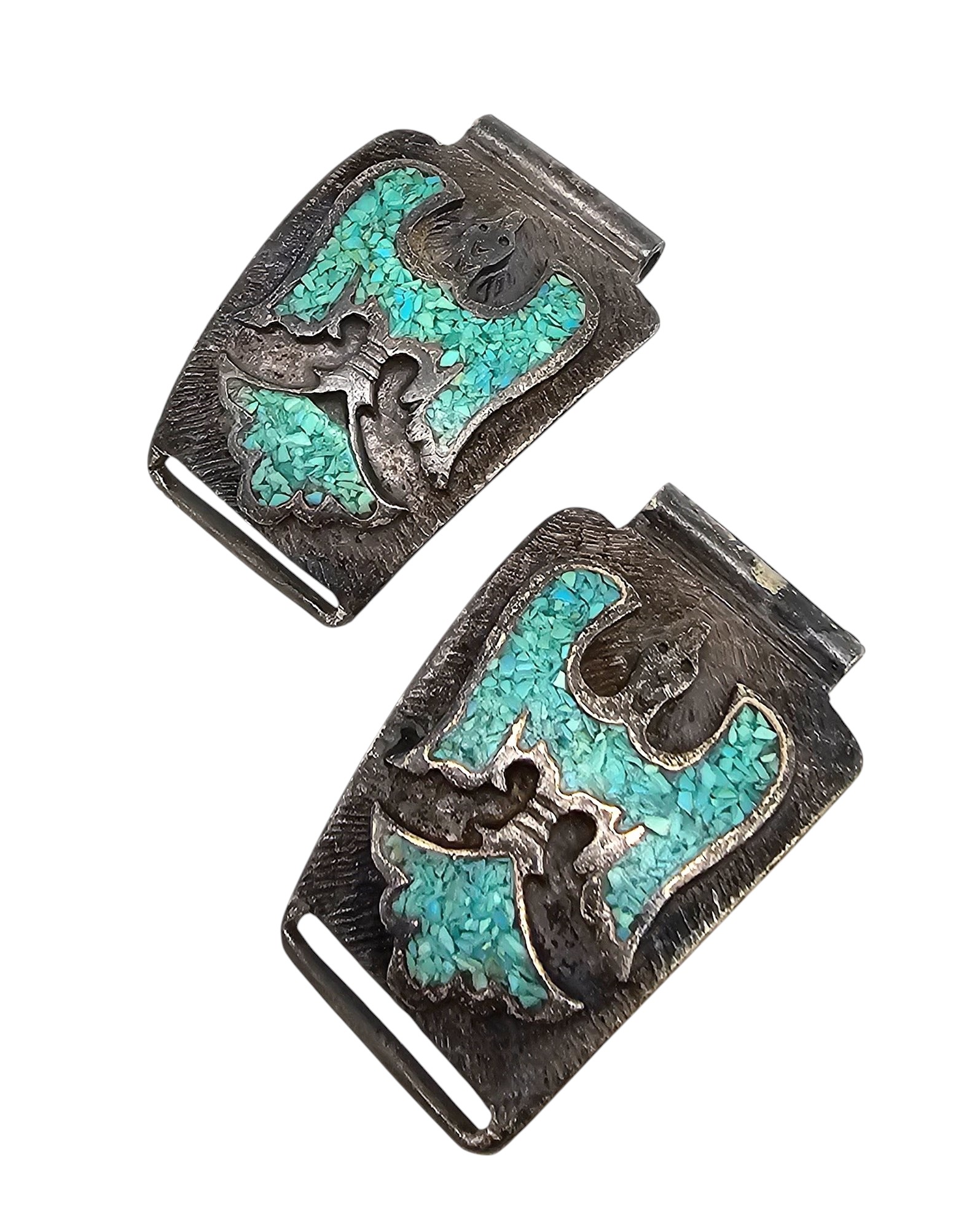 Navajo Crushed Turquoise Sterling Silver Thunderbird Watch Nibs 21.8 G