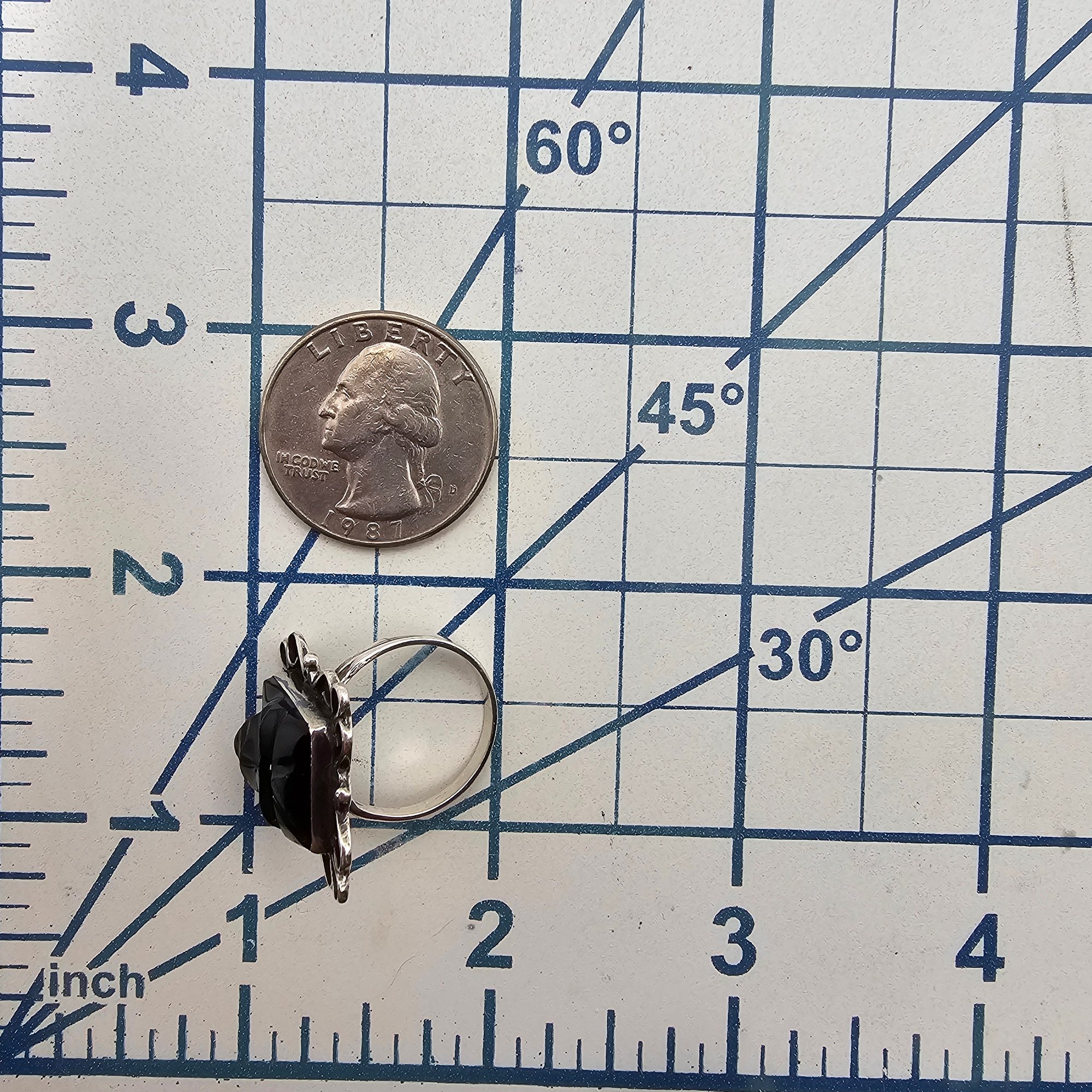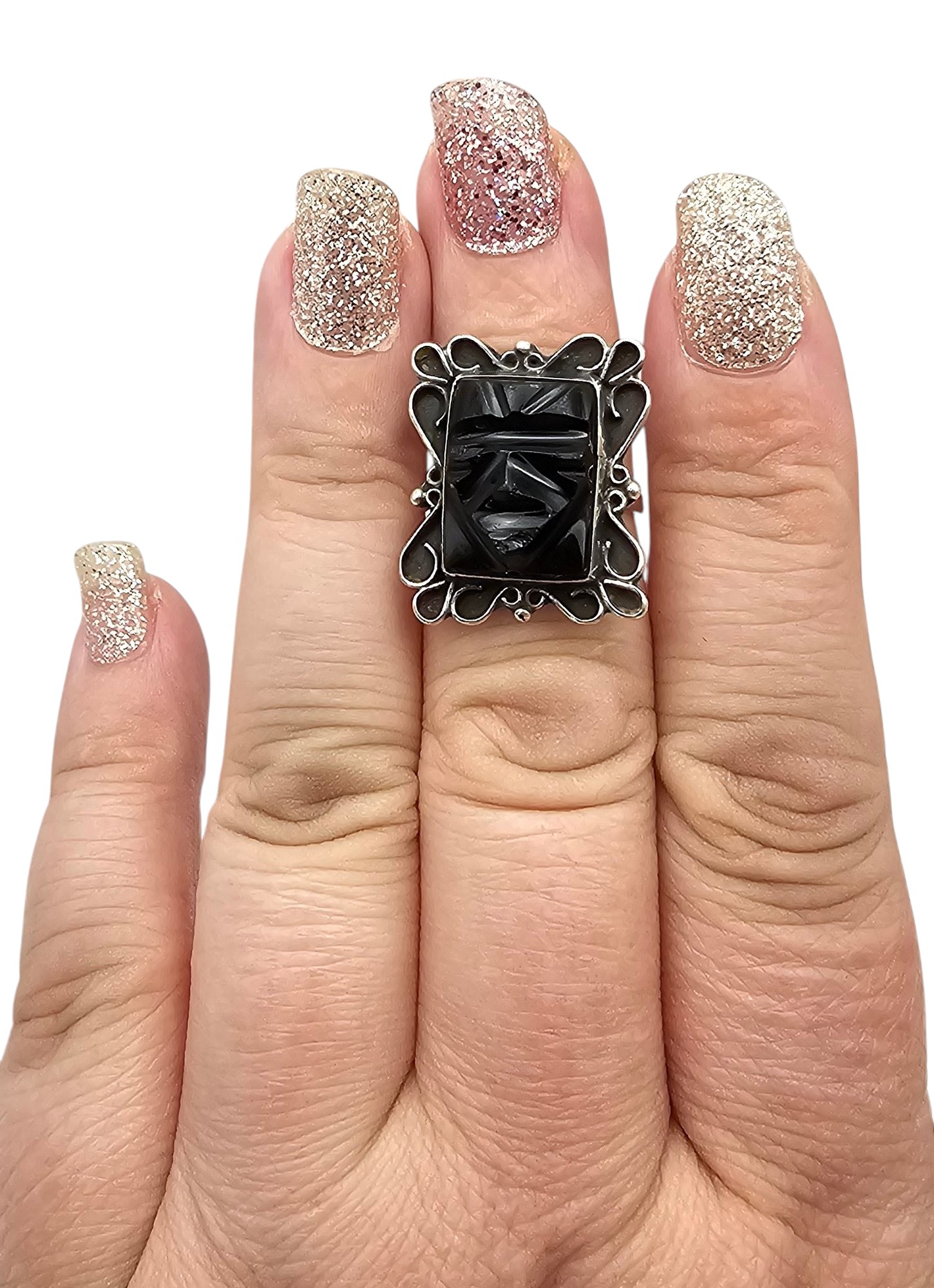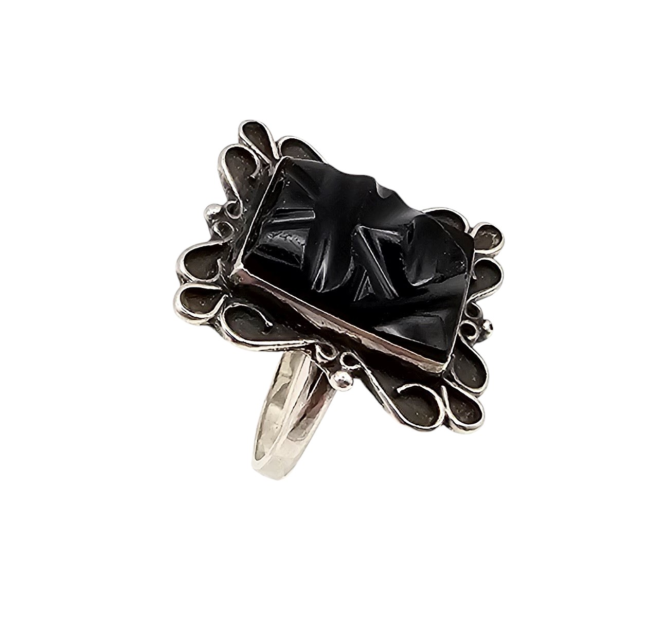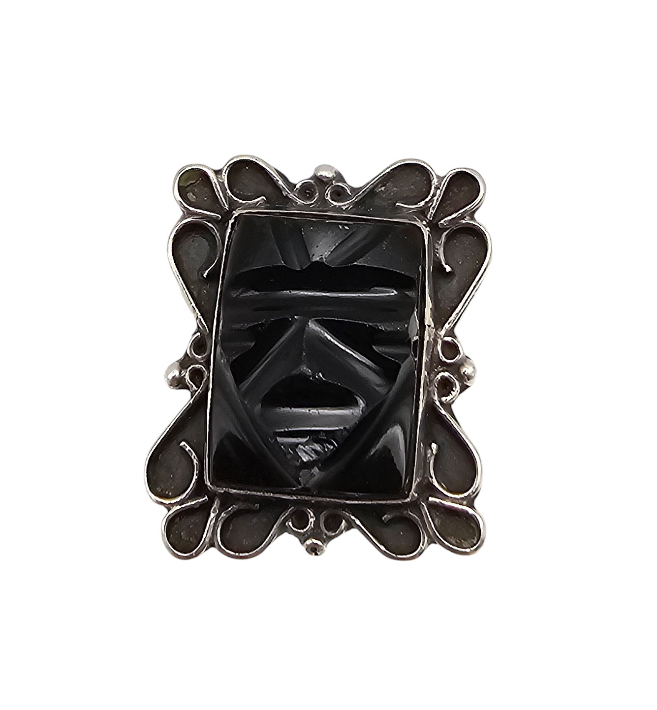 Onyx Sterling Silver Carved Face Mask Ring Size 6 4.6 G