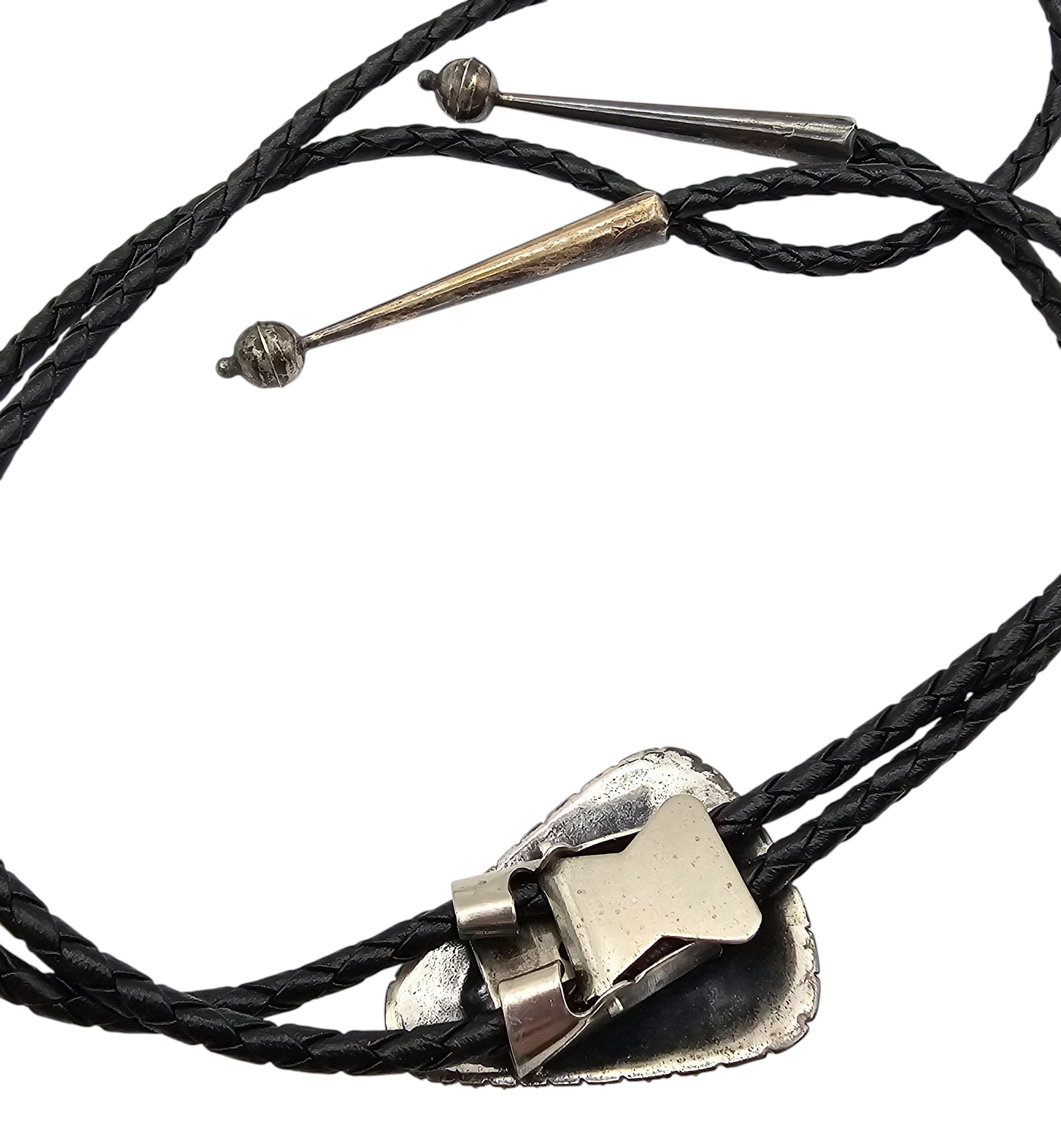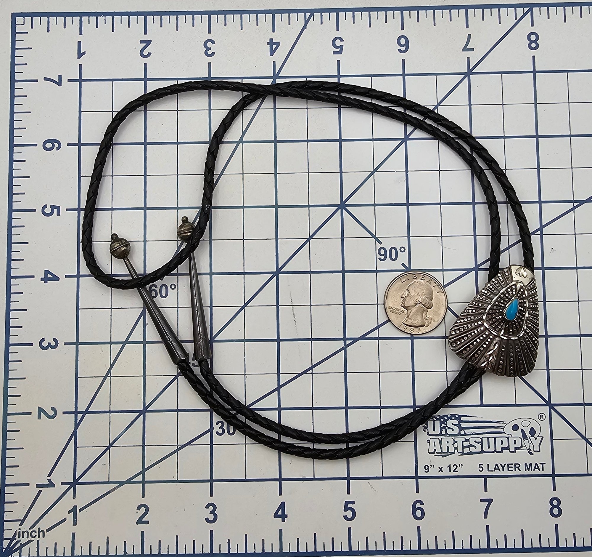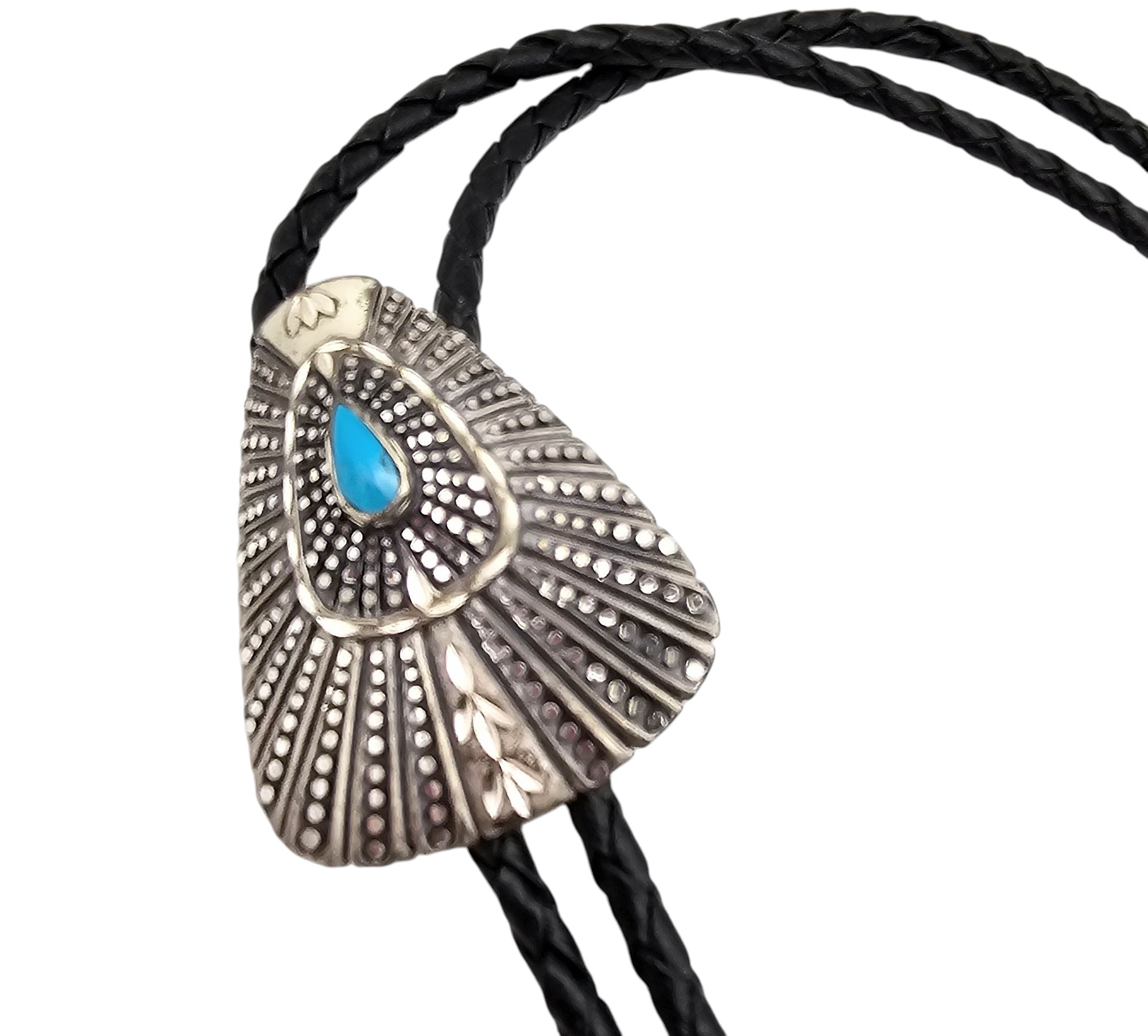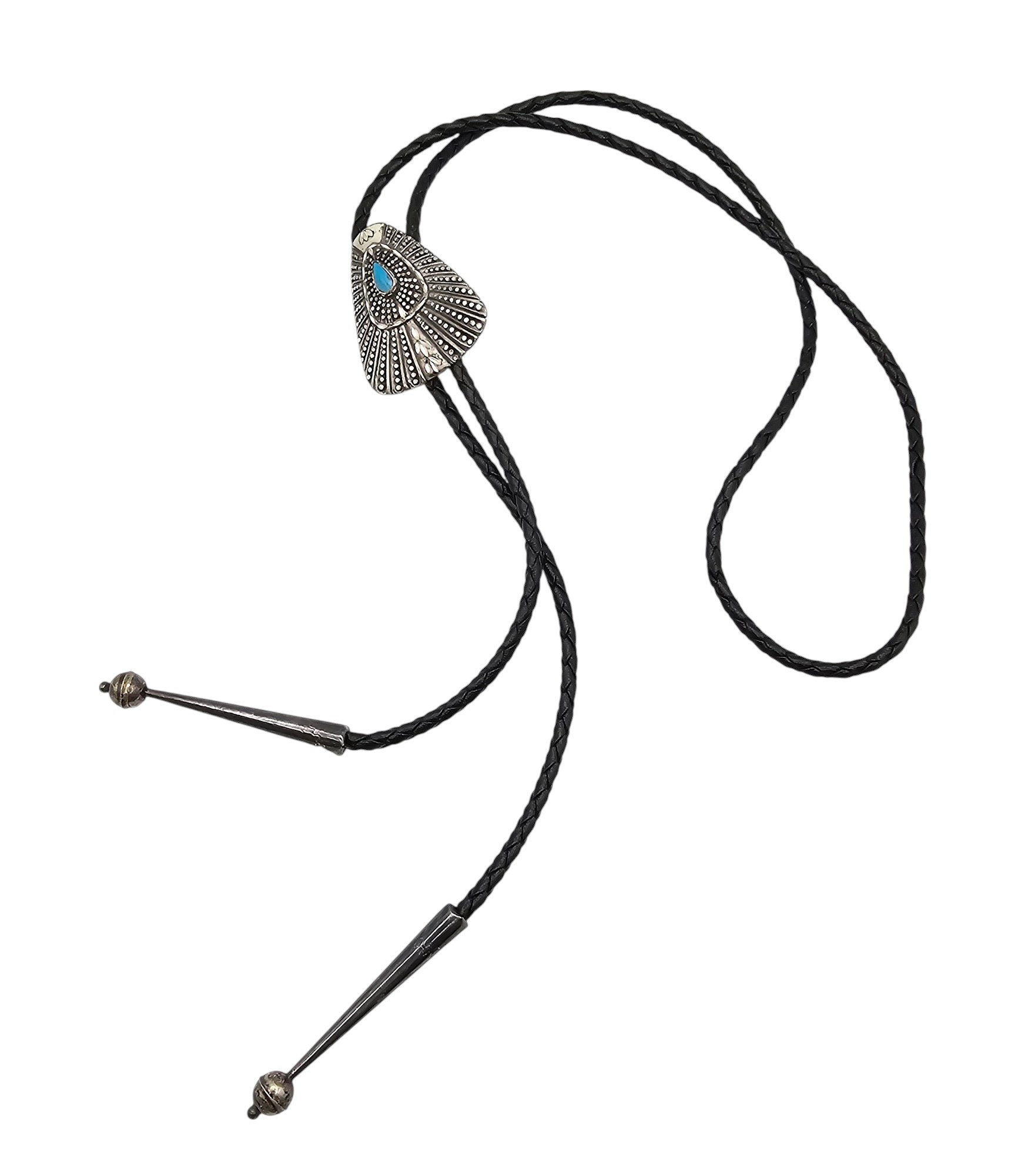 Signed Native Turquoise Sterling Silver Bolo Tie 31.1 G