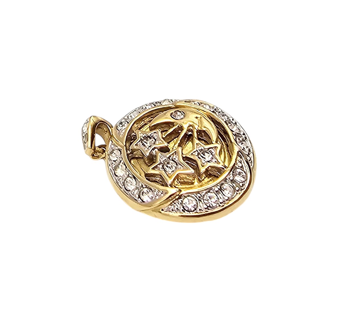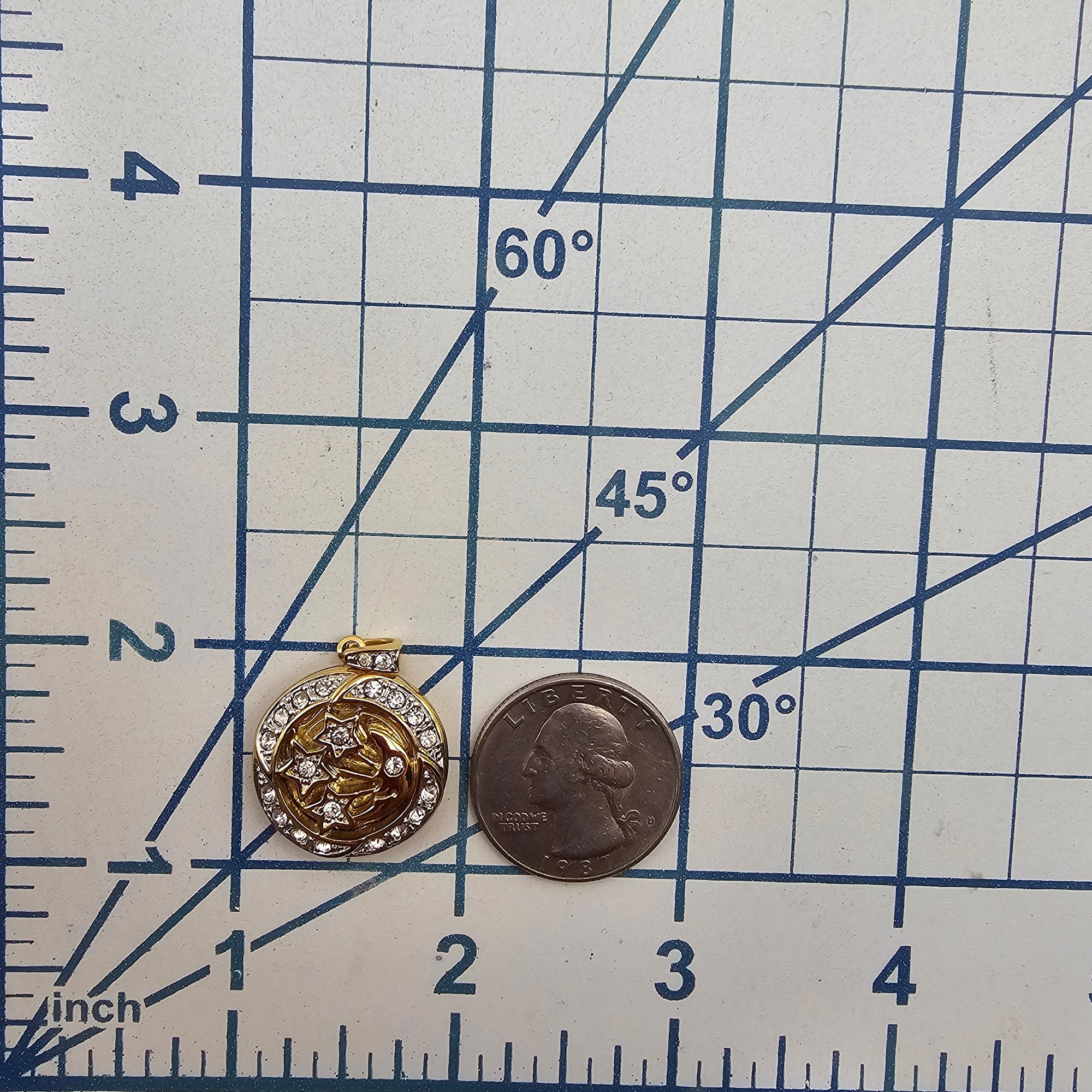 Rhinestone Gold Filled Floral Locket Pendant 7.7 G