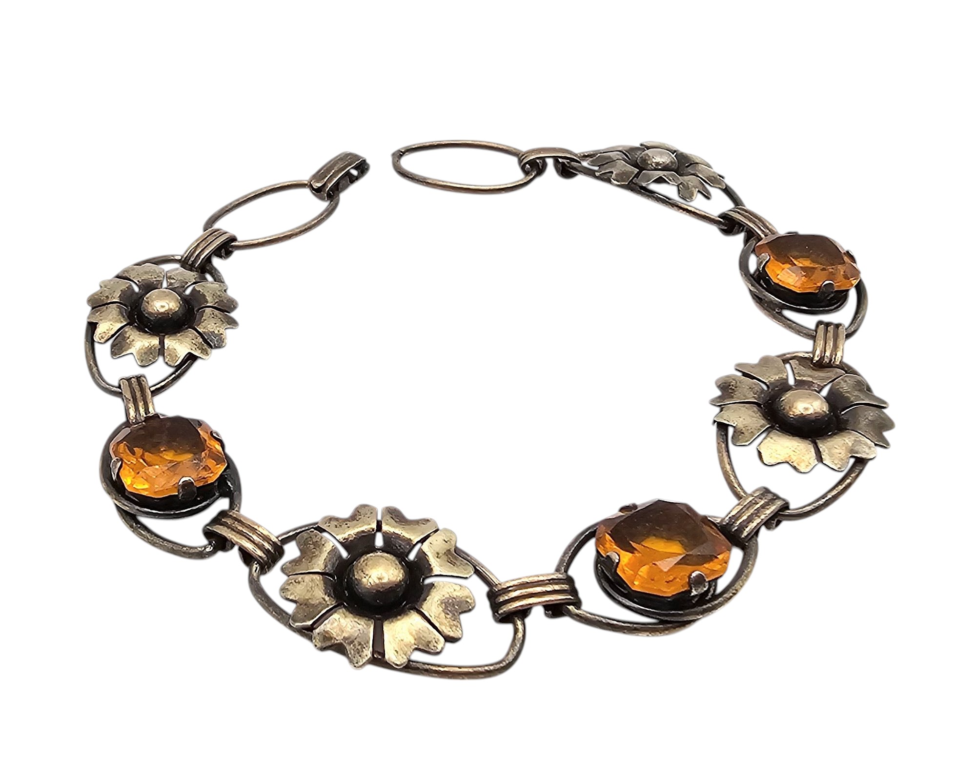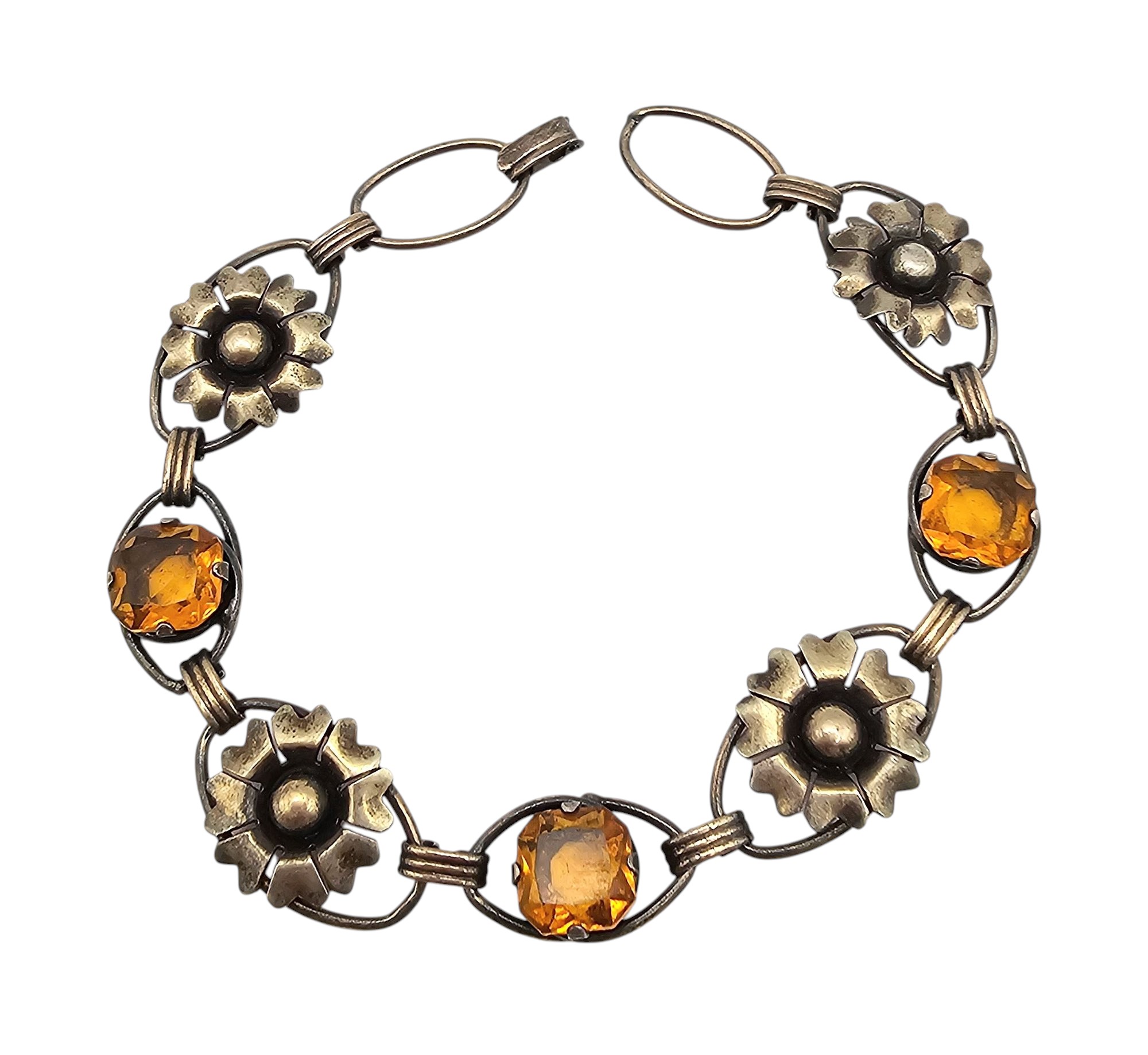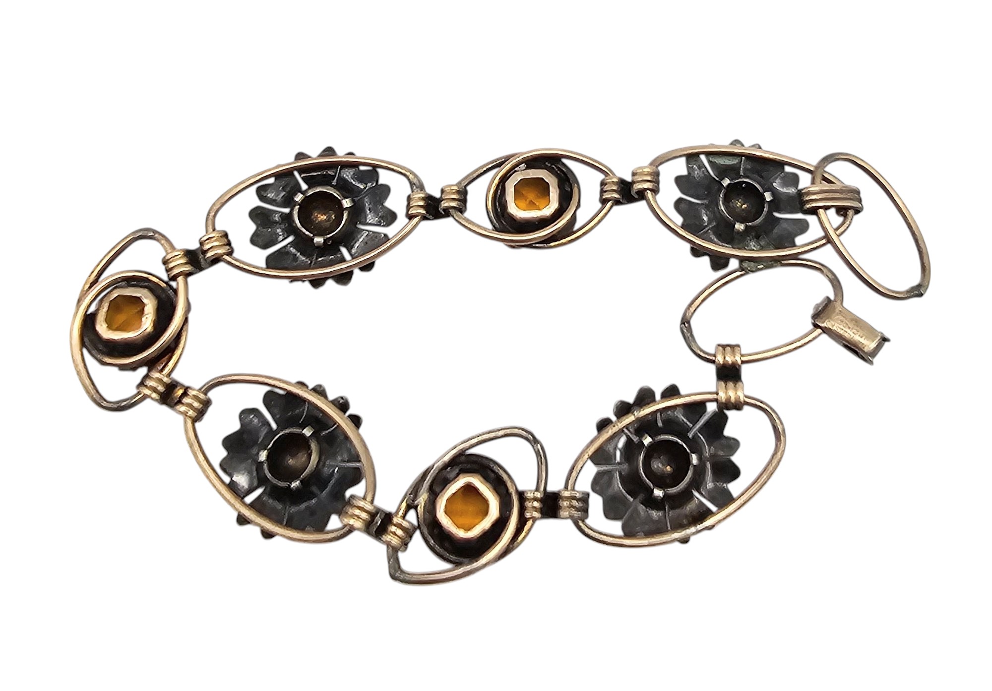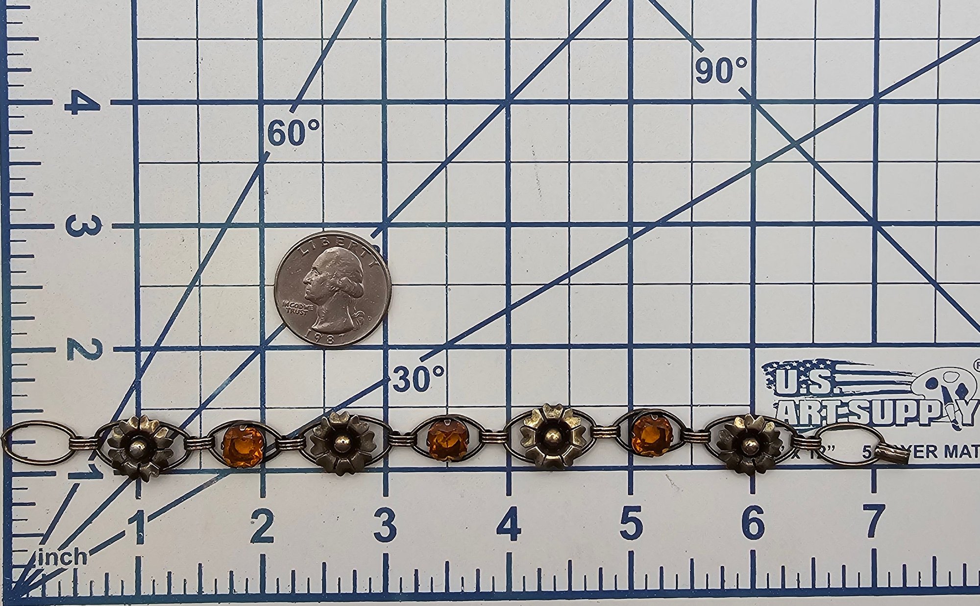 12K Gold Filled Rhinestone Flower Bracelet 9 G