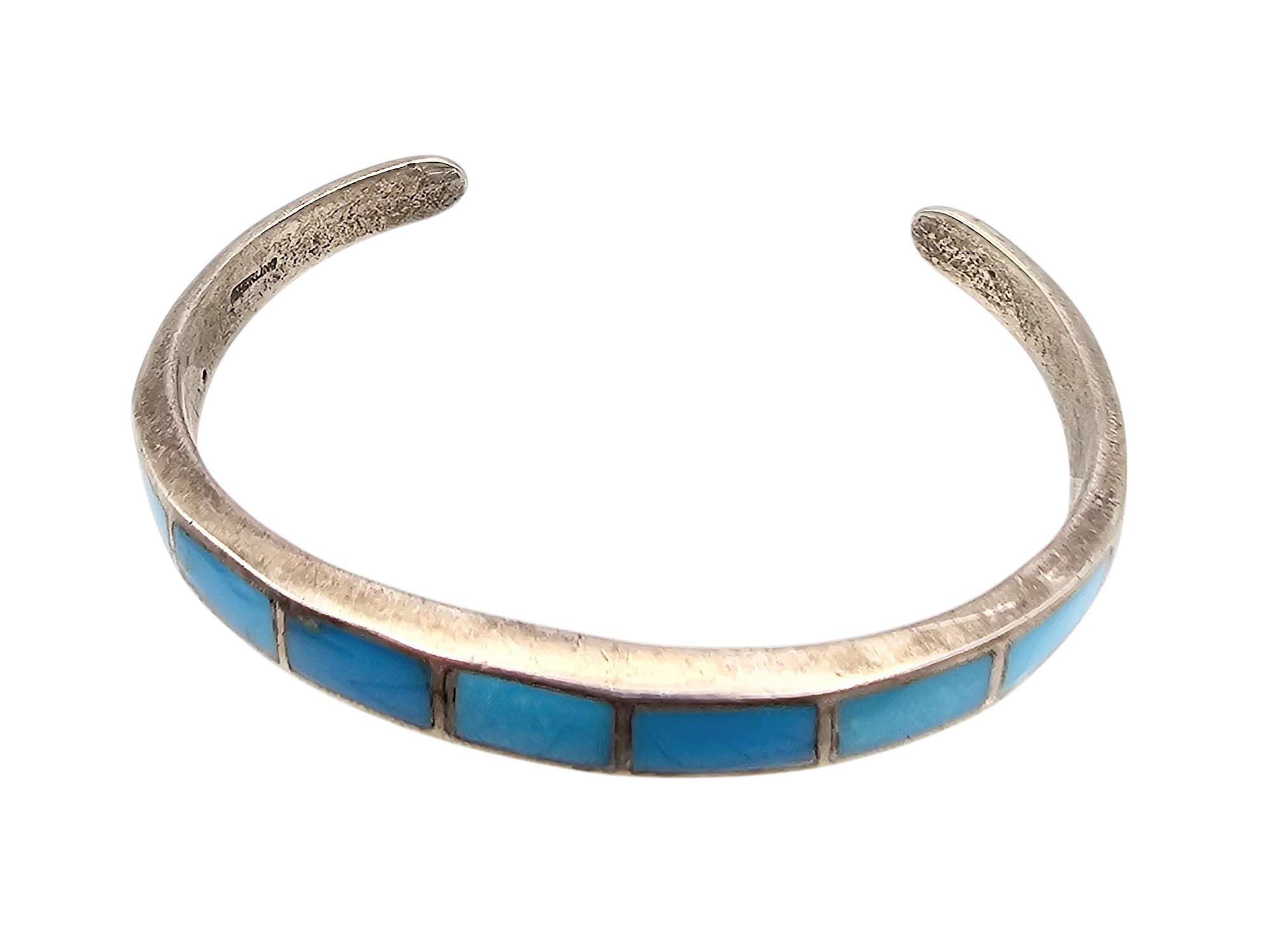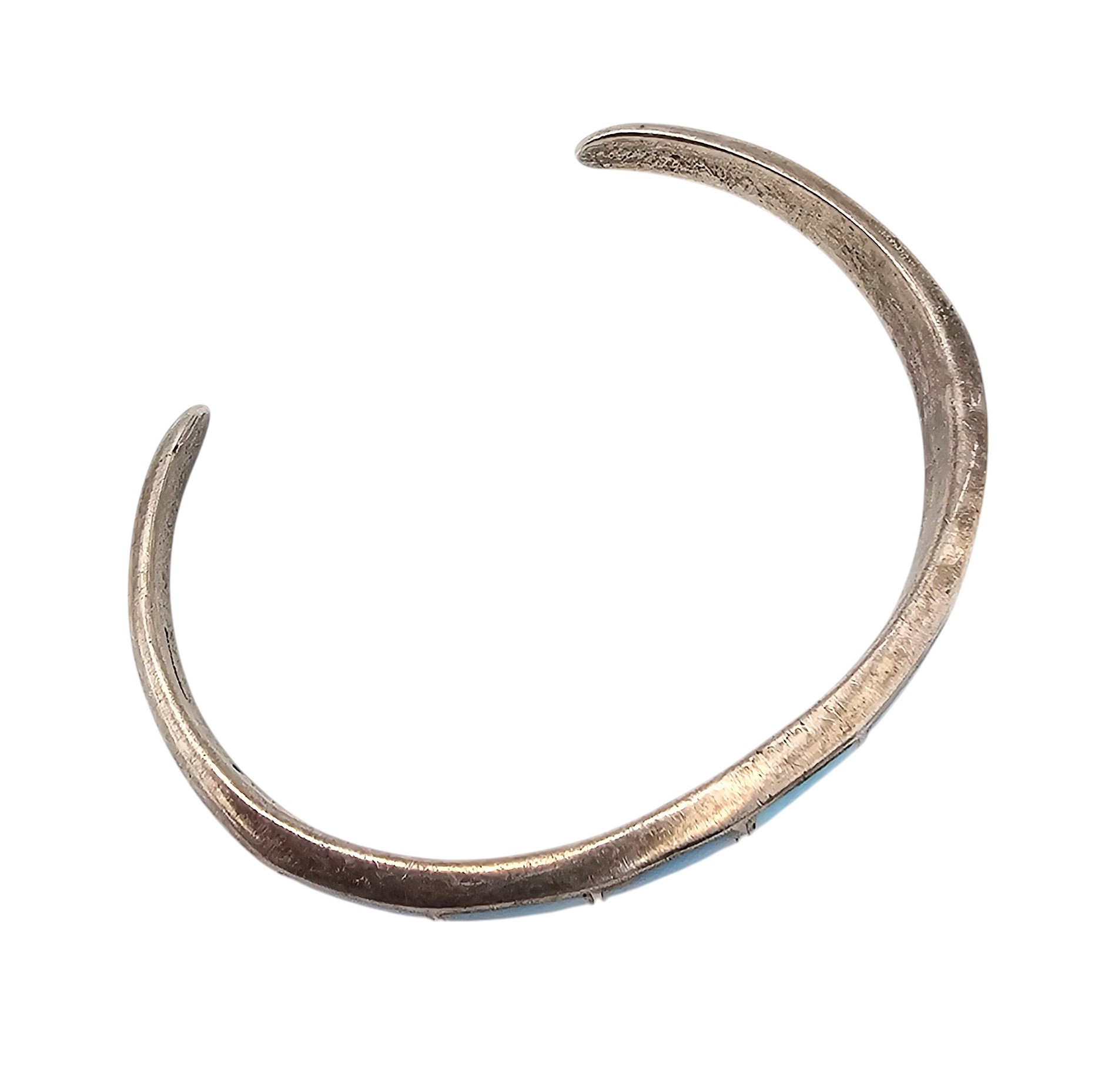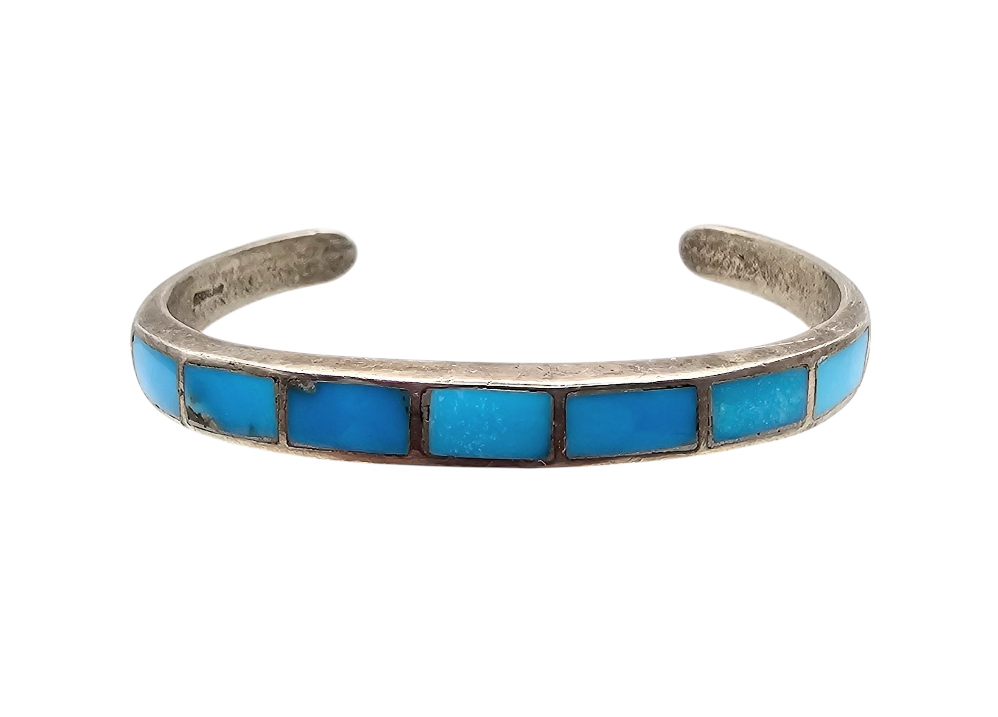 Native Turquoise Sterling Silver Inlay Cuff Bracelet 15.5 G