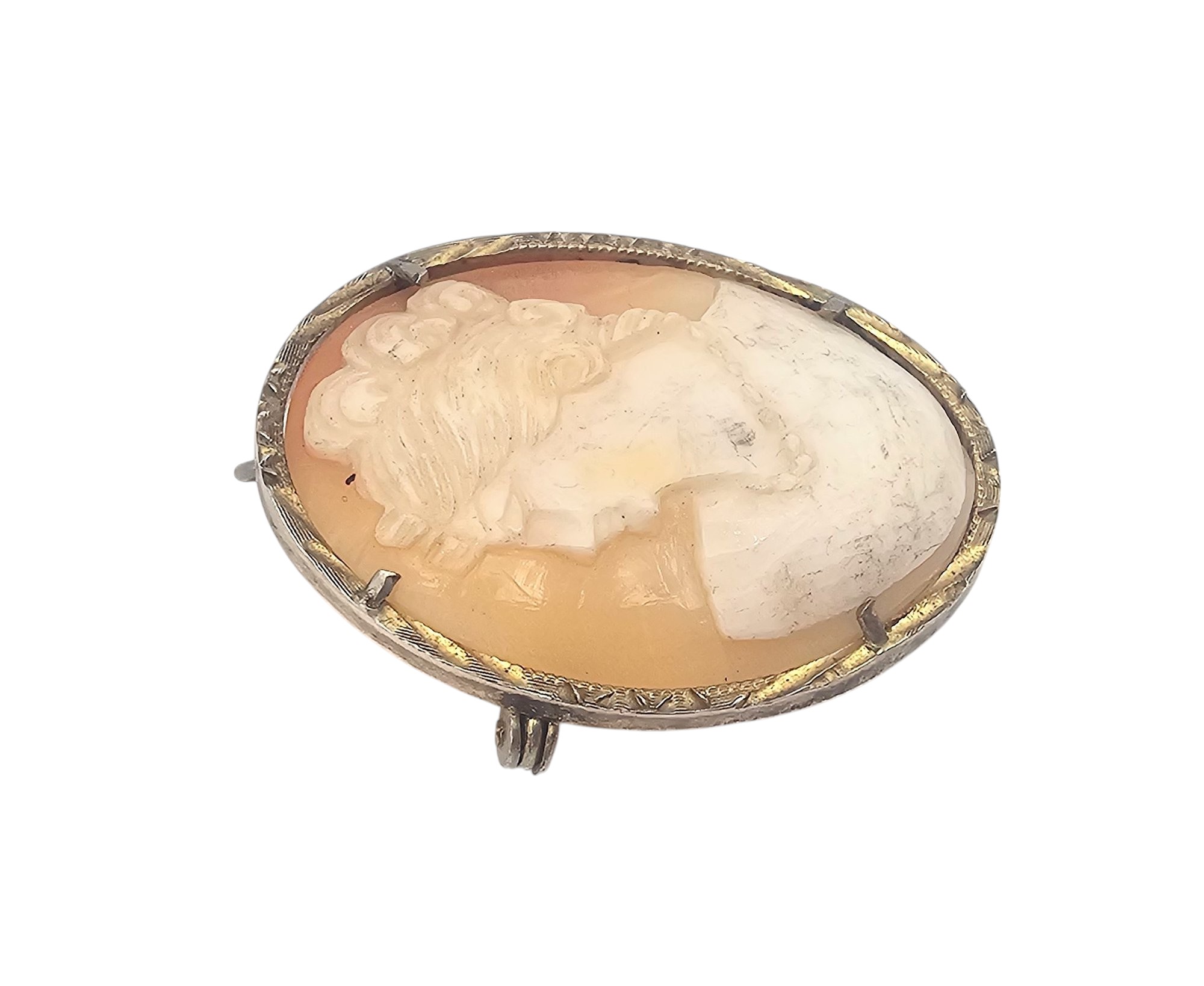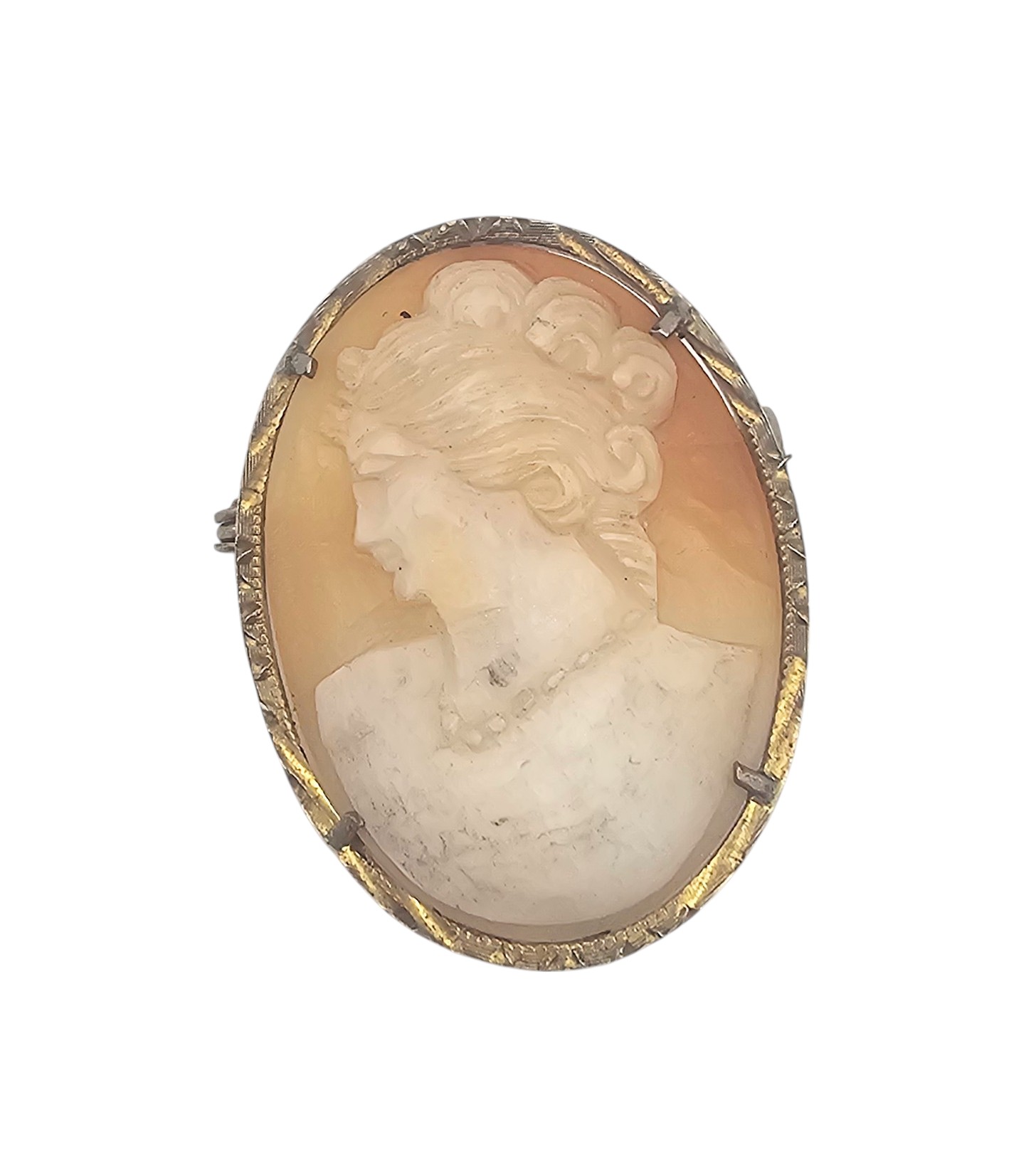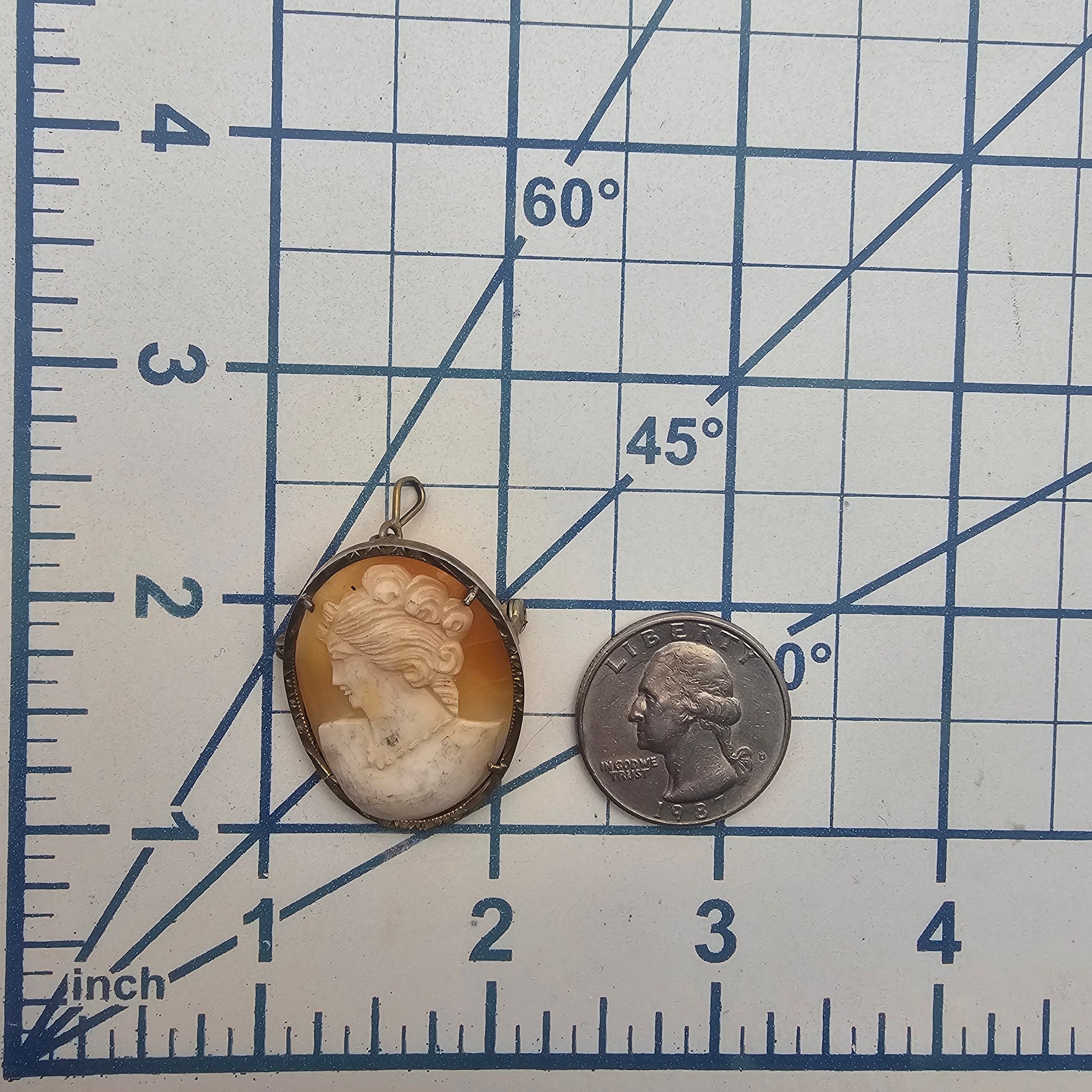Vintage Shell Carved Cameo Gold Filled Brooch Pendant 5.4 G