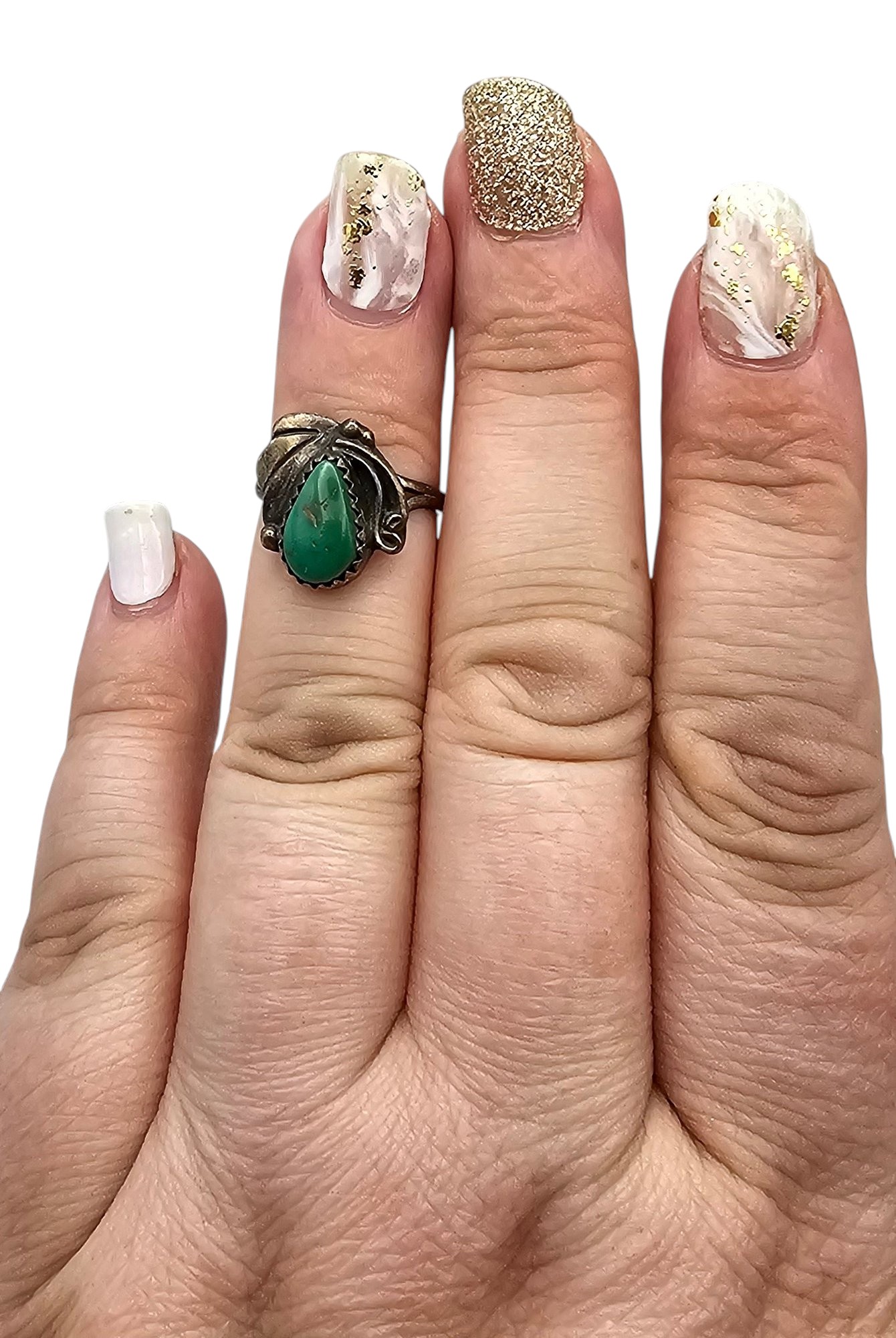 Sam Arviso Navajo Turquoise Sterling Silver Ring Size 4.5 2.6 G