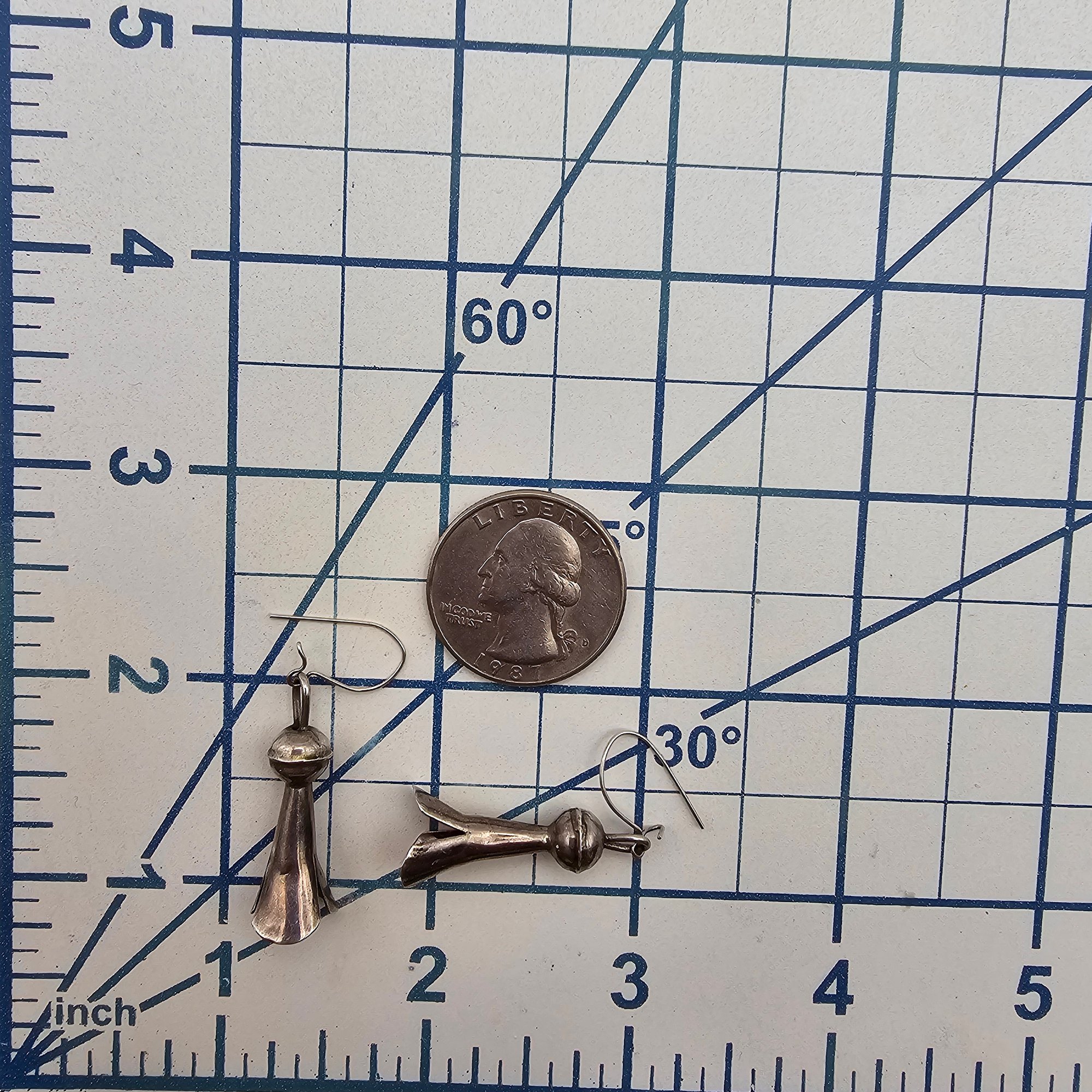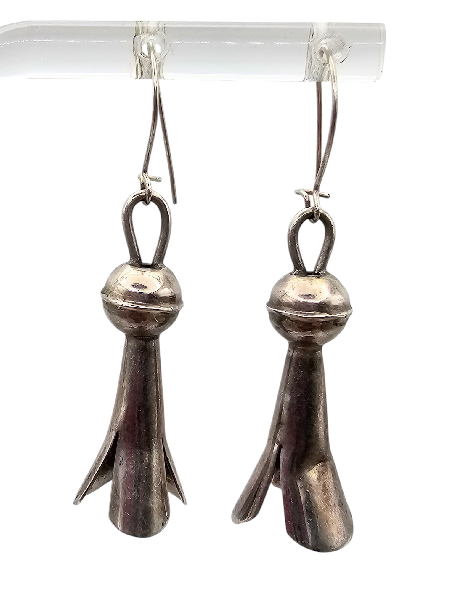 Navajo Sterling Silver Squash Blossom Dangle Earrings 2.9 G