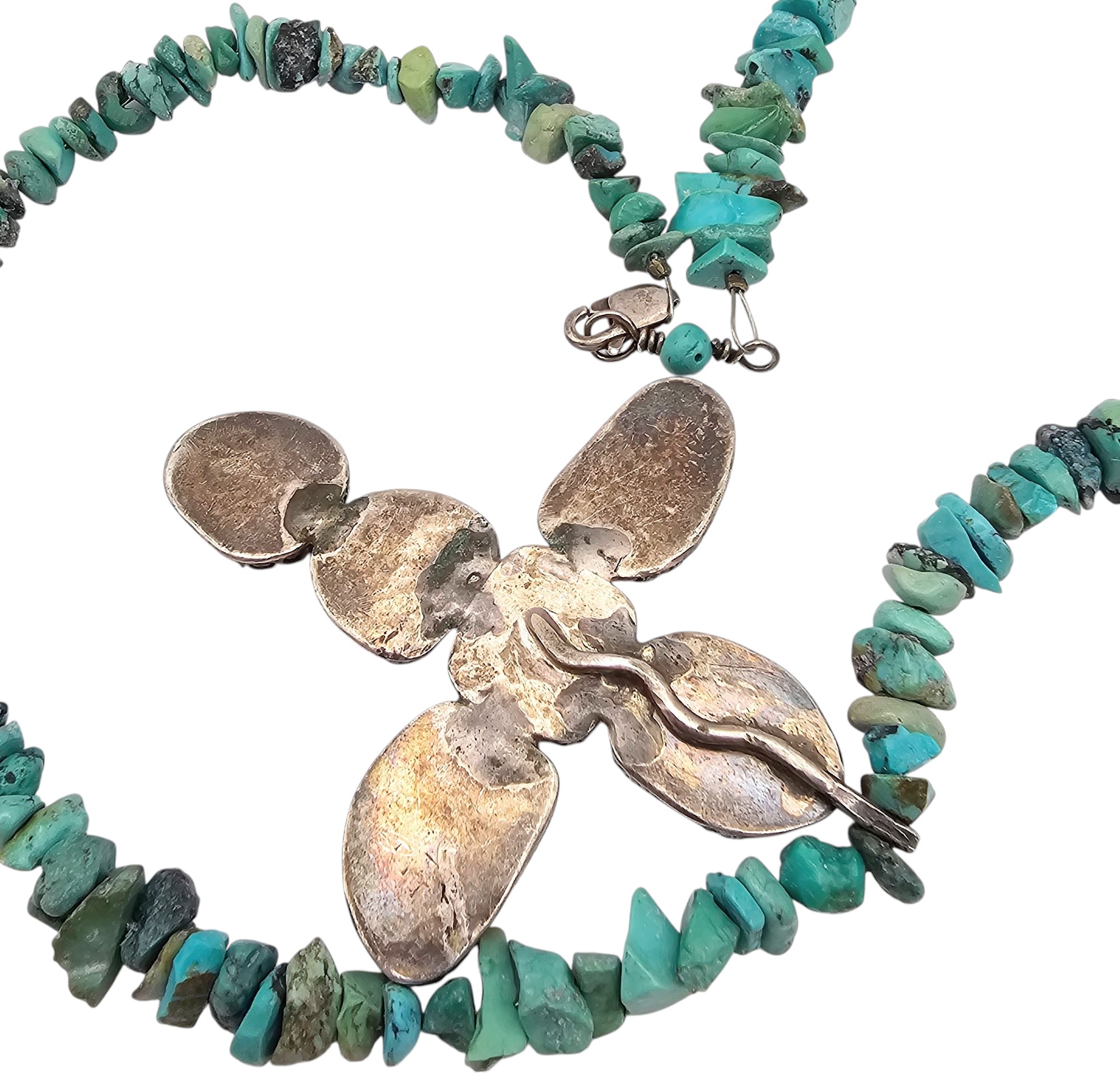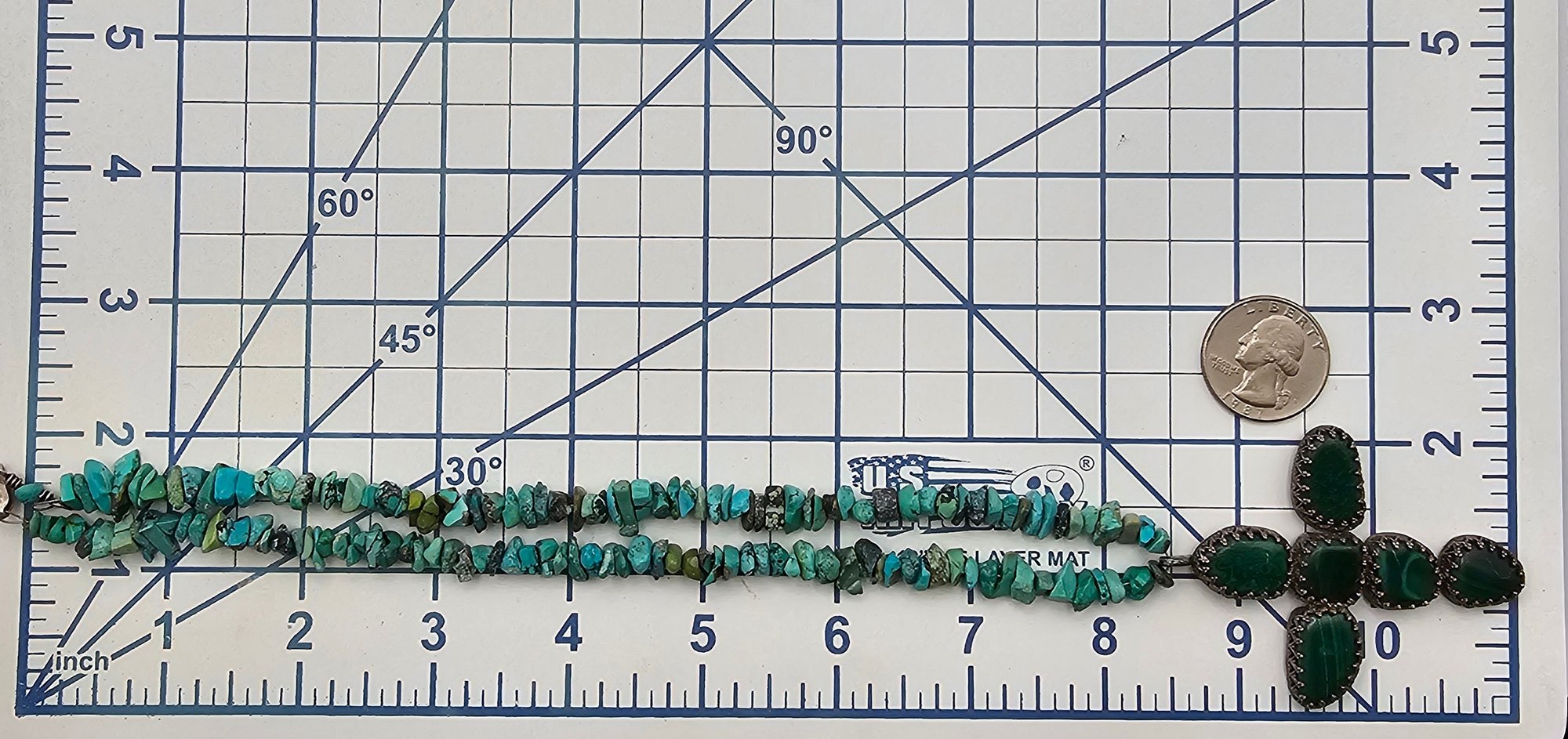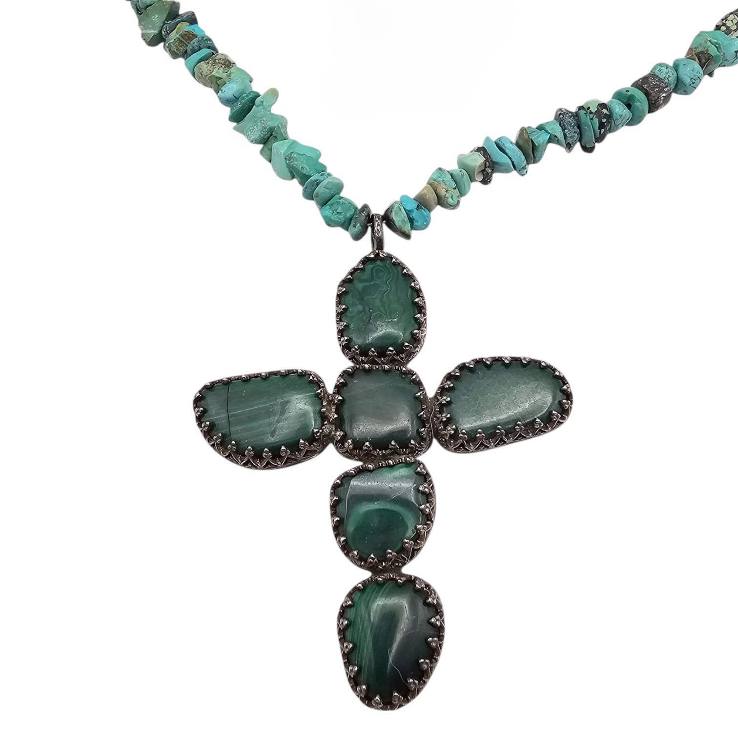 Native Malachite Turquoise Sterling Silver Cross Necklace 44.5 G