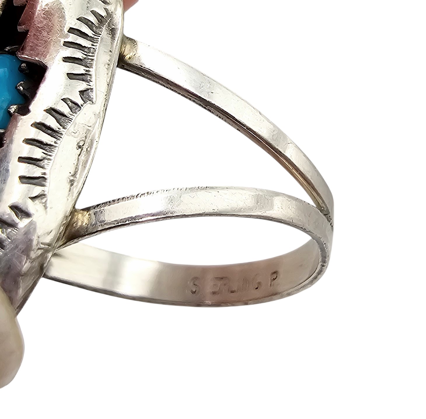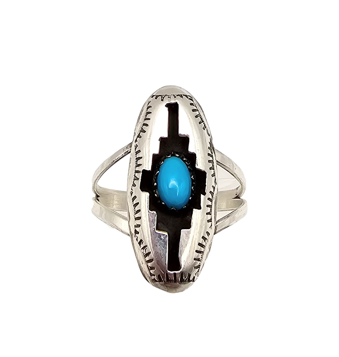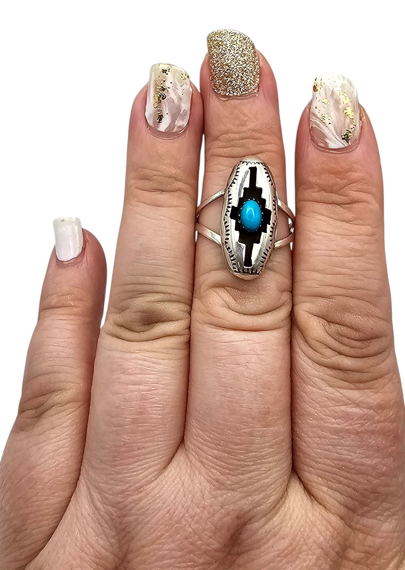 P Navajo Turquoise Sterling Silver Shadow Box Ring Size 8 2.2 G