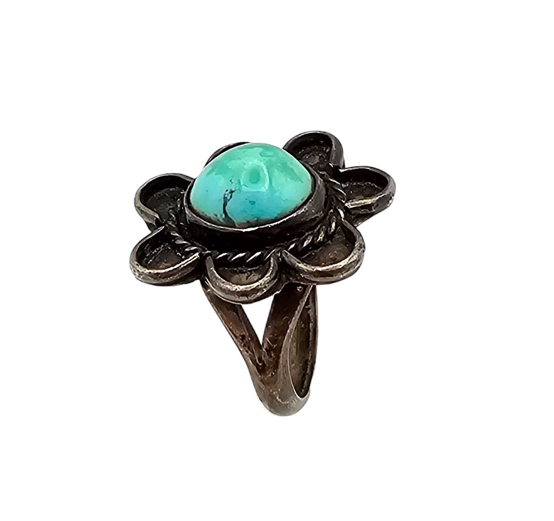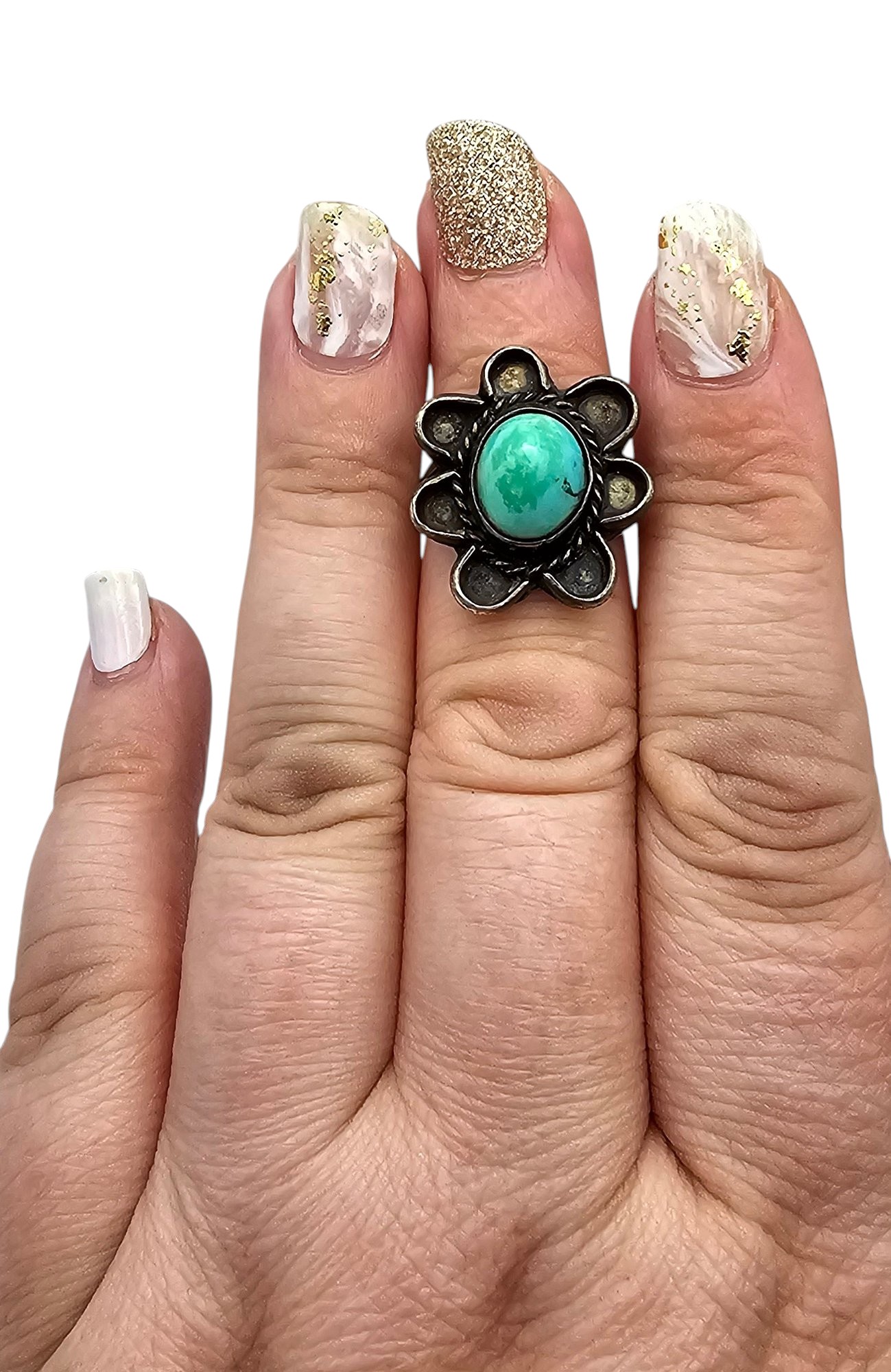 Navajo Turquoise Sterling Silver Flower Ring Size 6.25 5.9 G