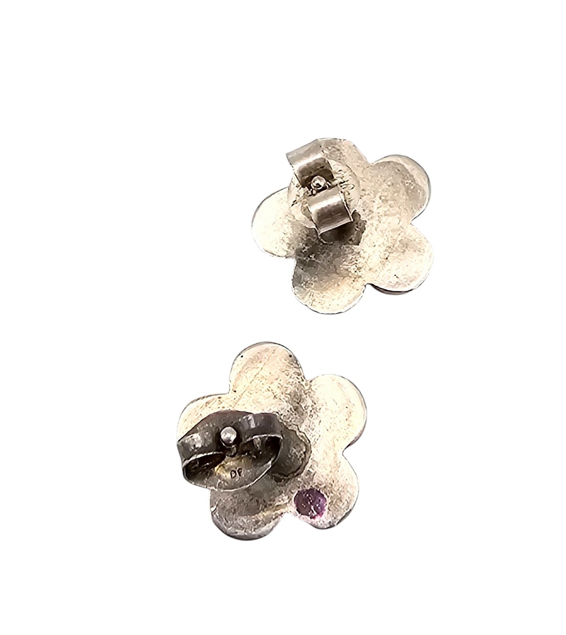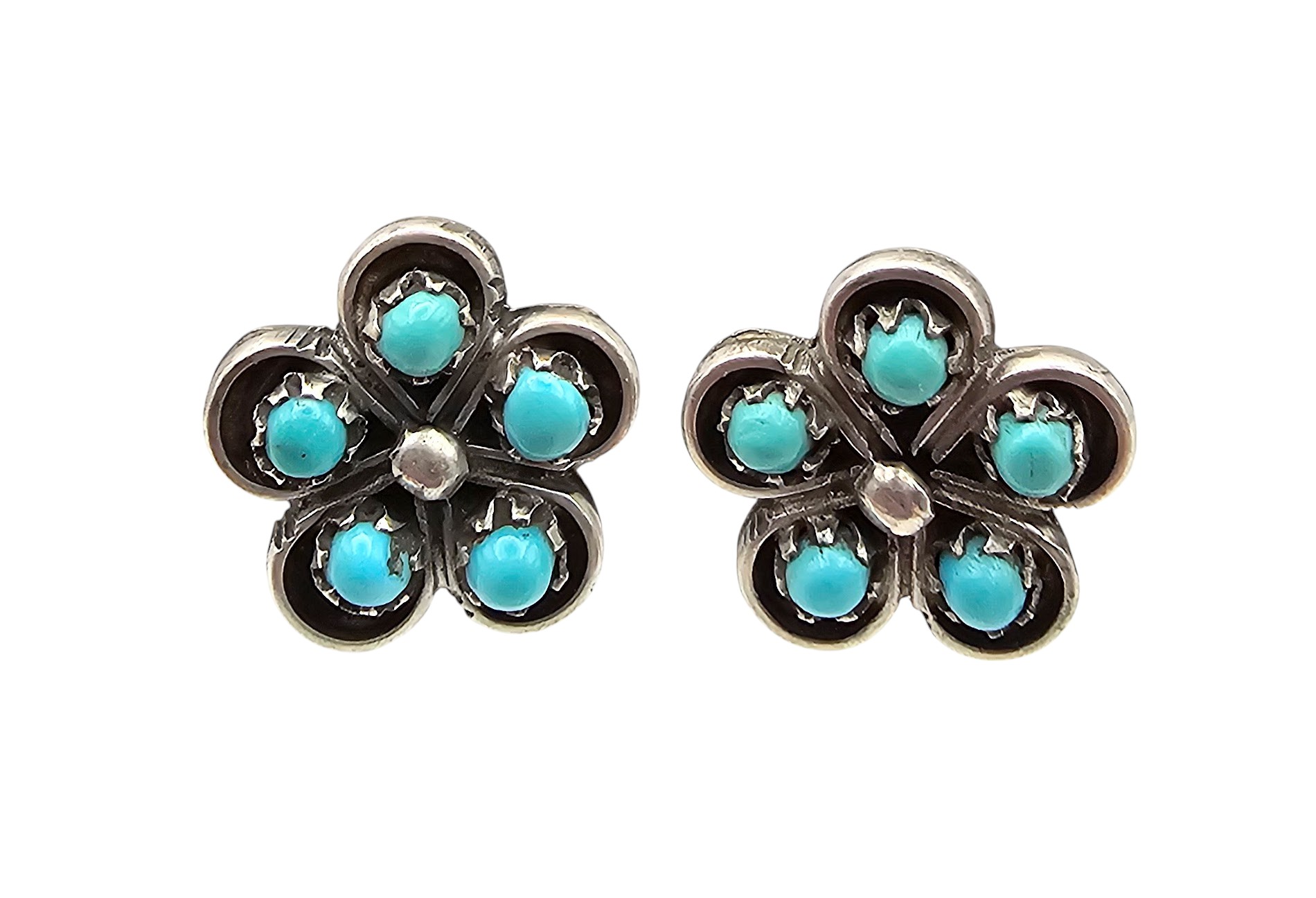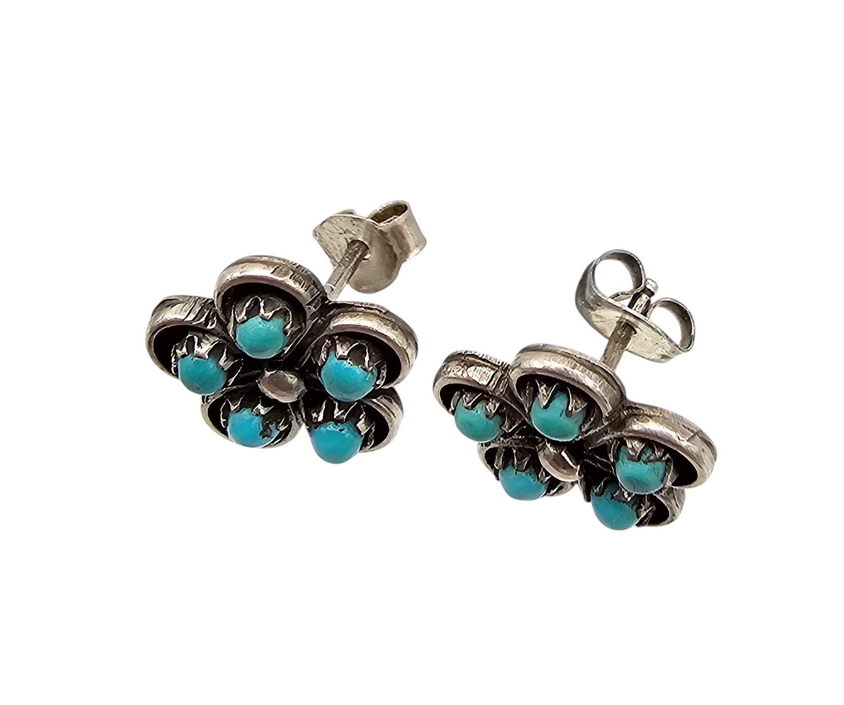 Navajo Turquoise Snake Eye Sterling Silver Flower Shadow Box Earrings 2 G