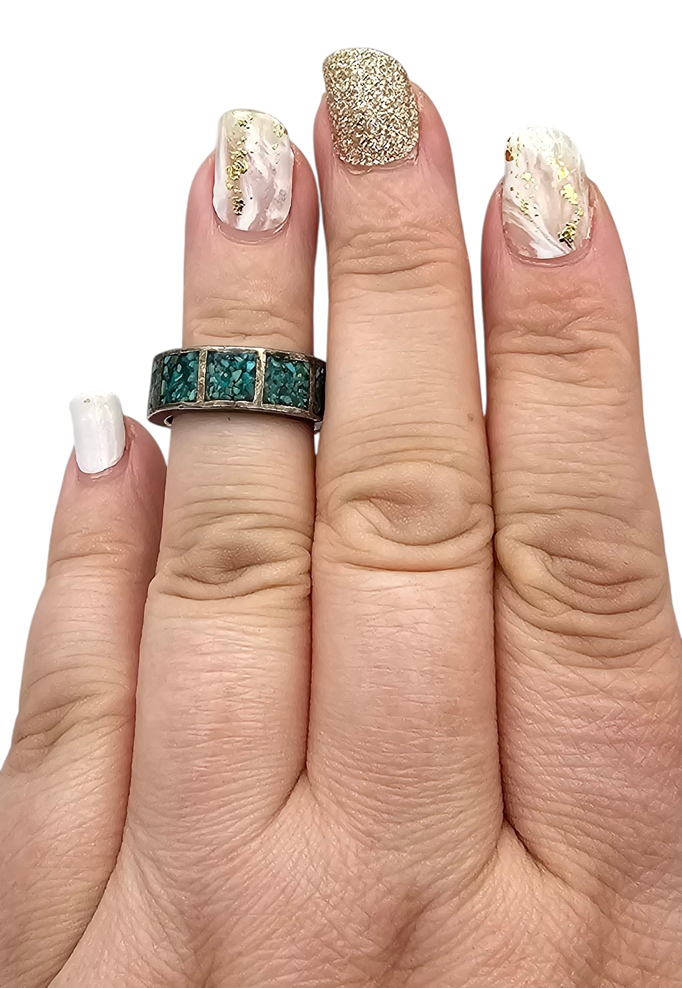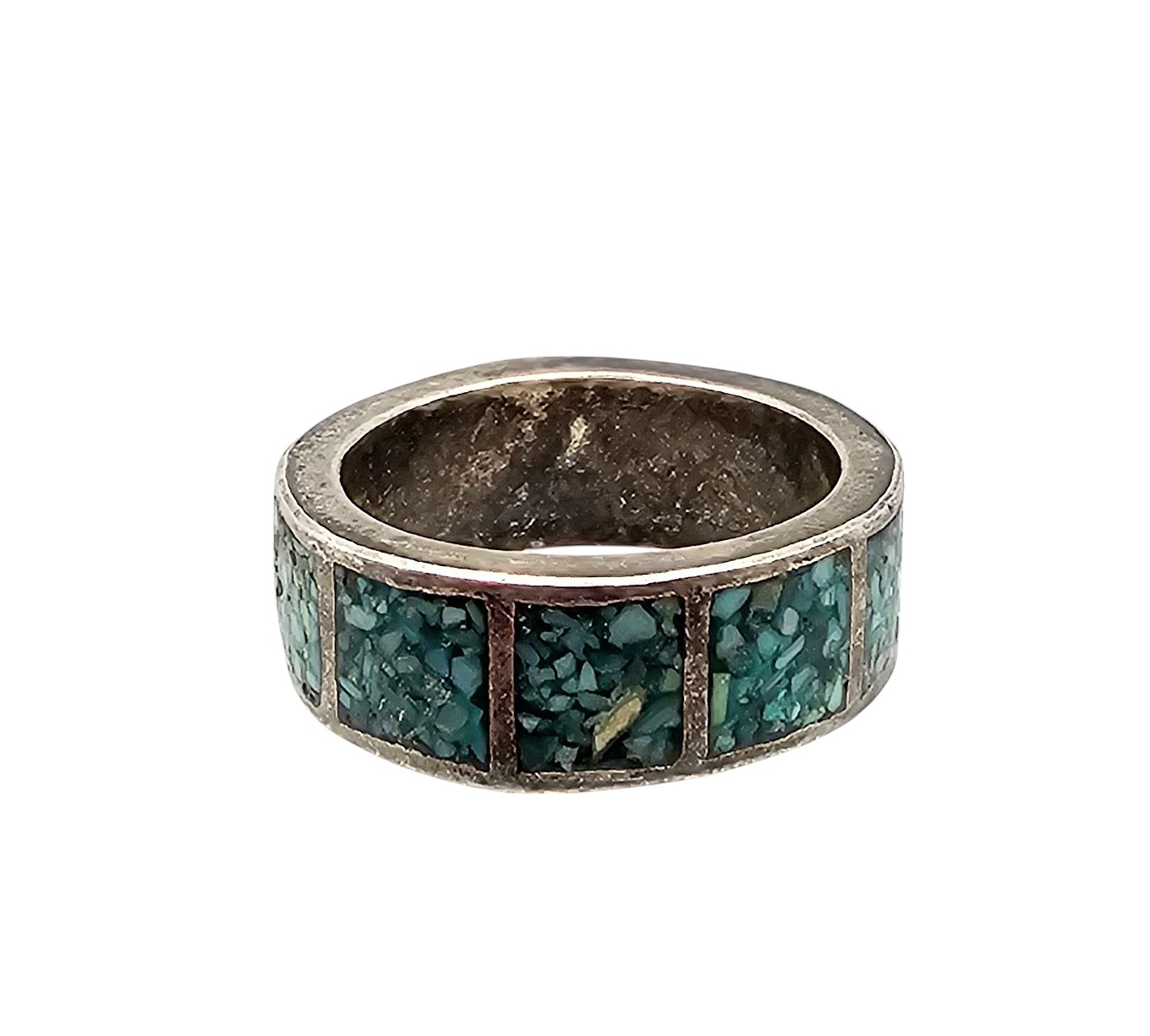 Navajo Crushed Turquoise Sterling Silver Ring Size 5.5 5.9 G