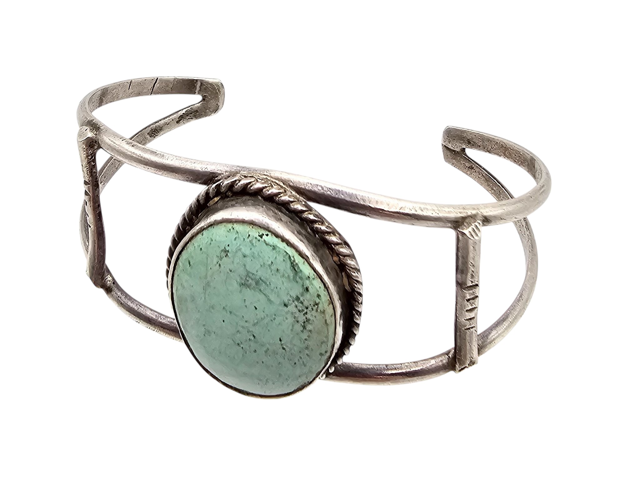 Navajo Turquoise Sterling Silver Open Band Cuff Bracelet 16.2 G