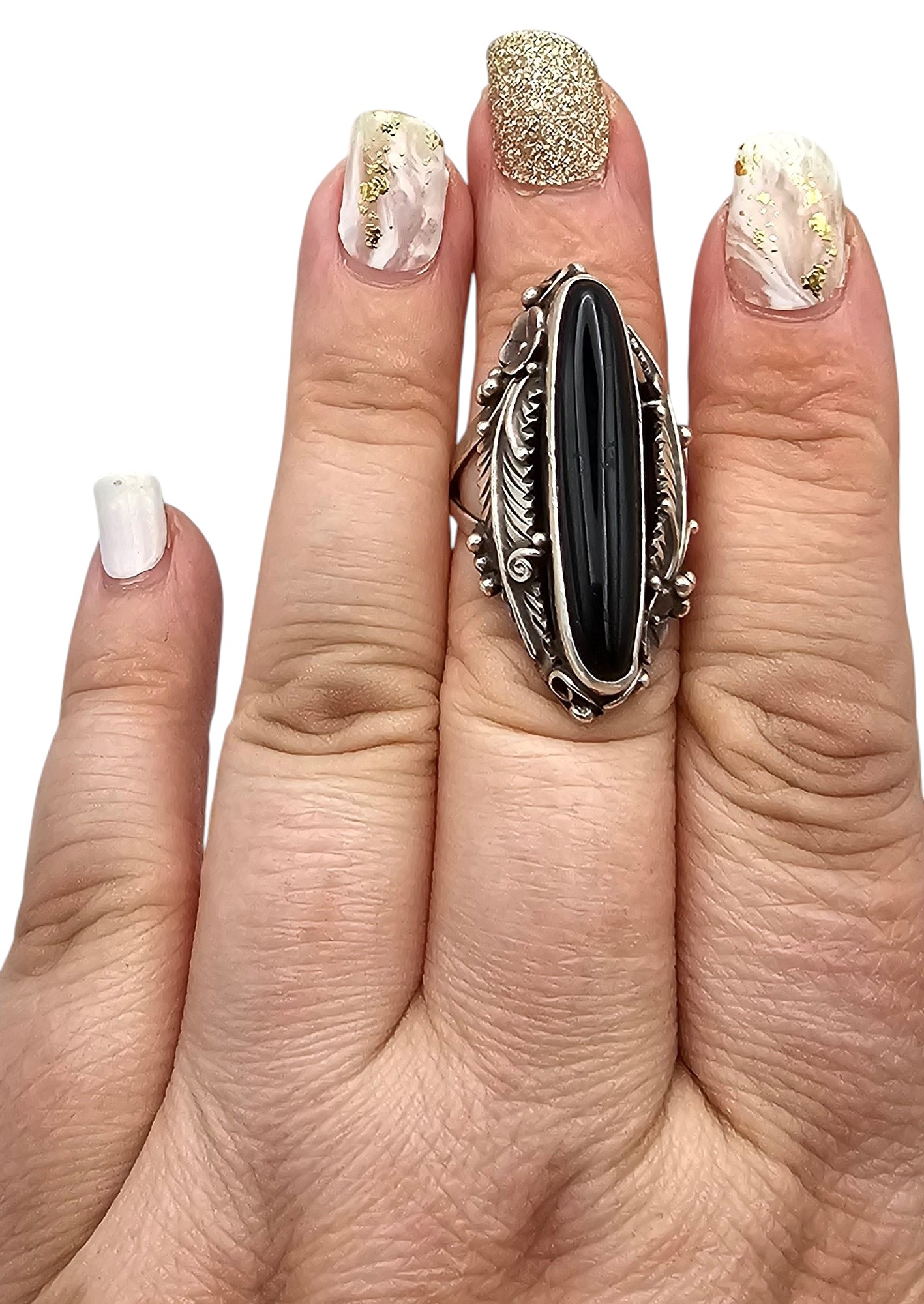 ROMANA Onyx Sterling Silver Ring Size 7 10.3 G