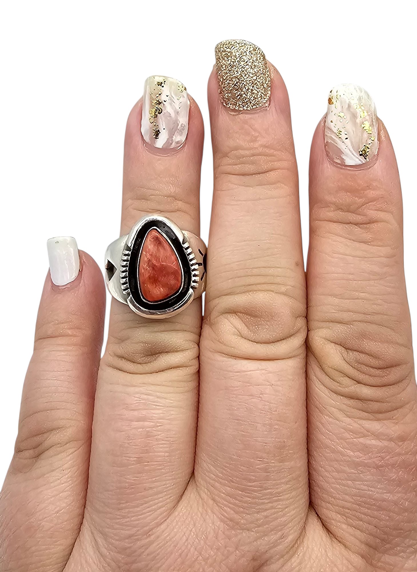 Fred Charley Navajo Spiny Oyster Sterling Silver Ring Size 5.75 8.2 G
