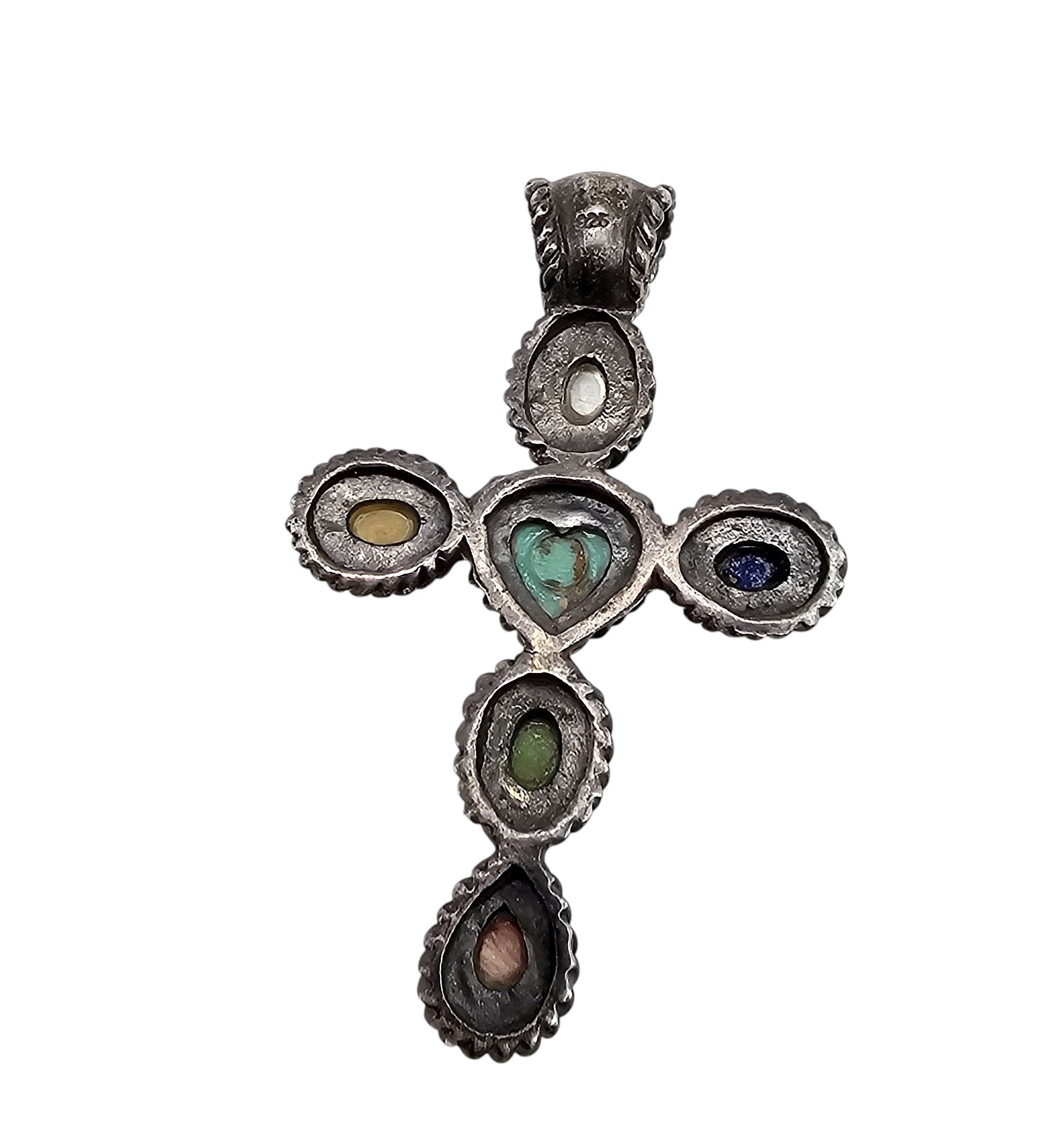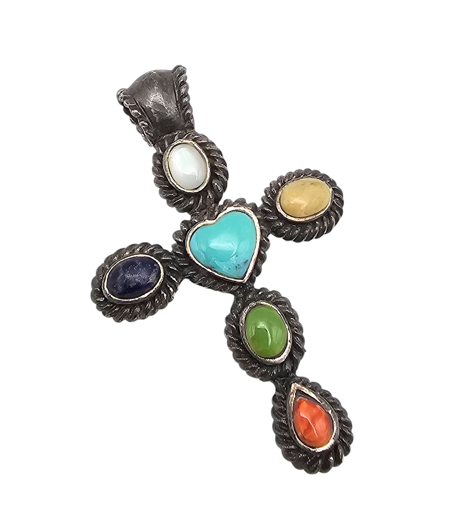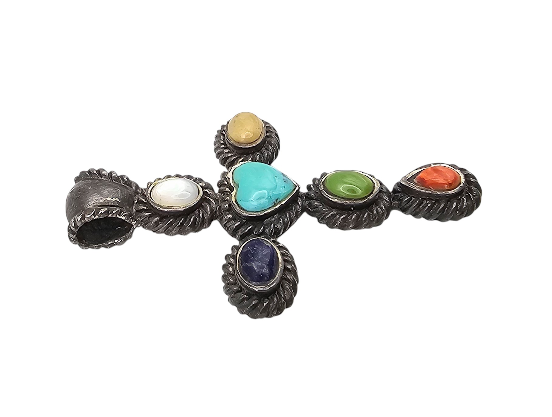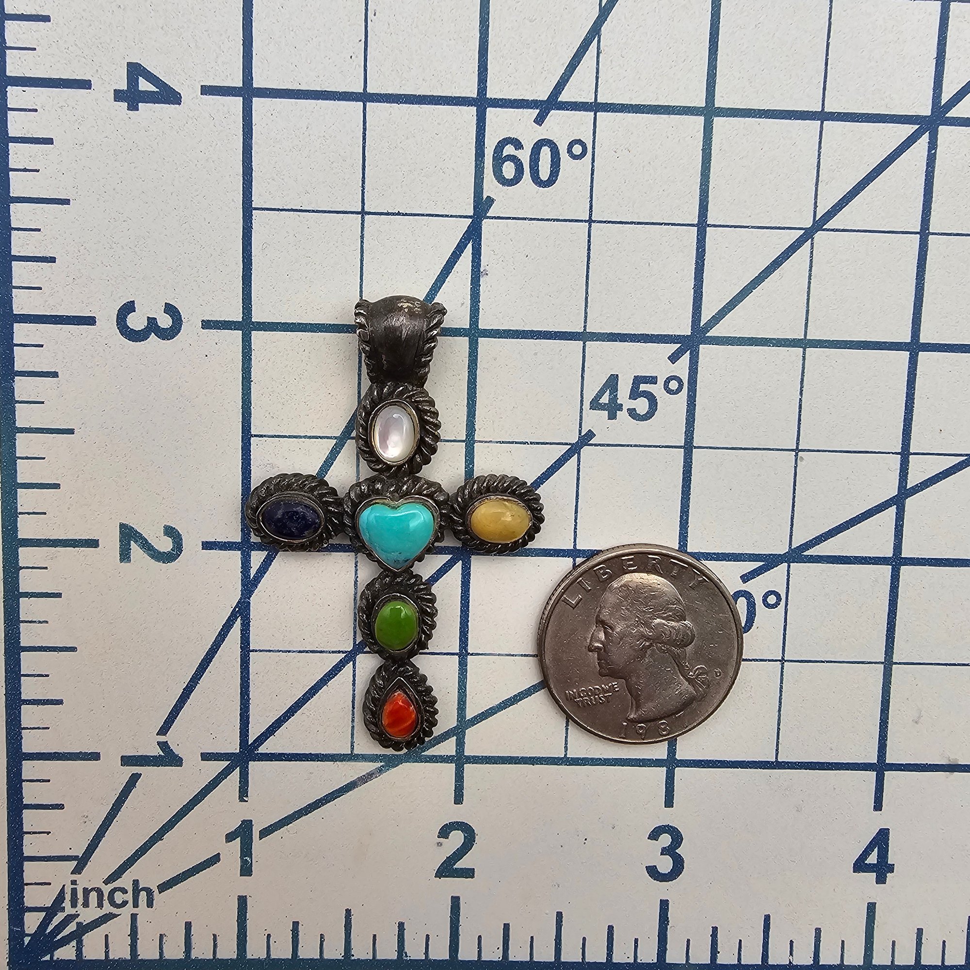 Southwestern Multi Stone Sterling Silver Cross Pendant 9.6 G