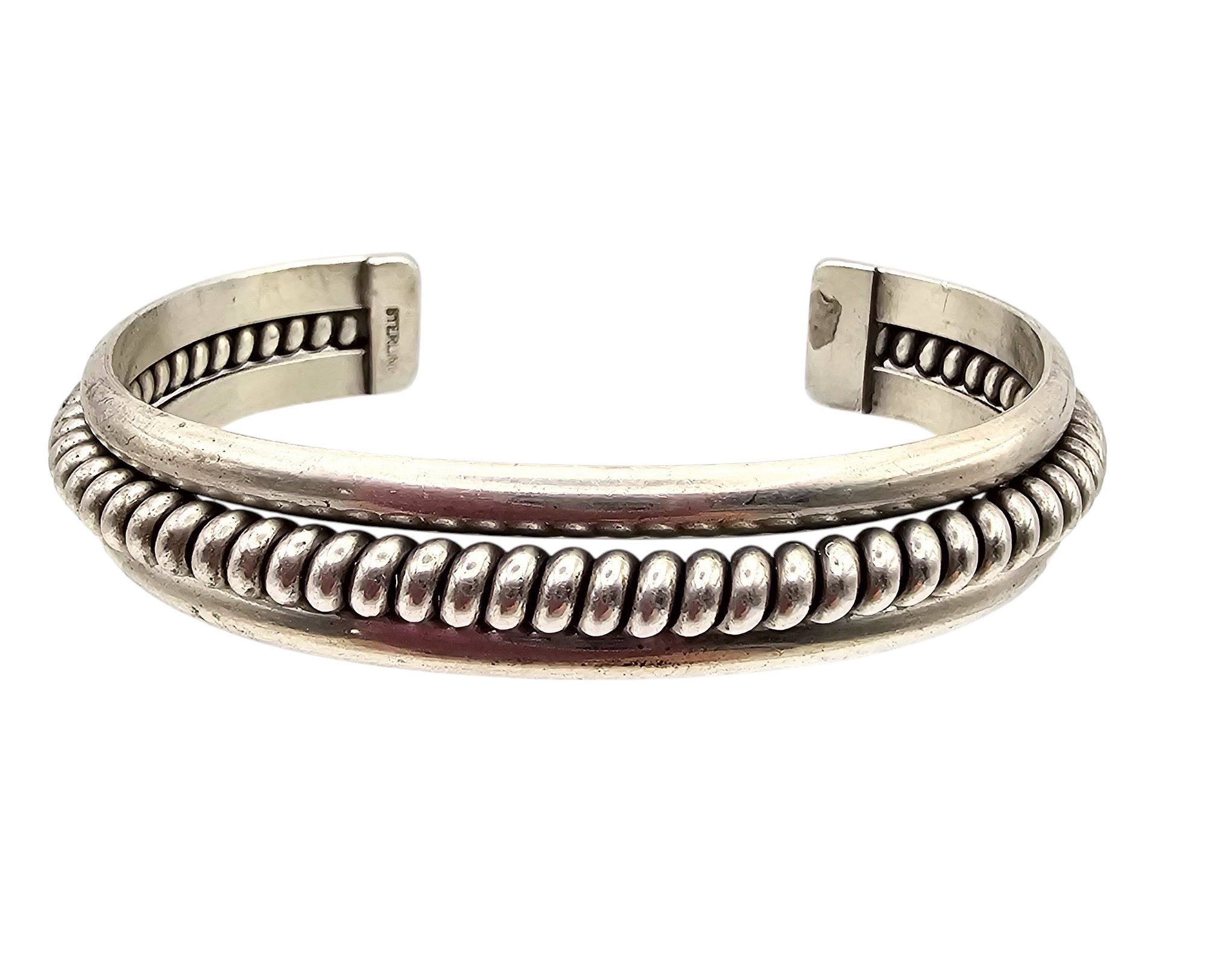 Southwestern Sterling Silver Coil Cuff Bracelet 31.7 G