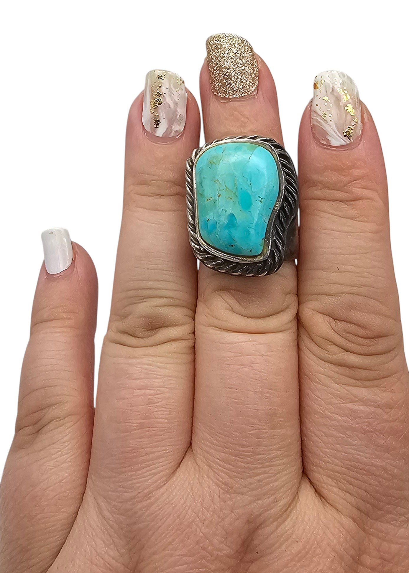 Southwestern Turquoise Sterling Silver Ring Size 6.5 17.7 G