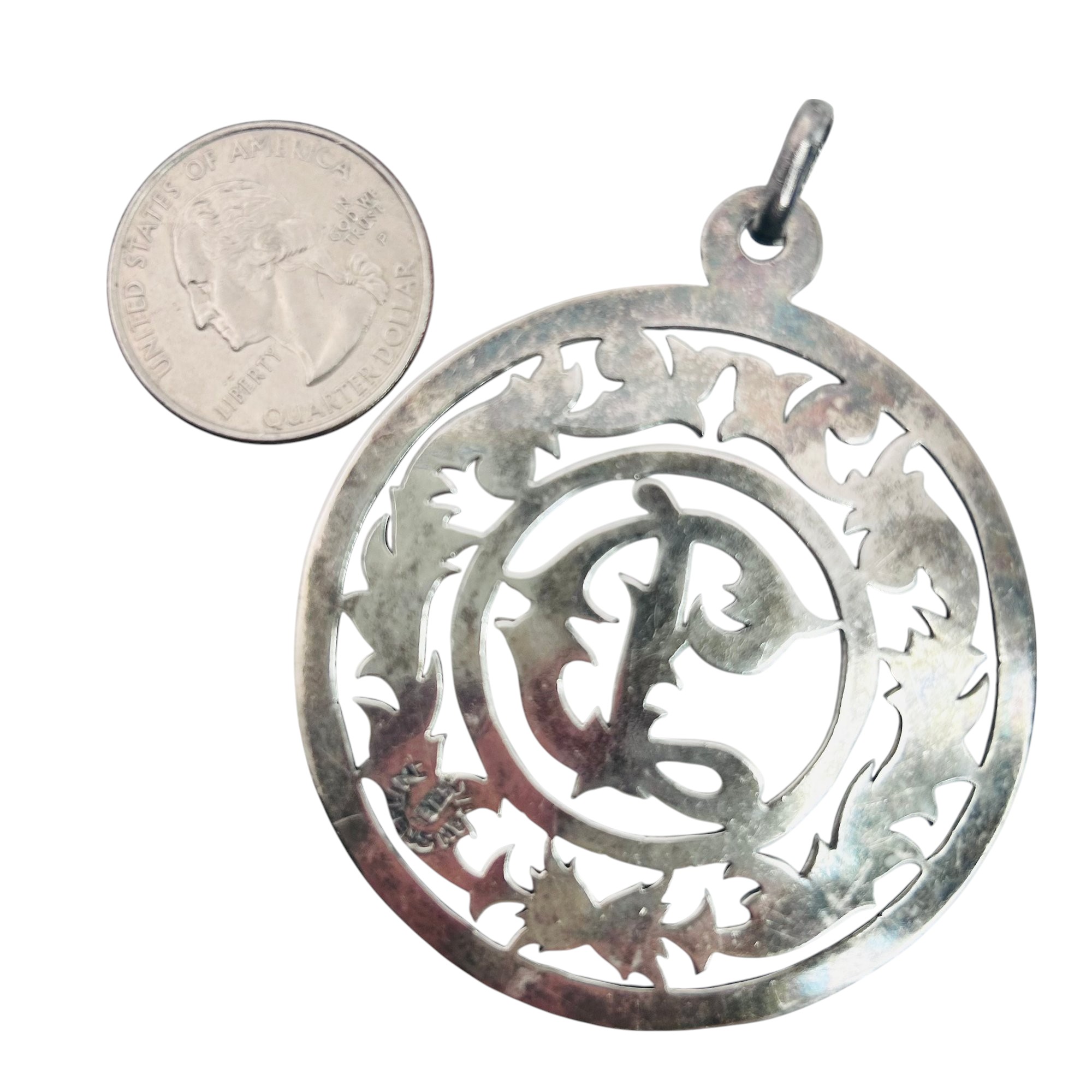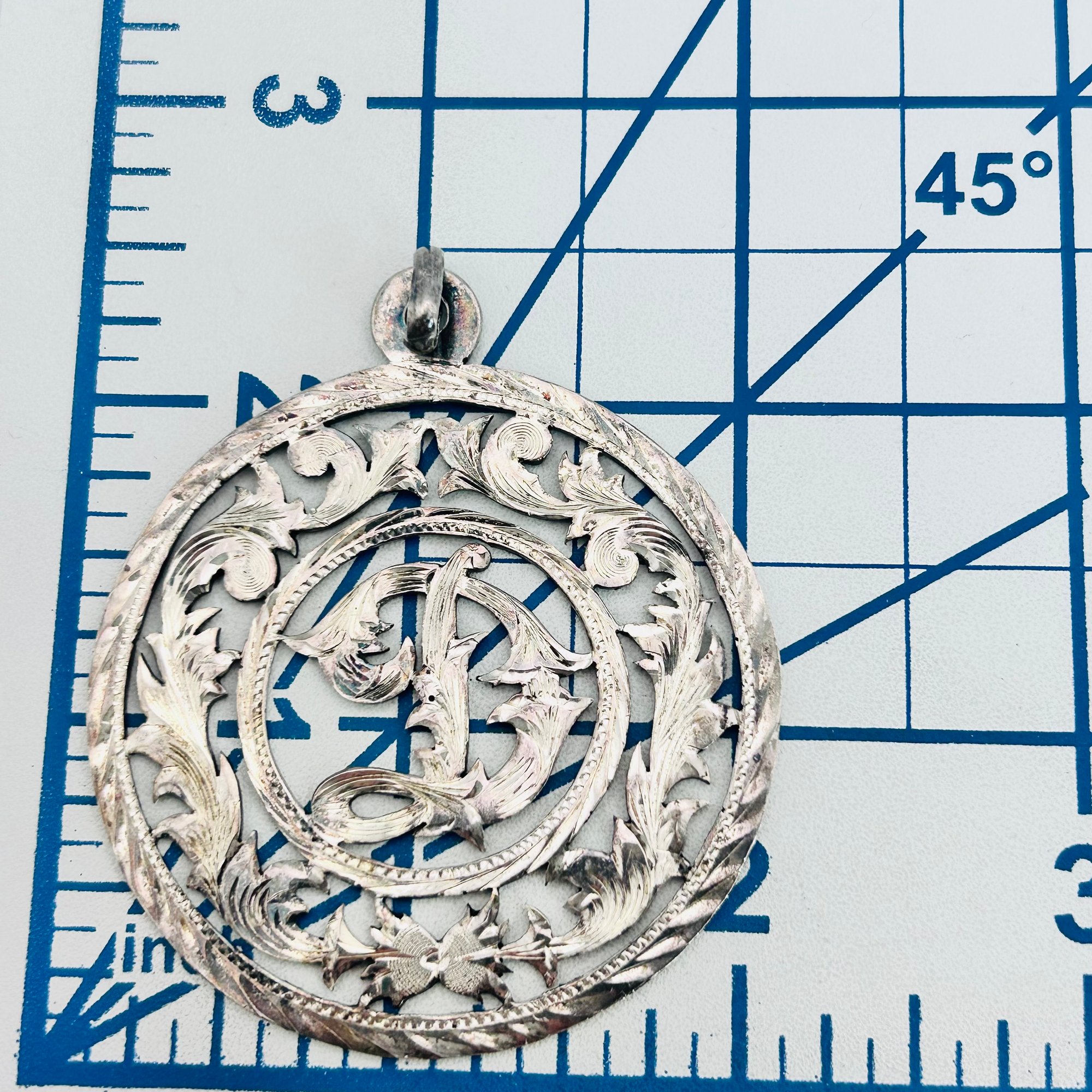 TAXCO Mexico Sterling etched cut out medallion pendant 16.42 g
