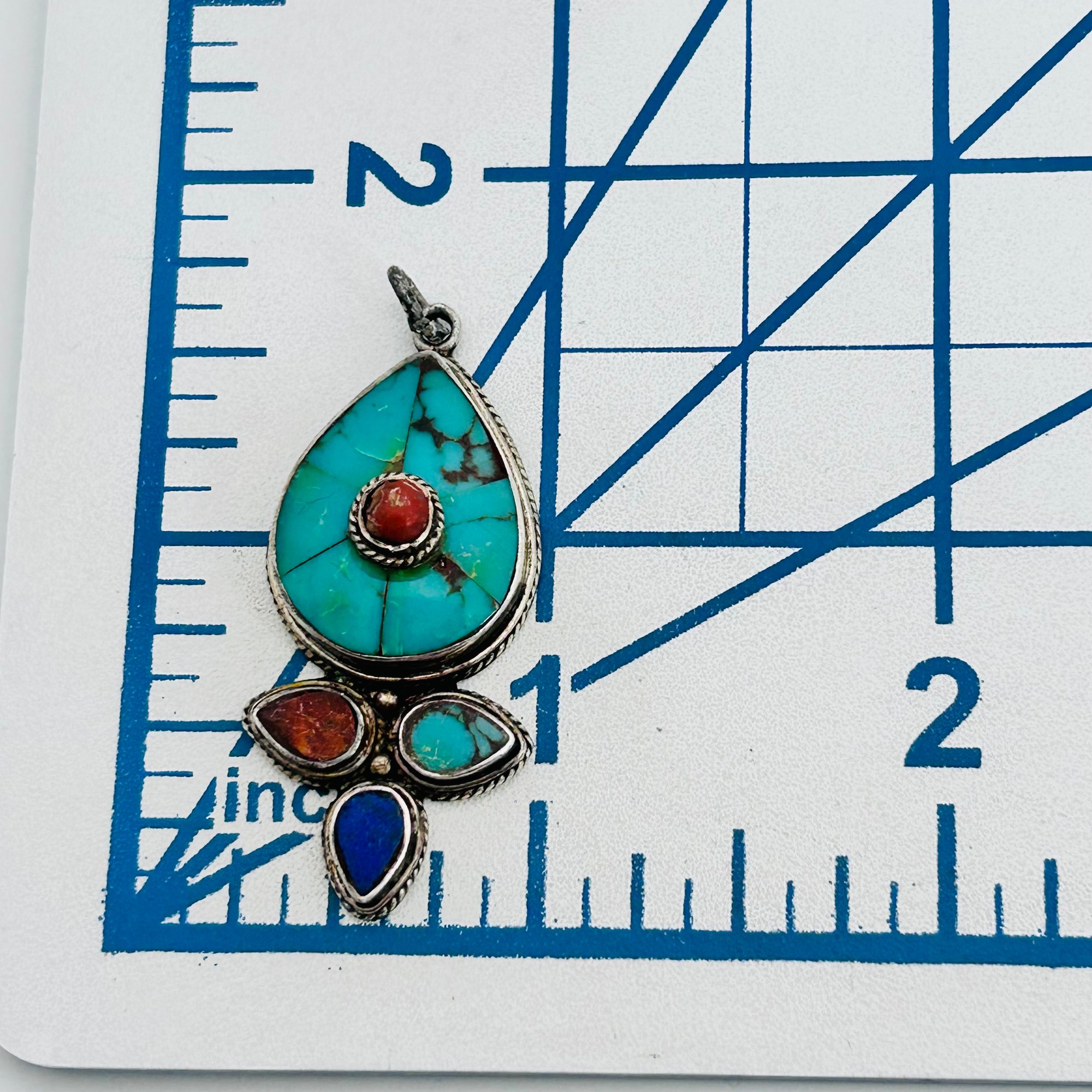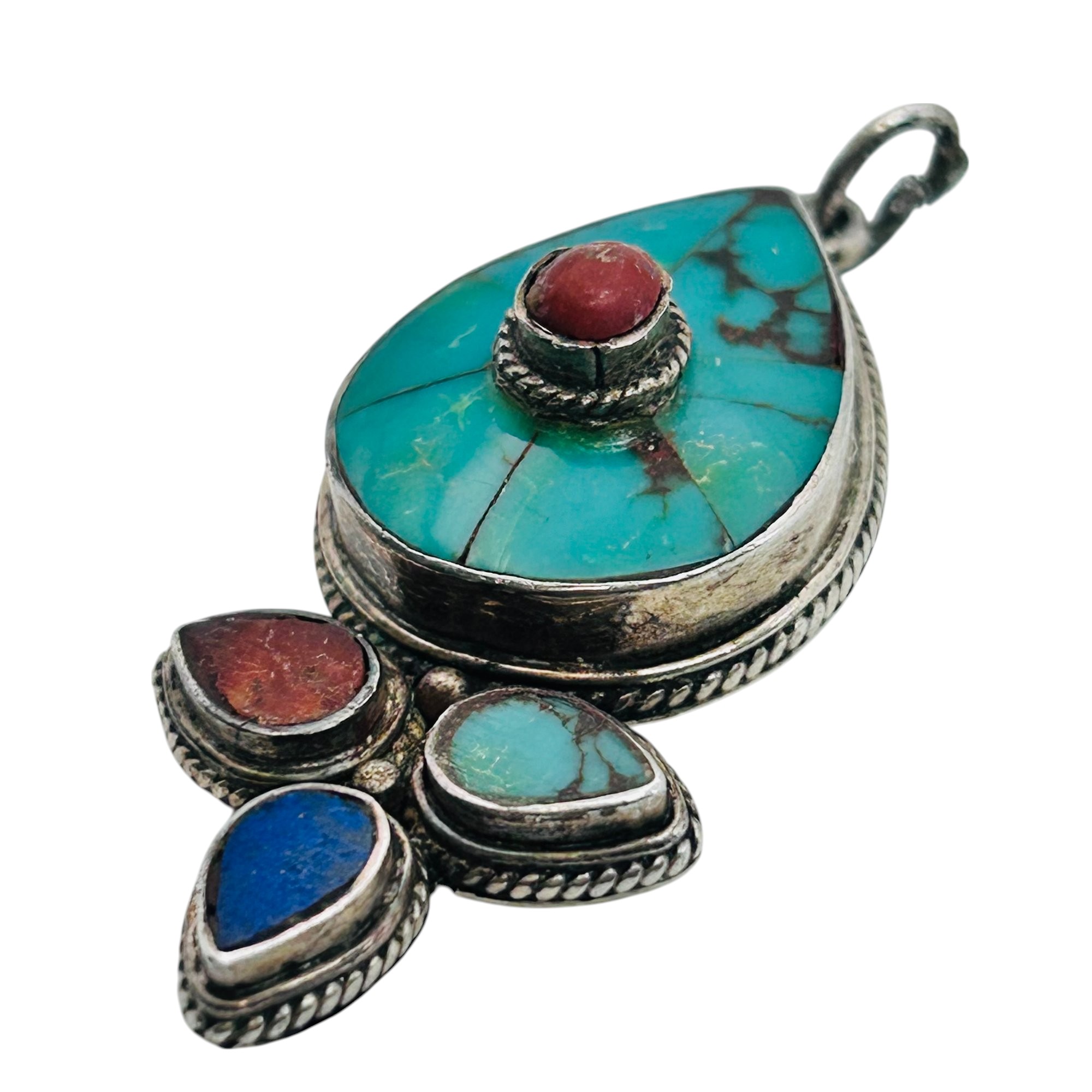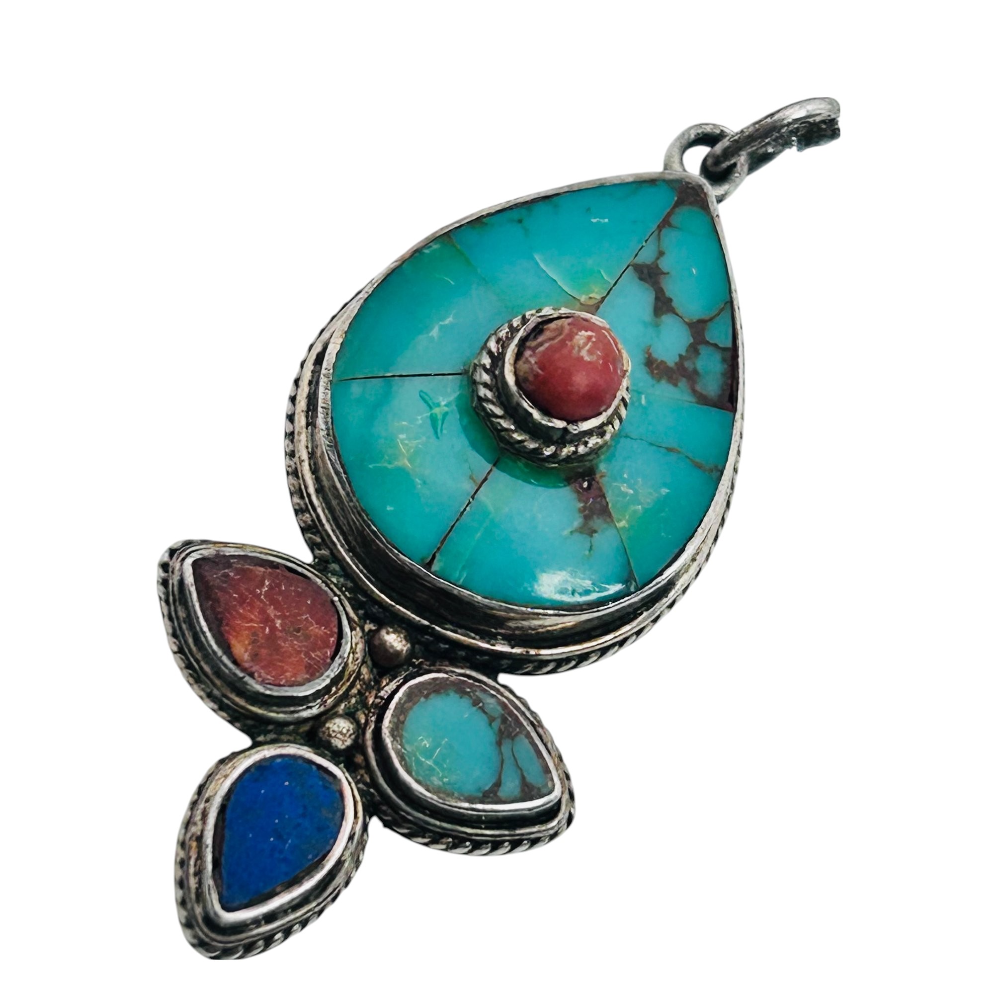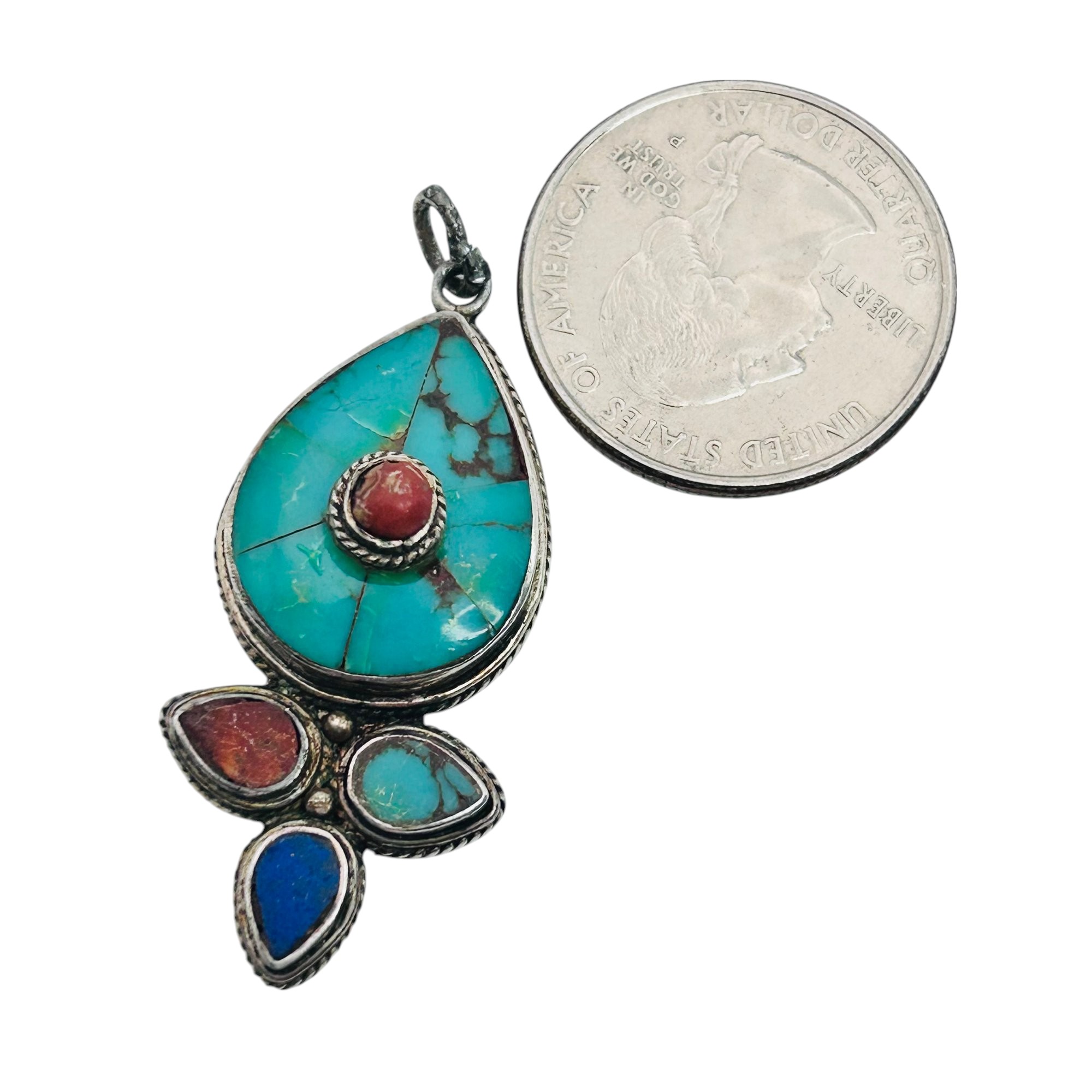 Southwest turquoise coral lupis luzili pendant 8.57 g
