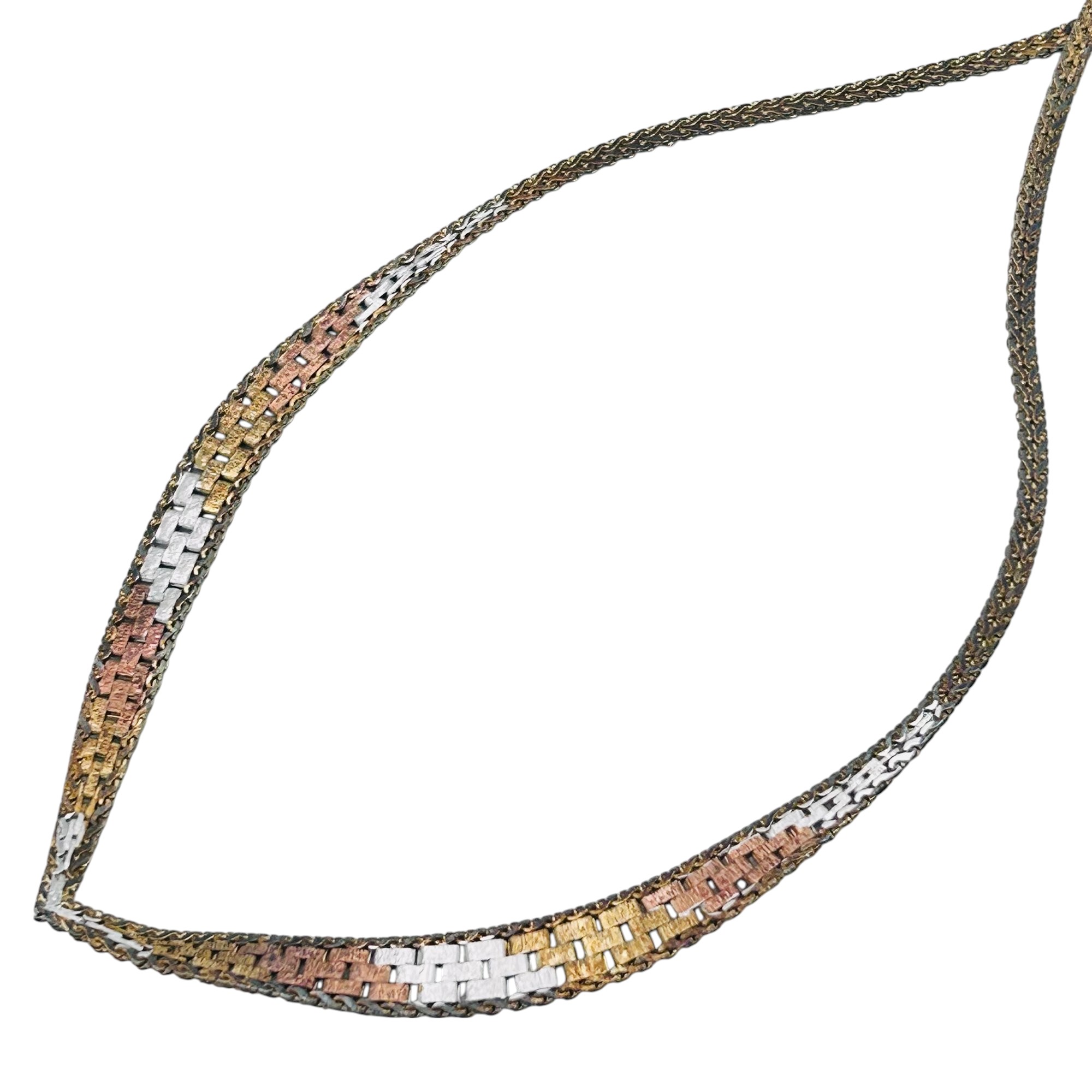Italy, Sterling Woven Band V Necklace 9.5 G