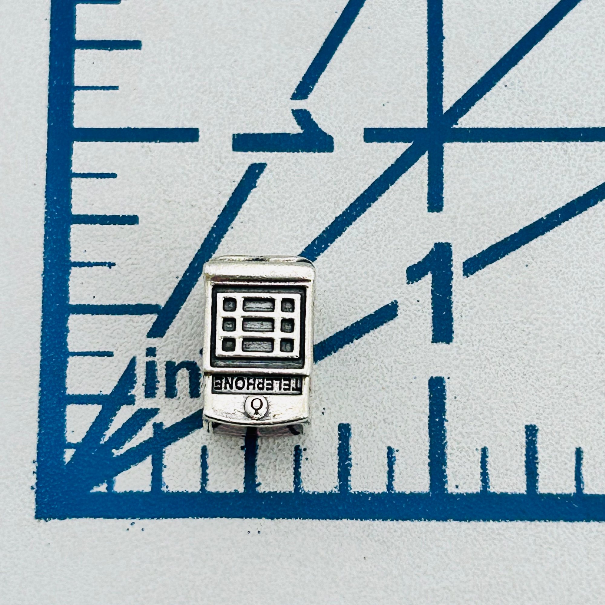 Pandora Sterling British telephone booth charm “Call Me“ 5.19 g