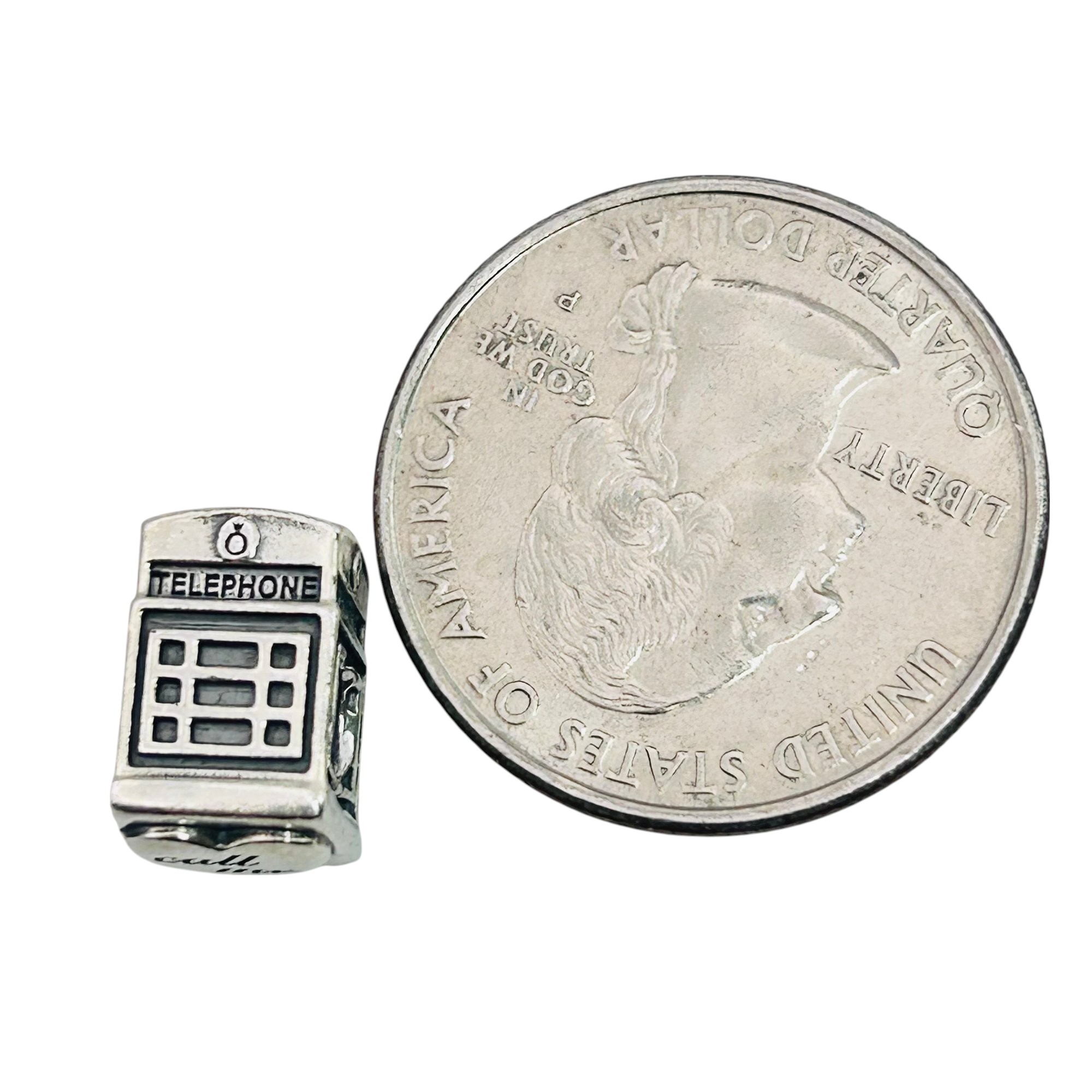 Pandora Sterling British Telephone Booth Charm Call Me 5.19 G