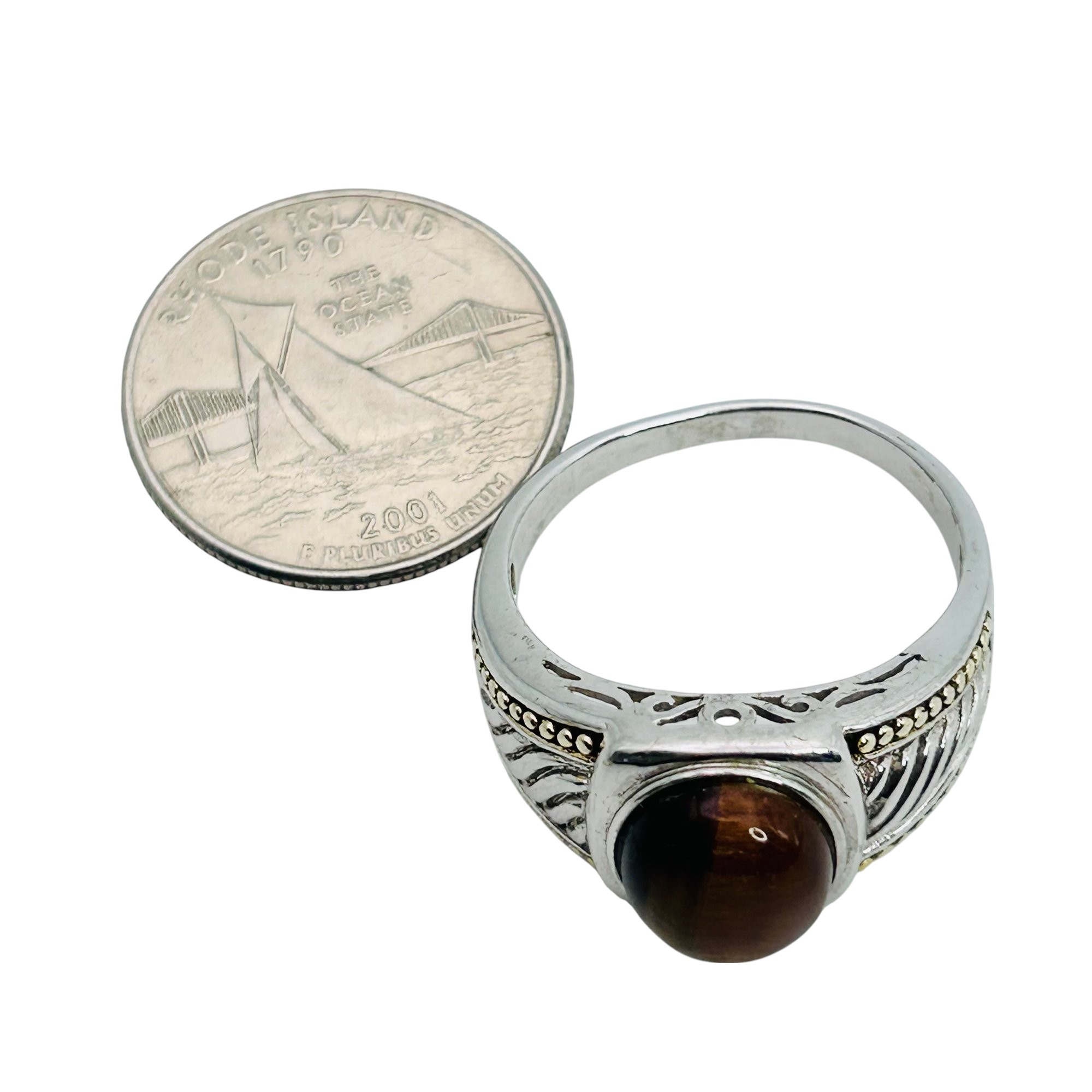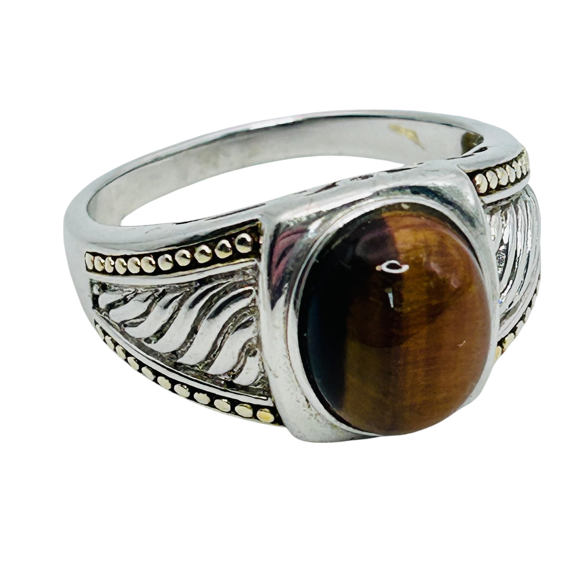 Tiger’s eyes sterling statement ring size 12.5 7.63 g