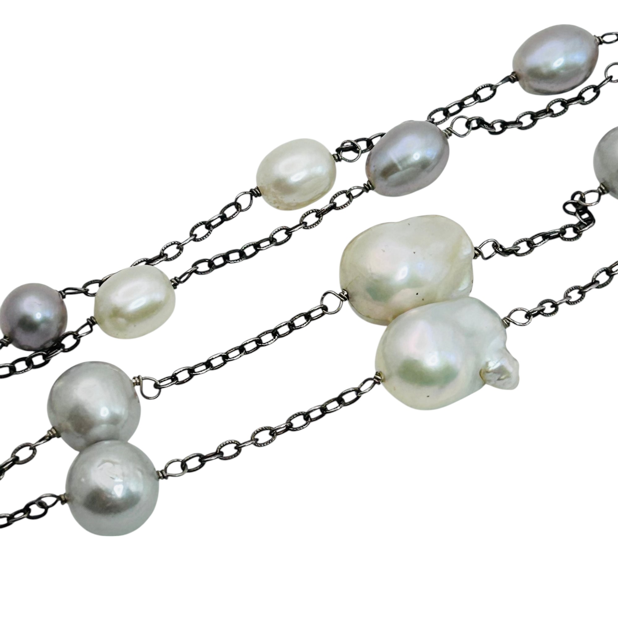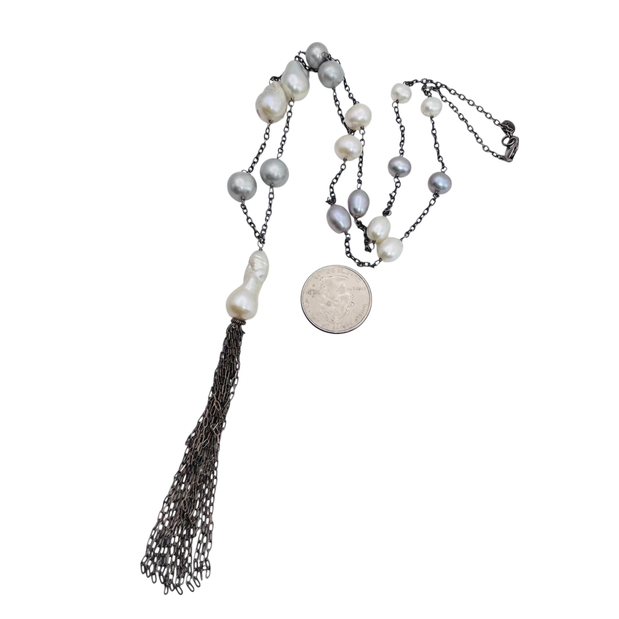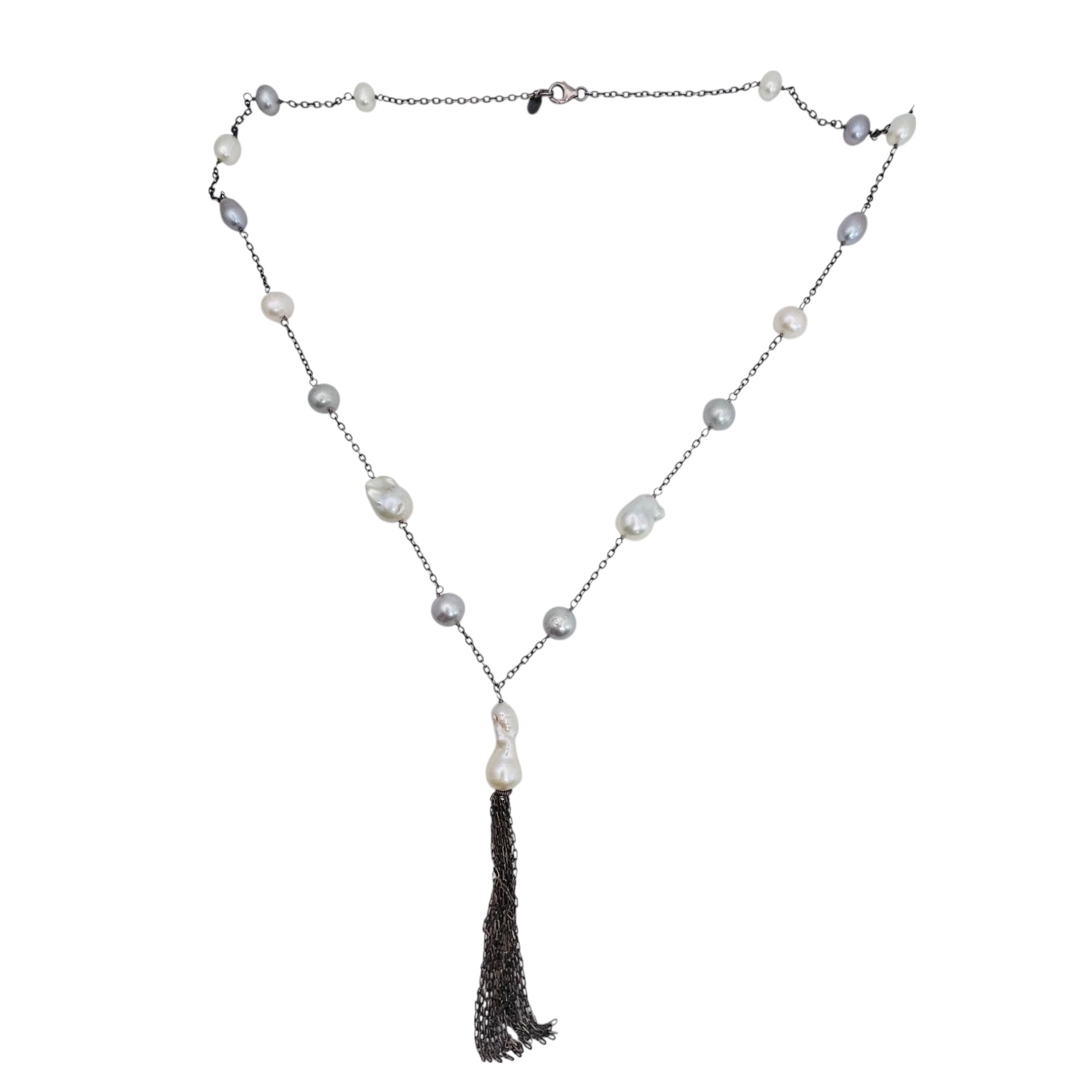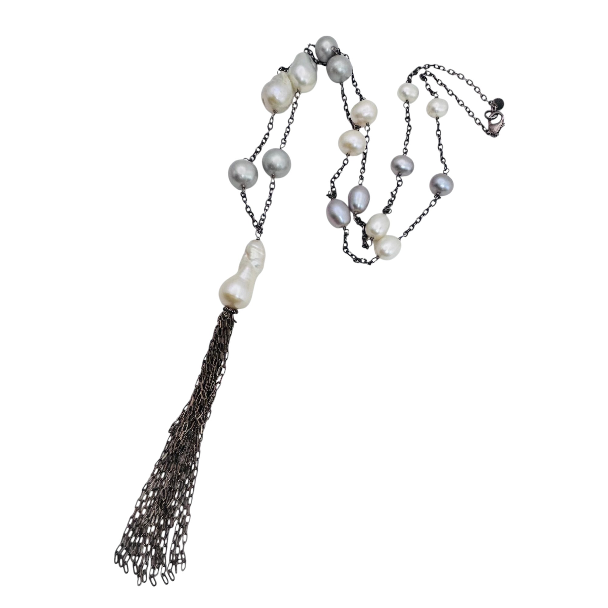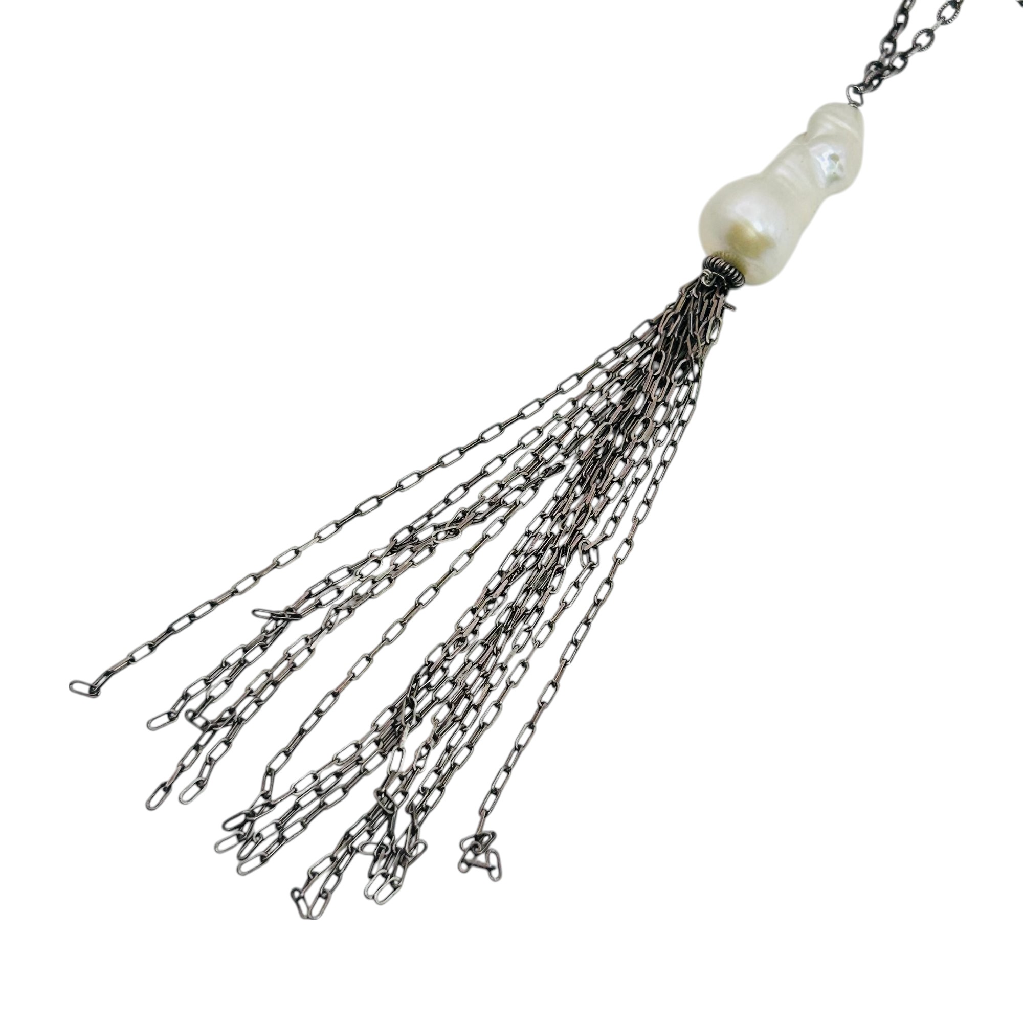 LUC pearl and sterling cable chain tassel necklace 31.4 g