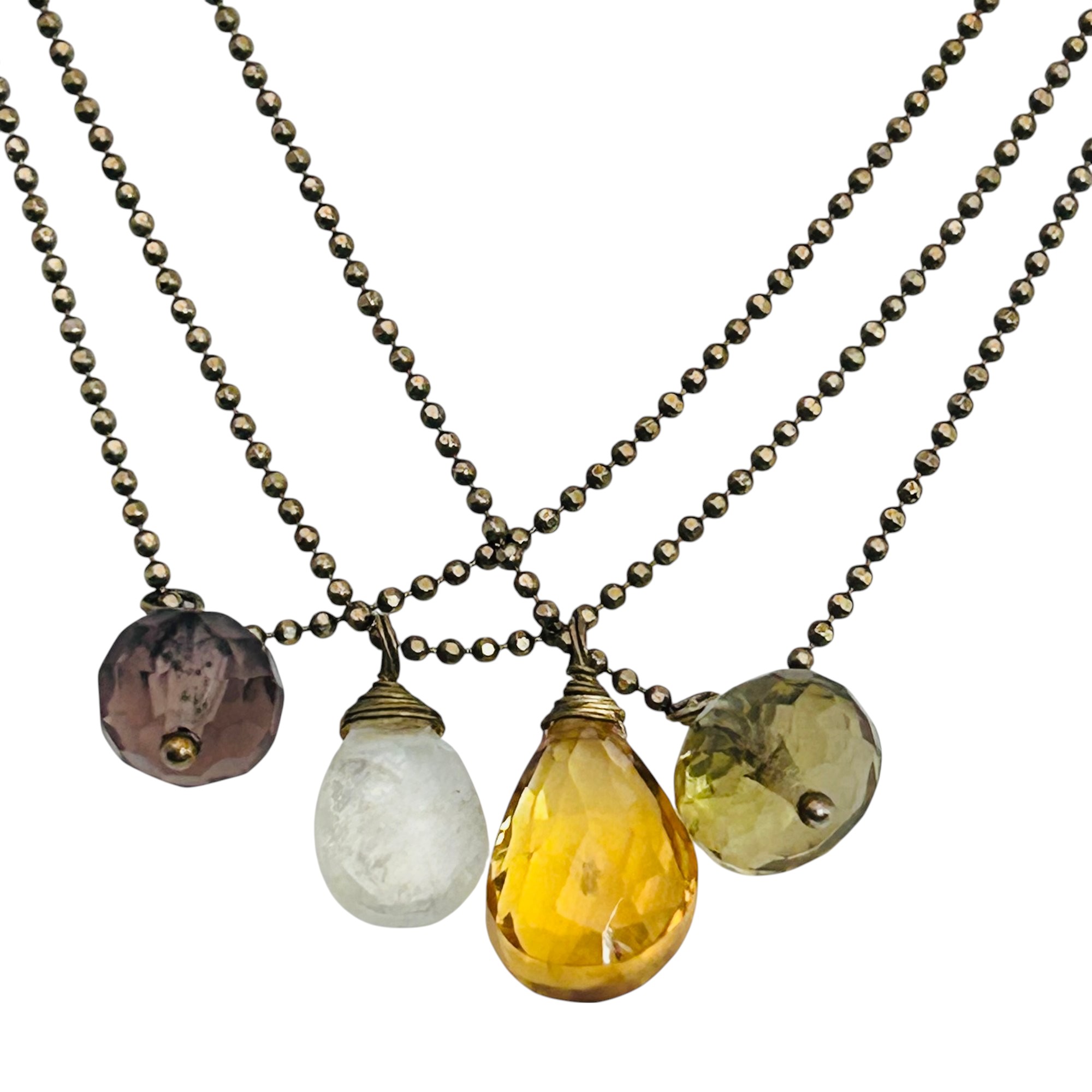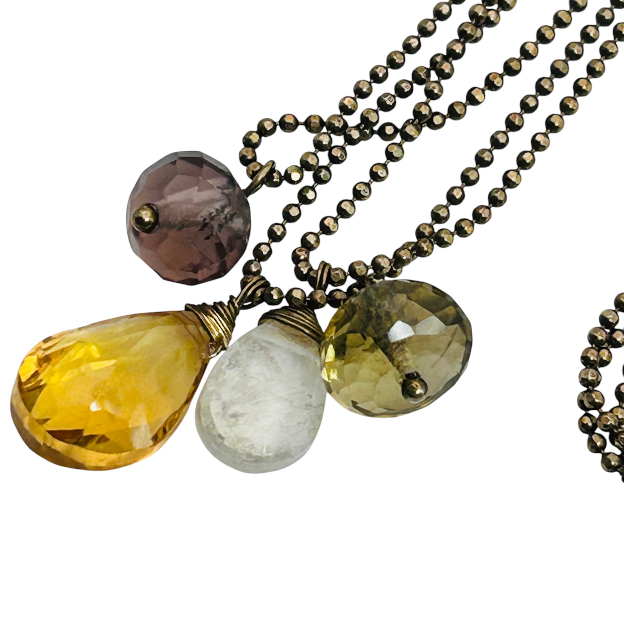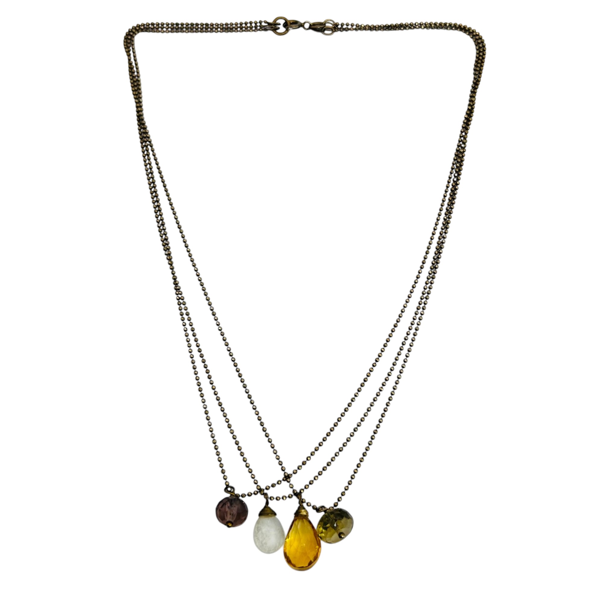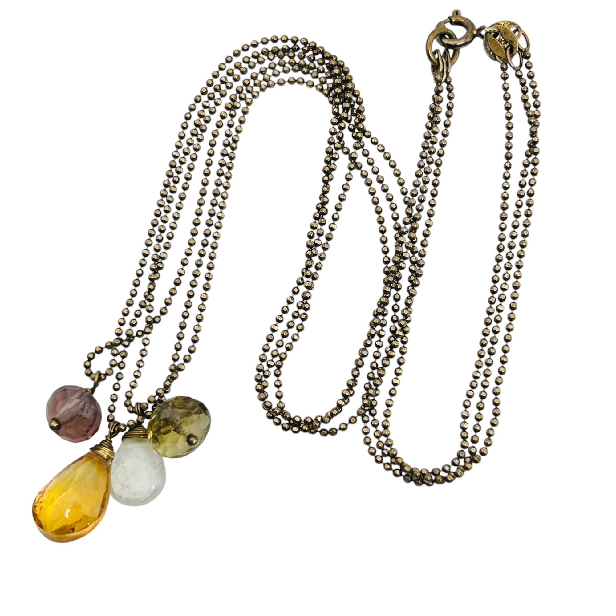 Citrine amethyst garnet sterling triple bead strand necklace 7.92 g