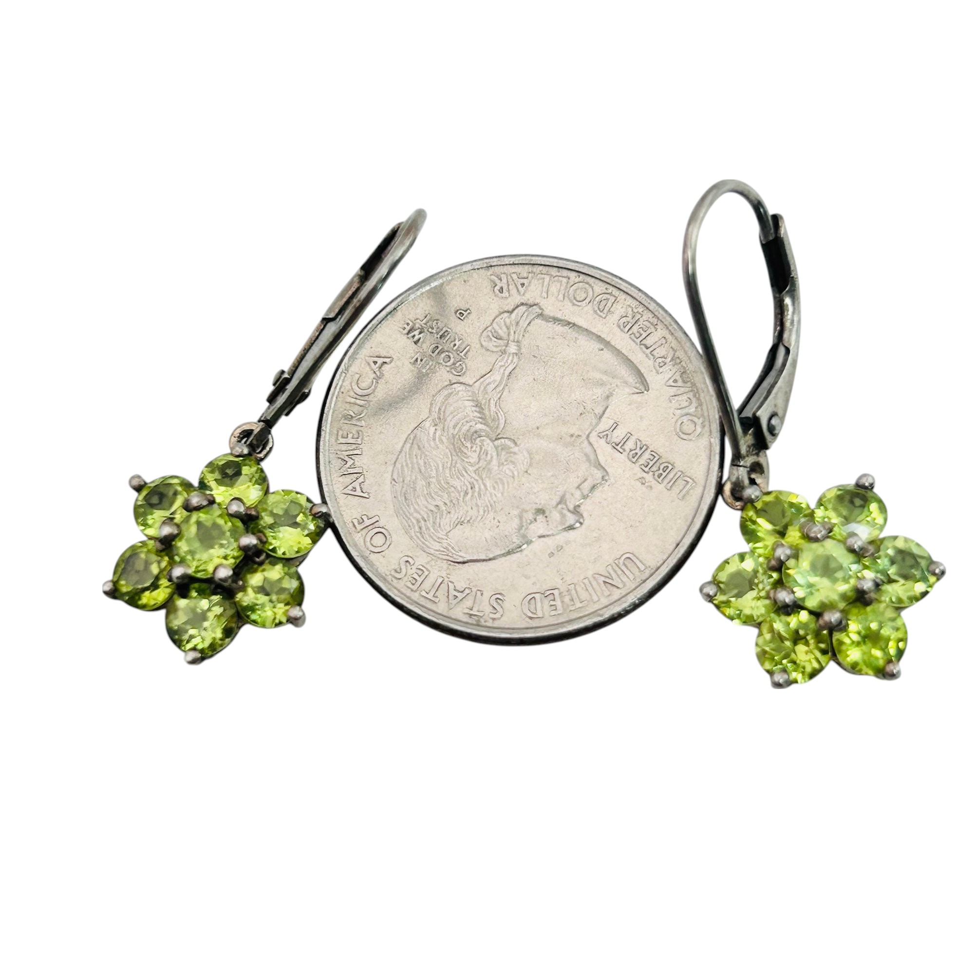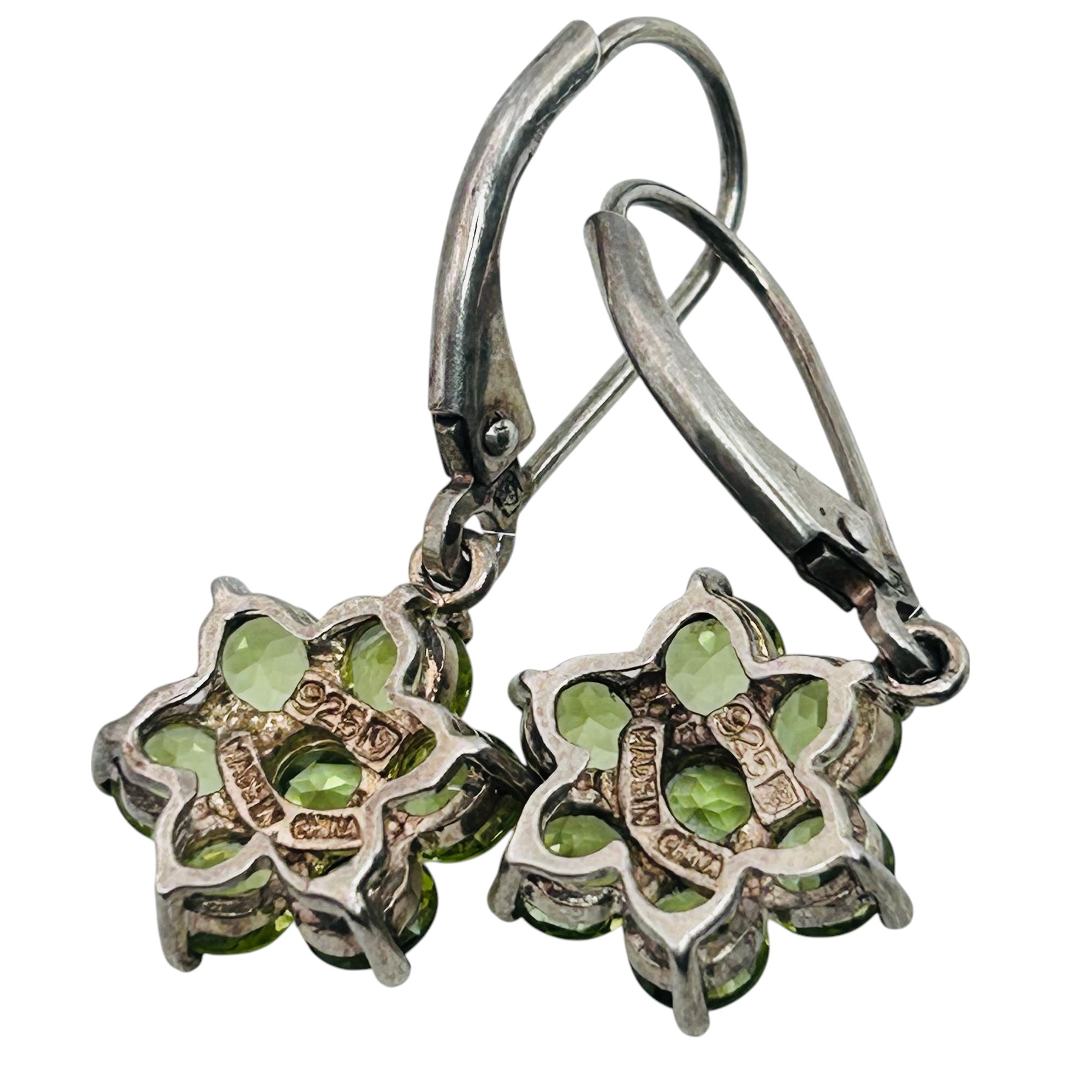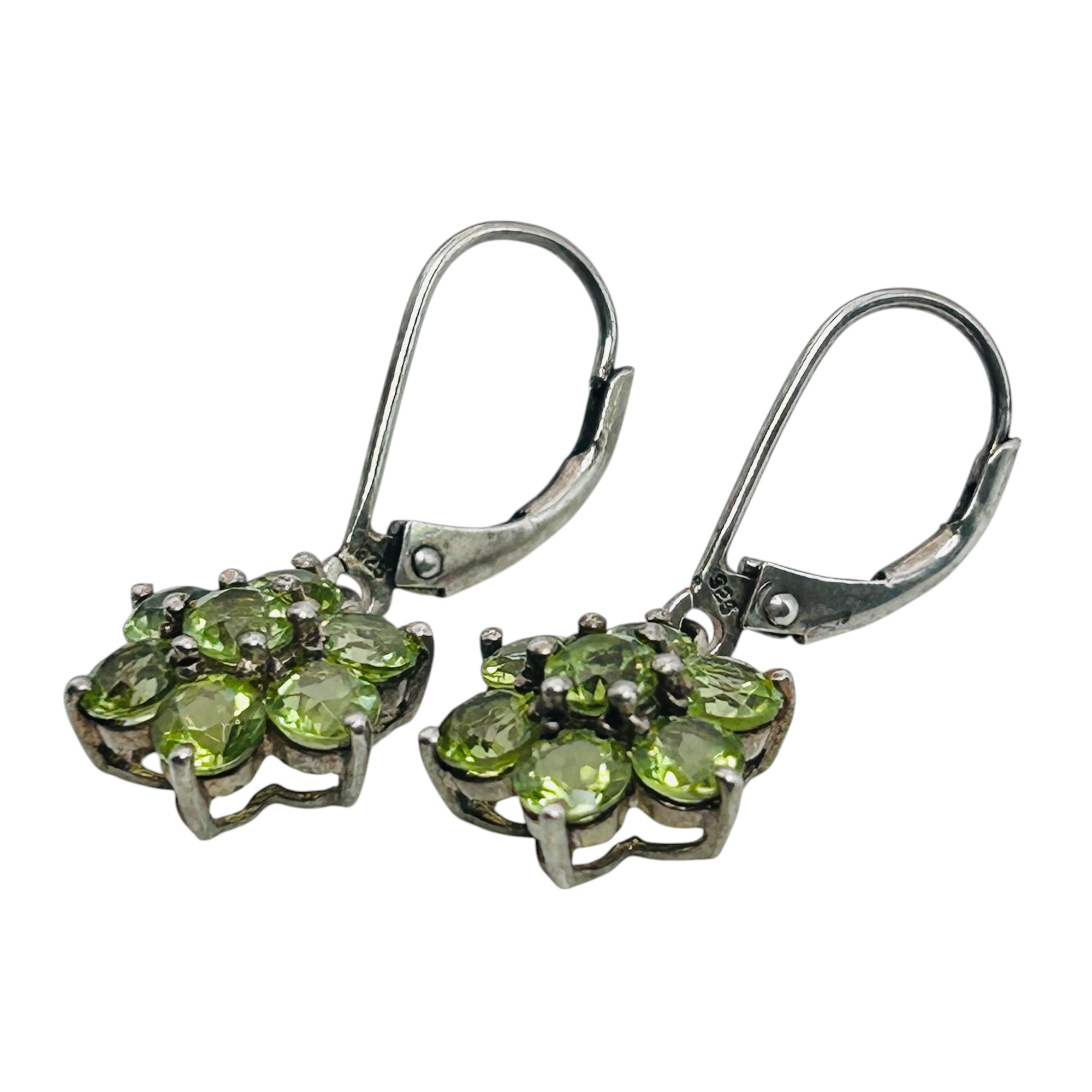 Emerald flower sterling hinge dangle earrings 3.83