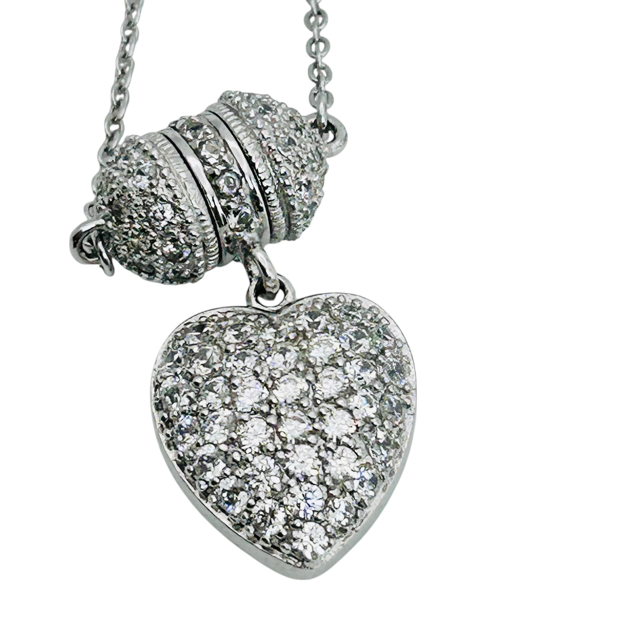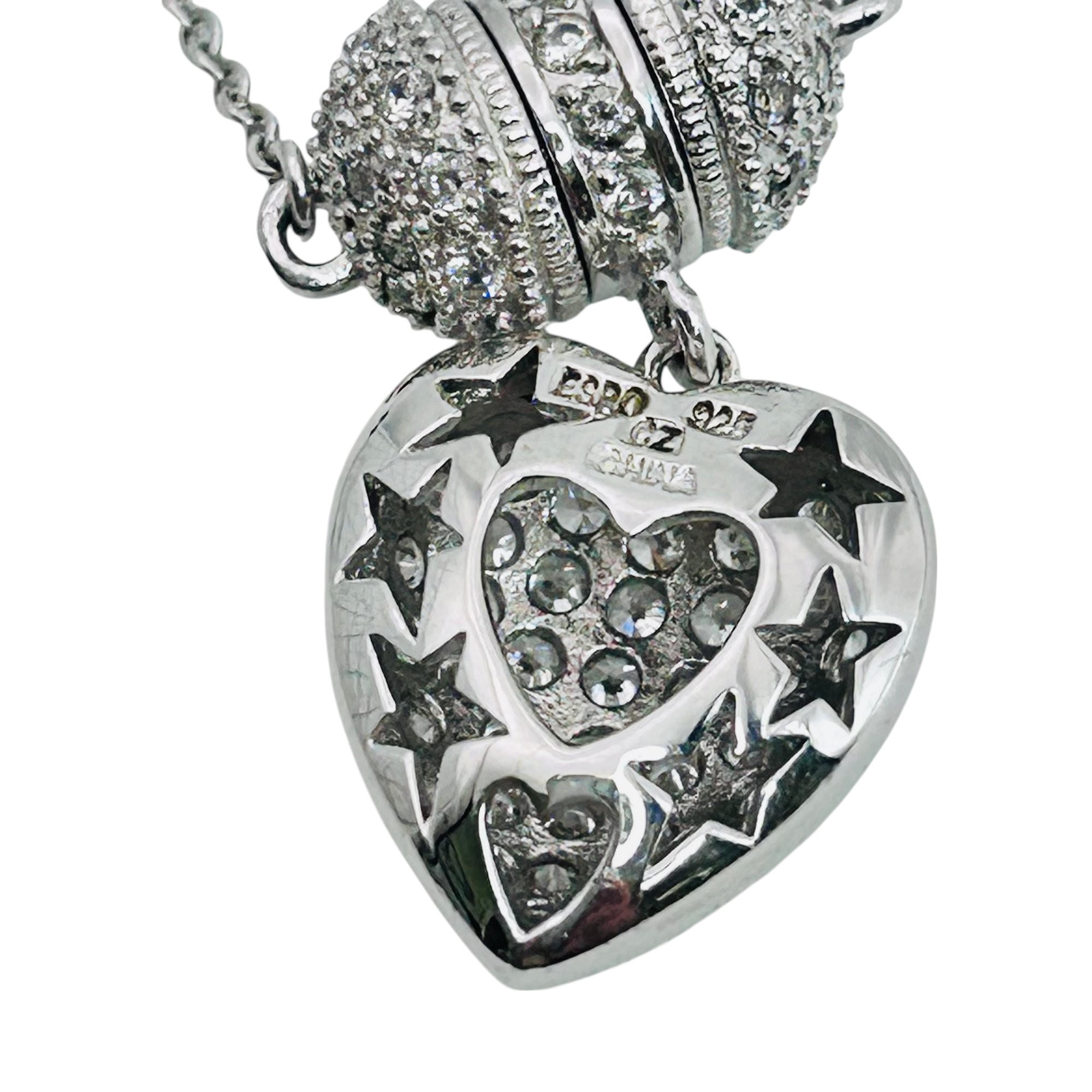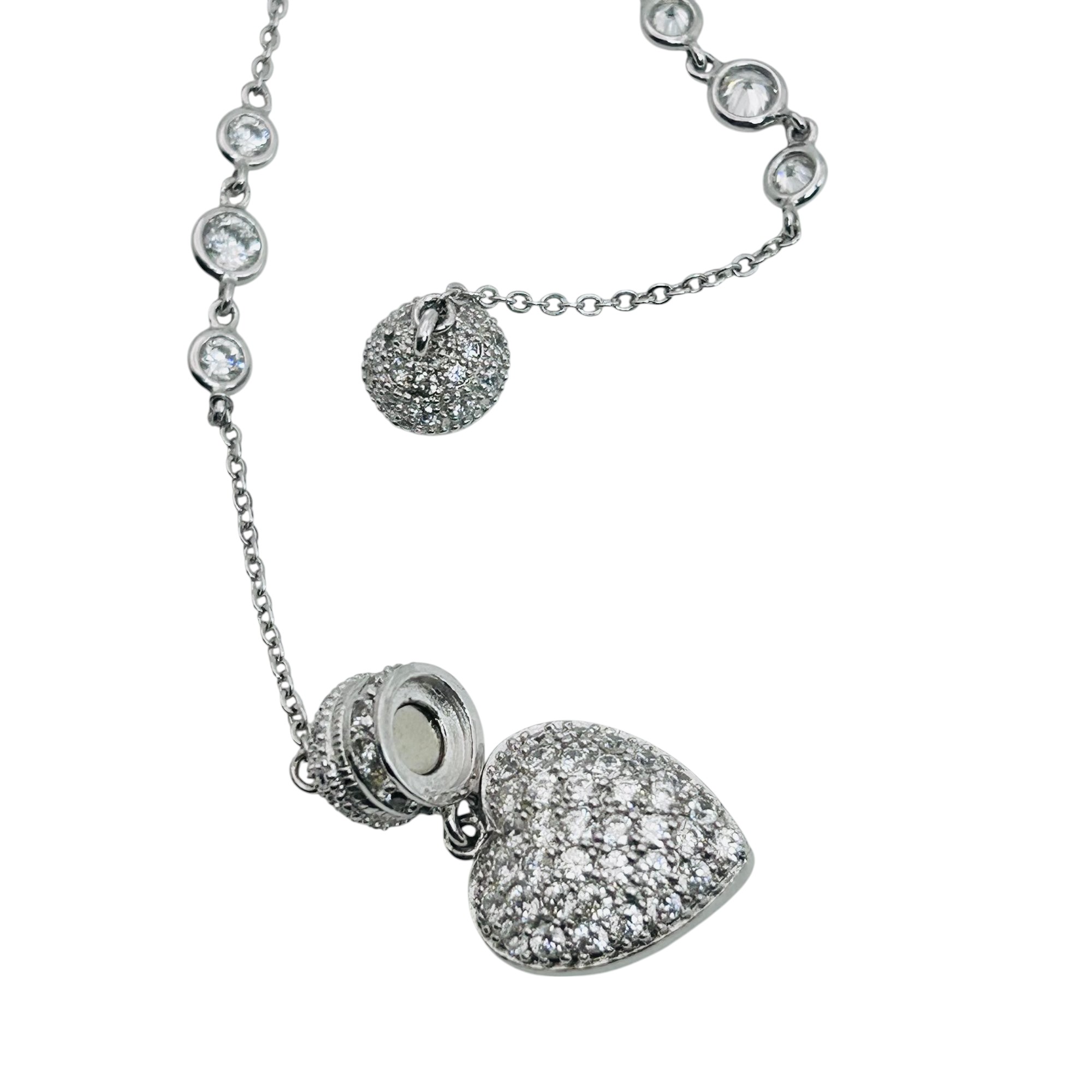 ESPO cubic zirconia sterling cable chain heart pendant magnetic clasp necklace 14.73 g