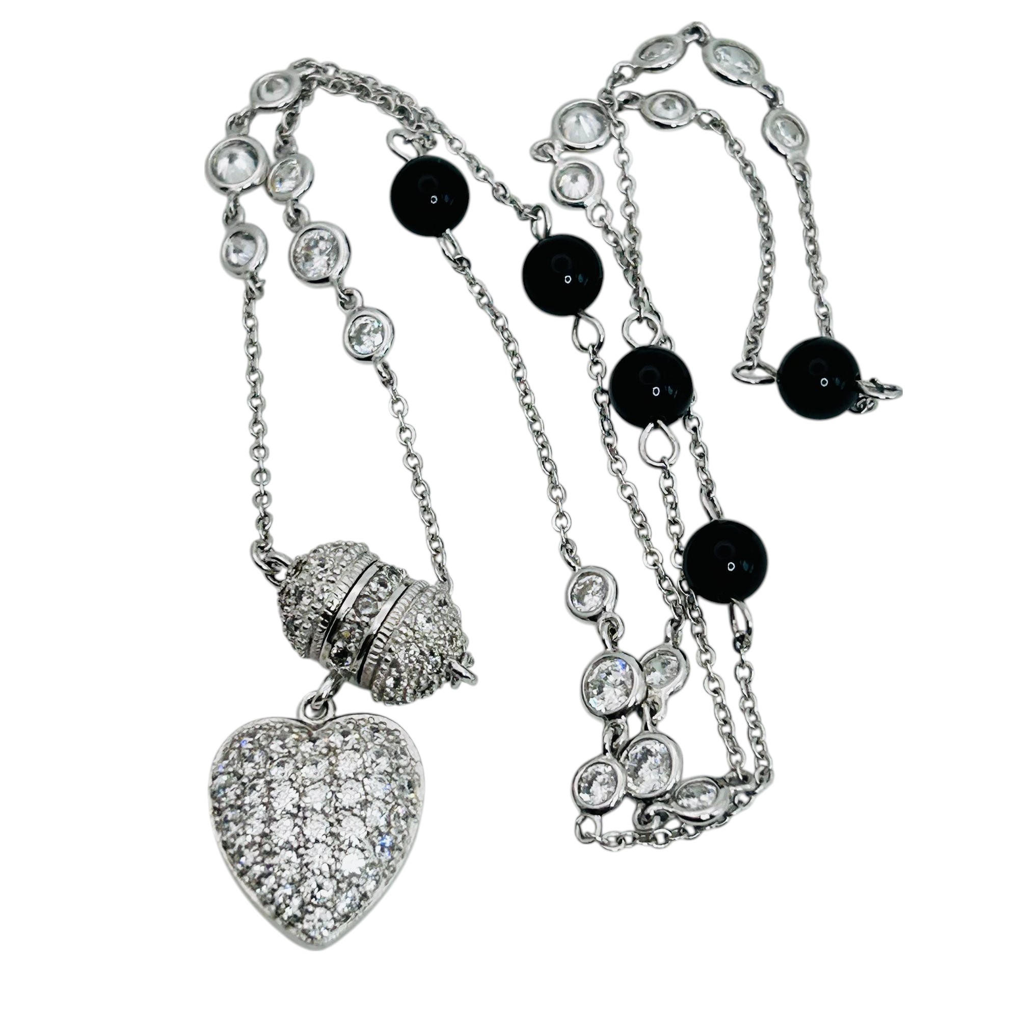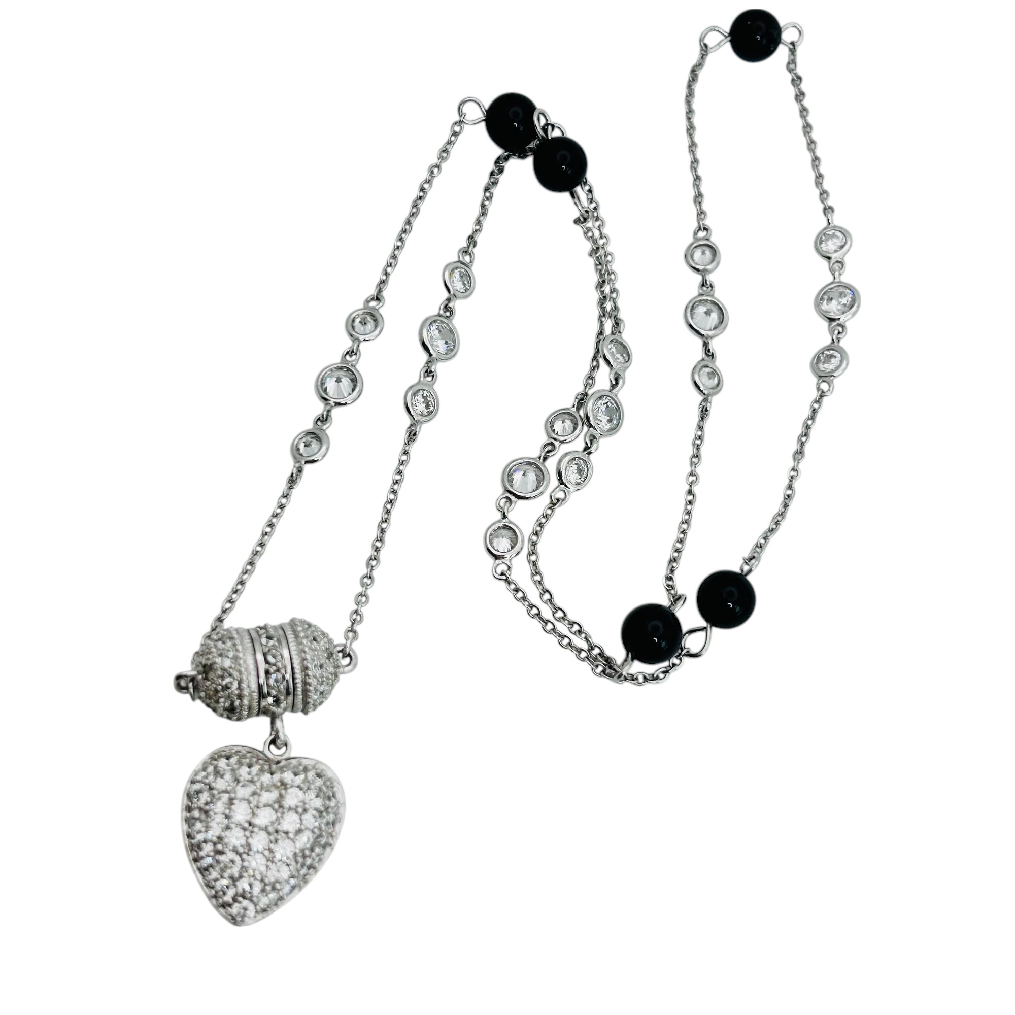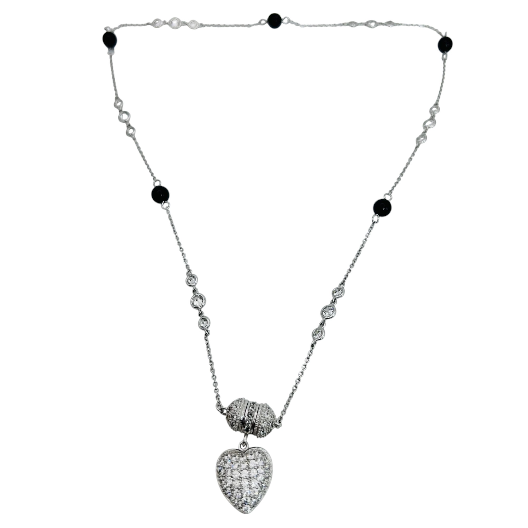 ESPO cubic zirconia sterling cable chain heart pendant magnetic clasp necklace 14.73 g