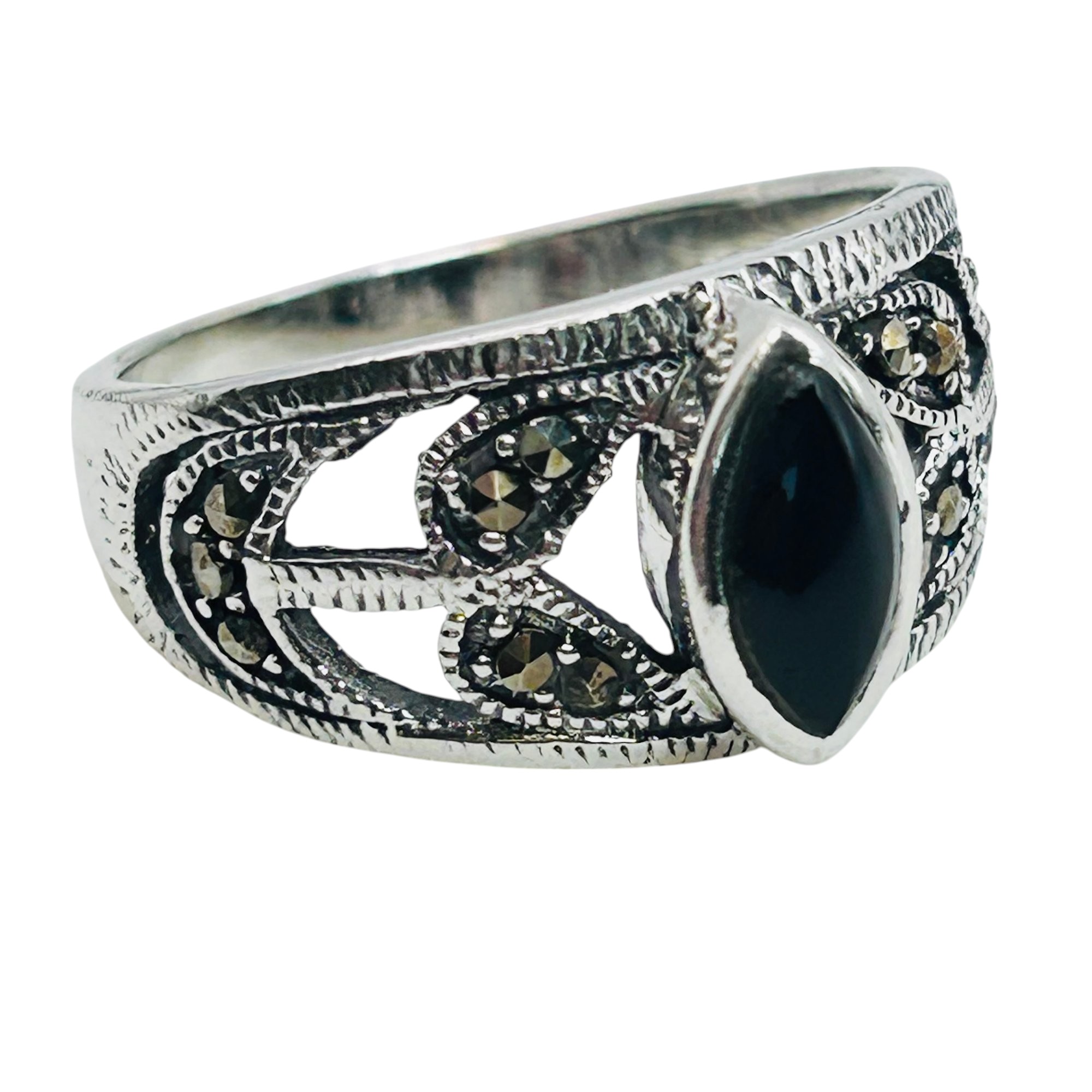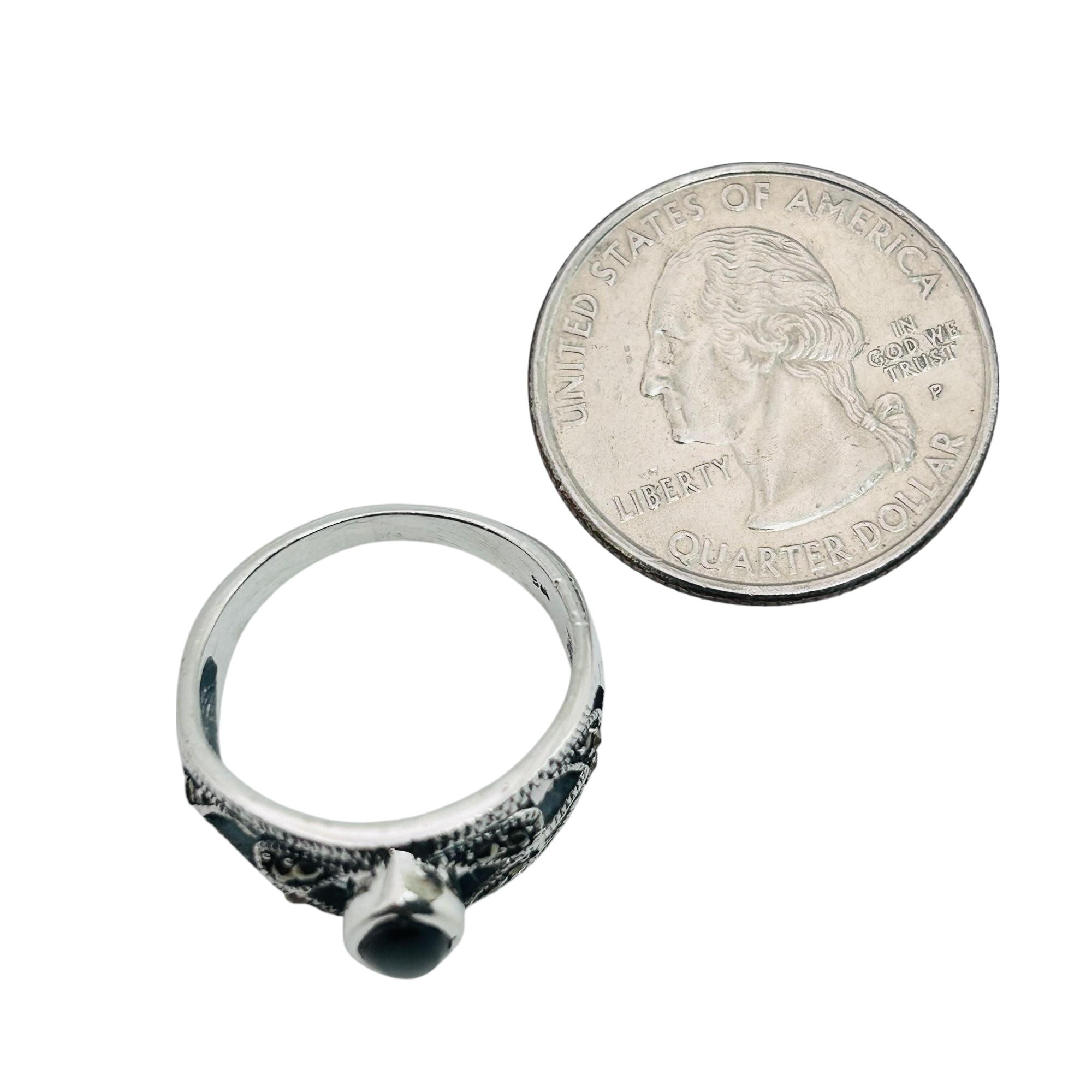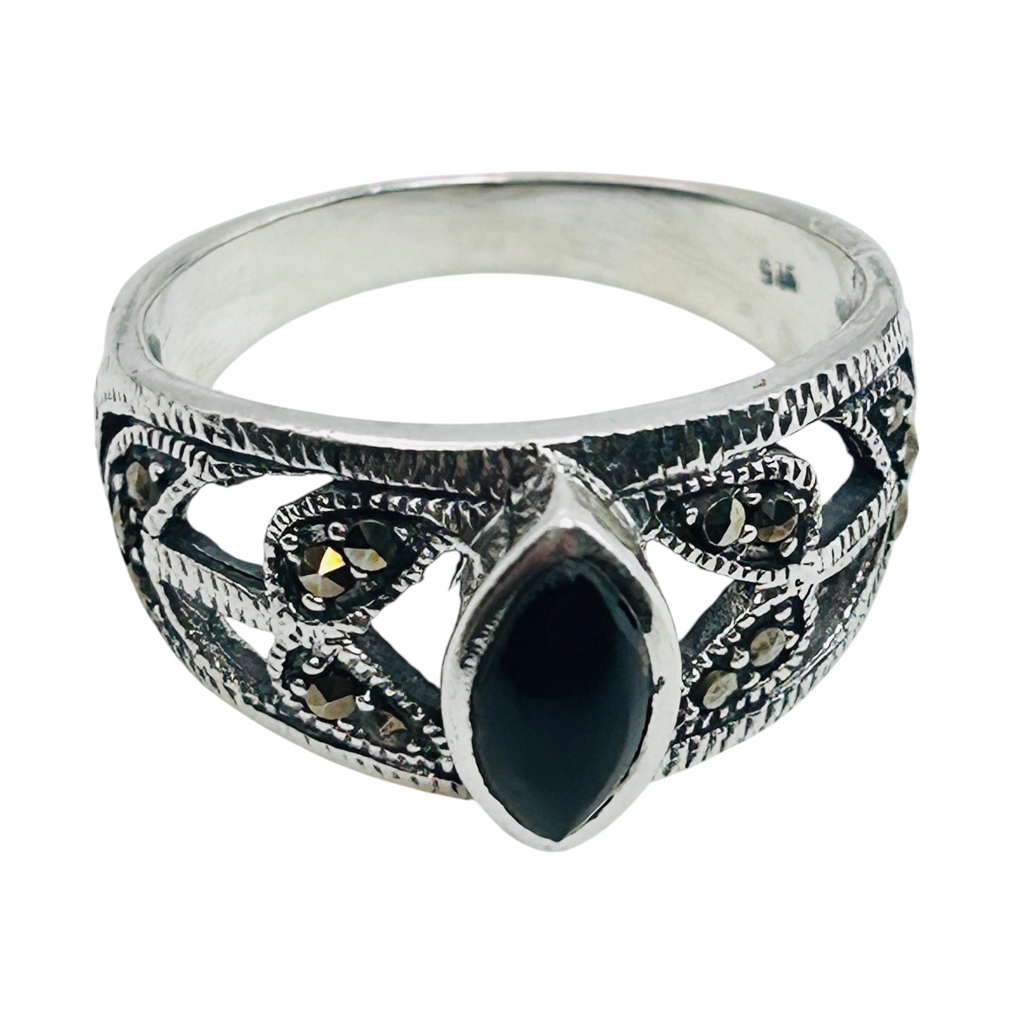 ONYX and MARCASITE Sterling ring size 7 4.48 g