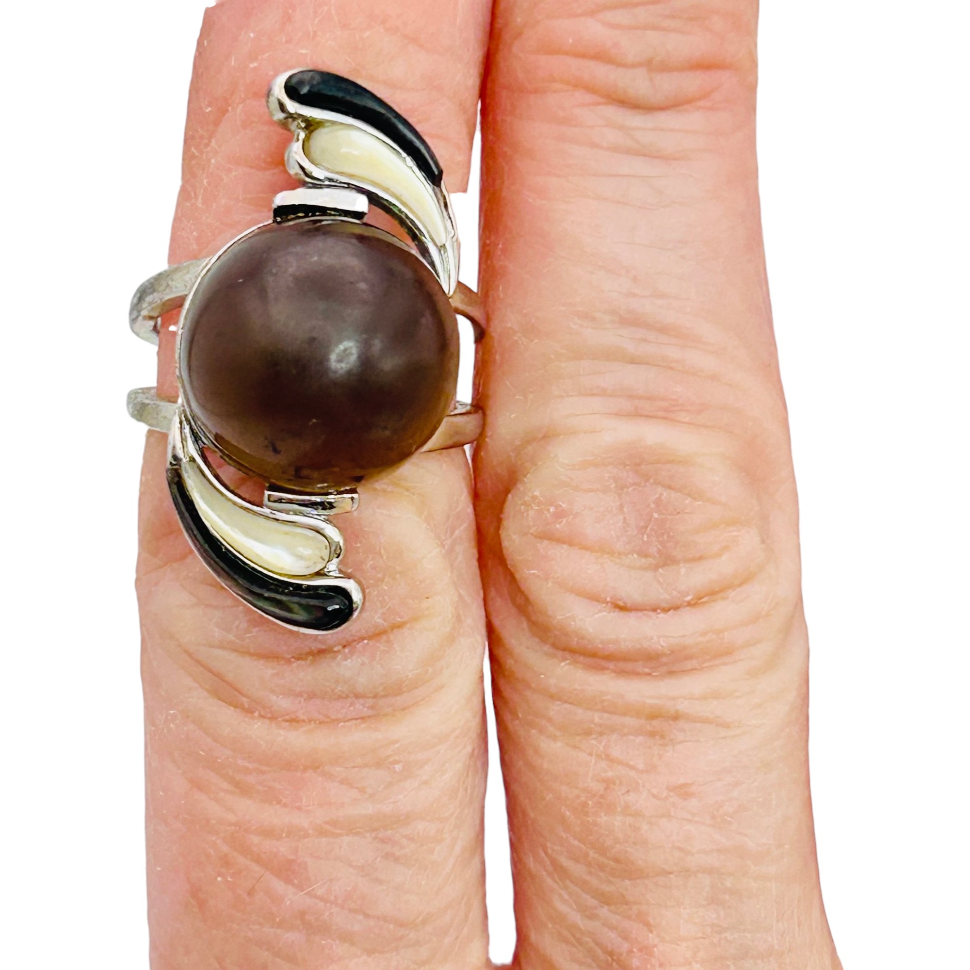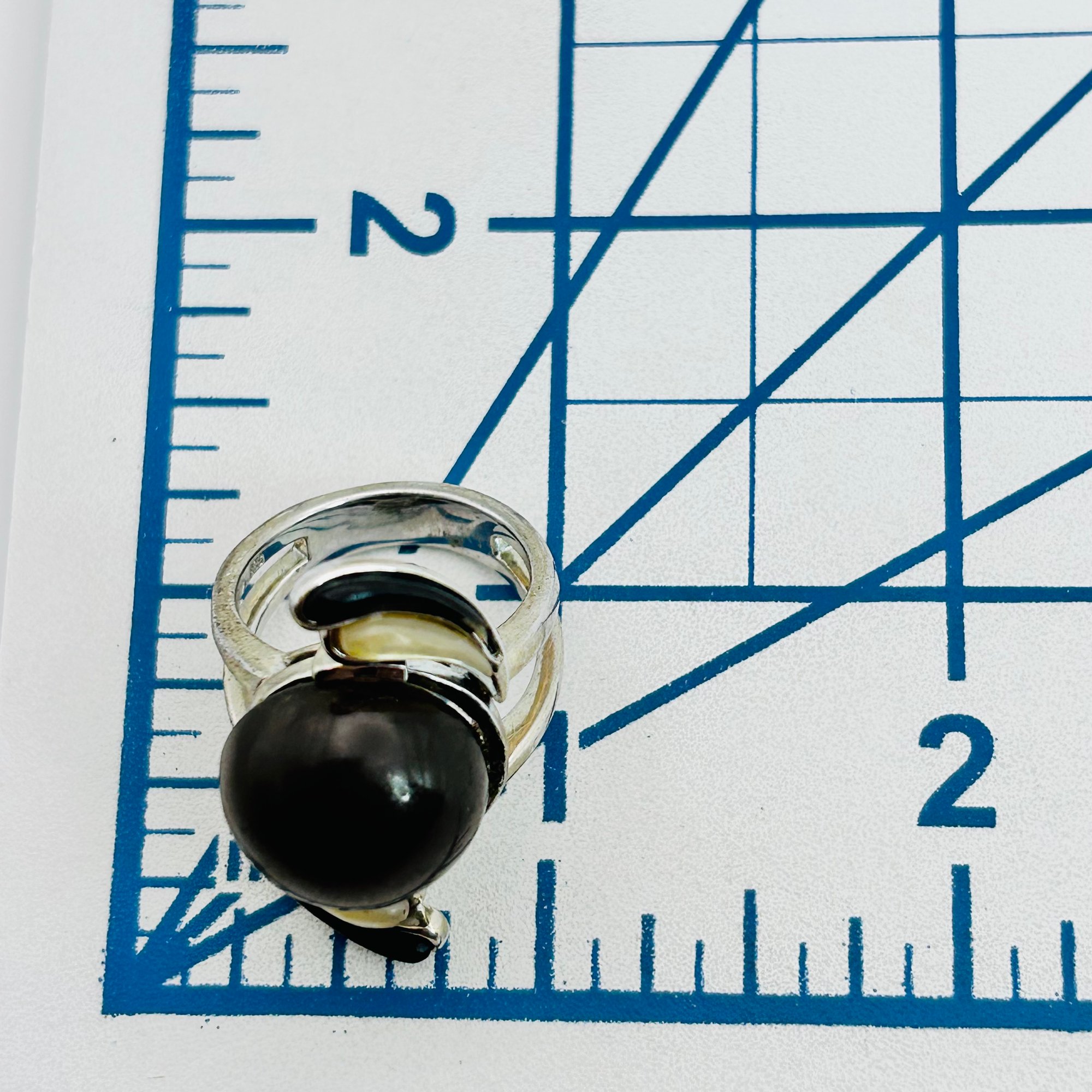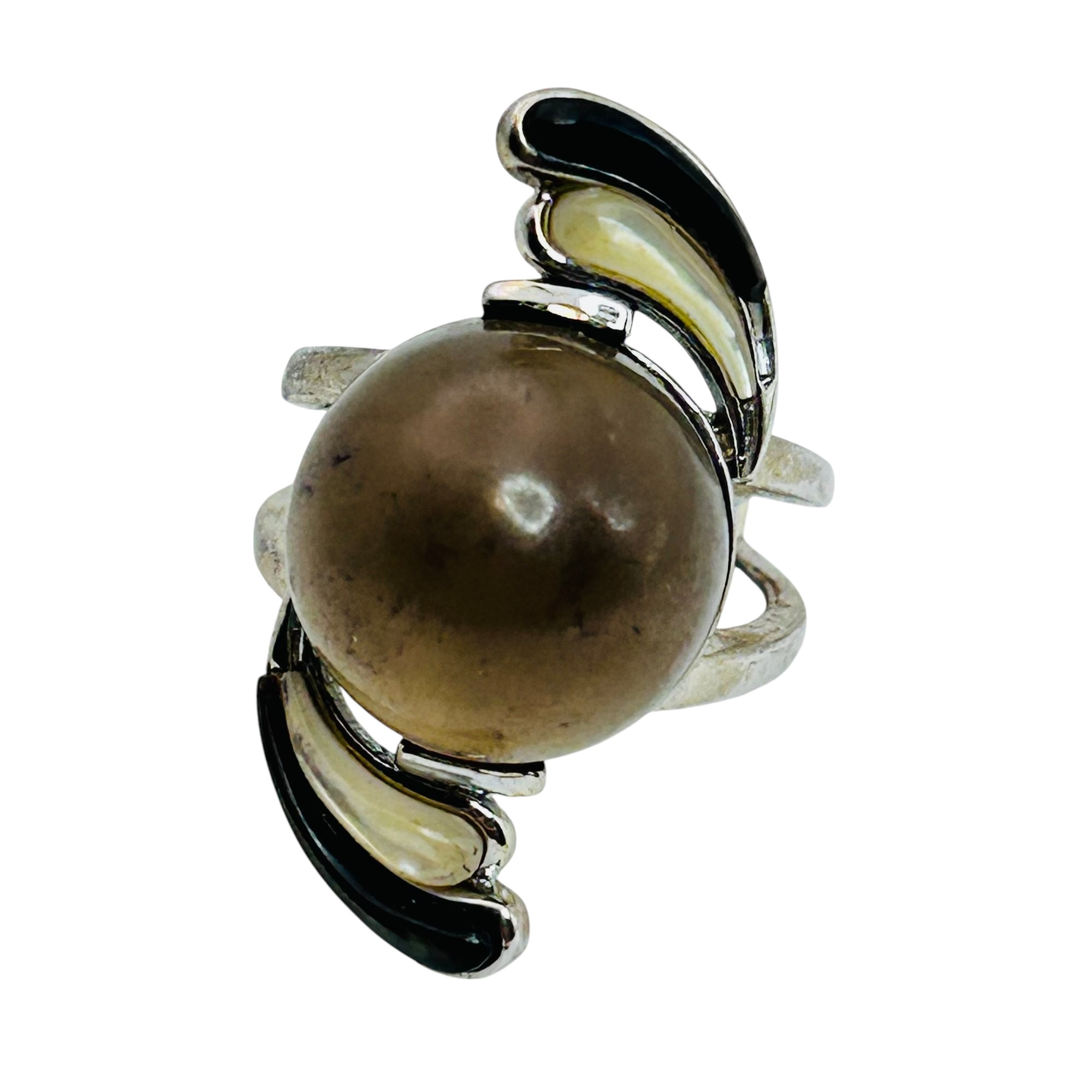 Quartz MOP onyx Sterling statement ring unknown signature size 7 10.85 g
