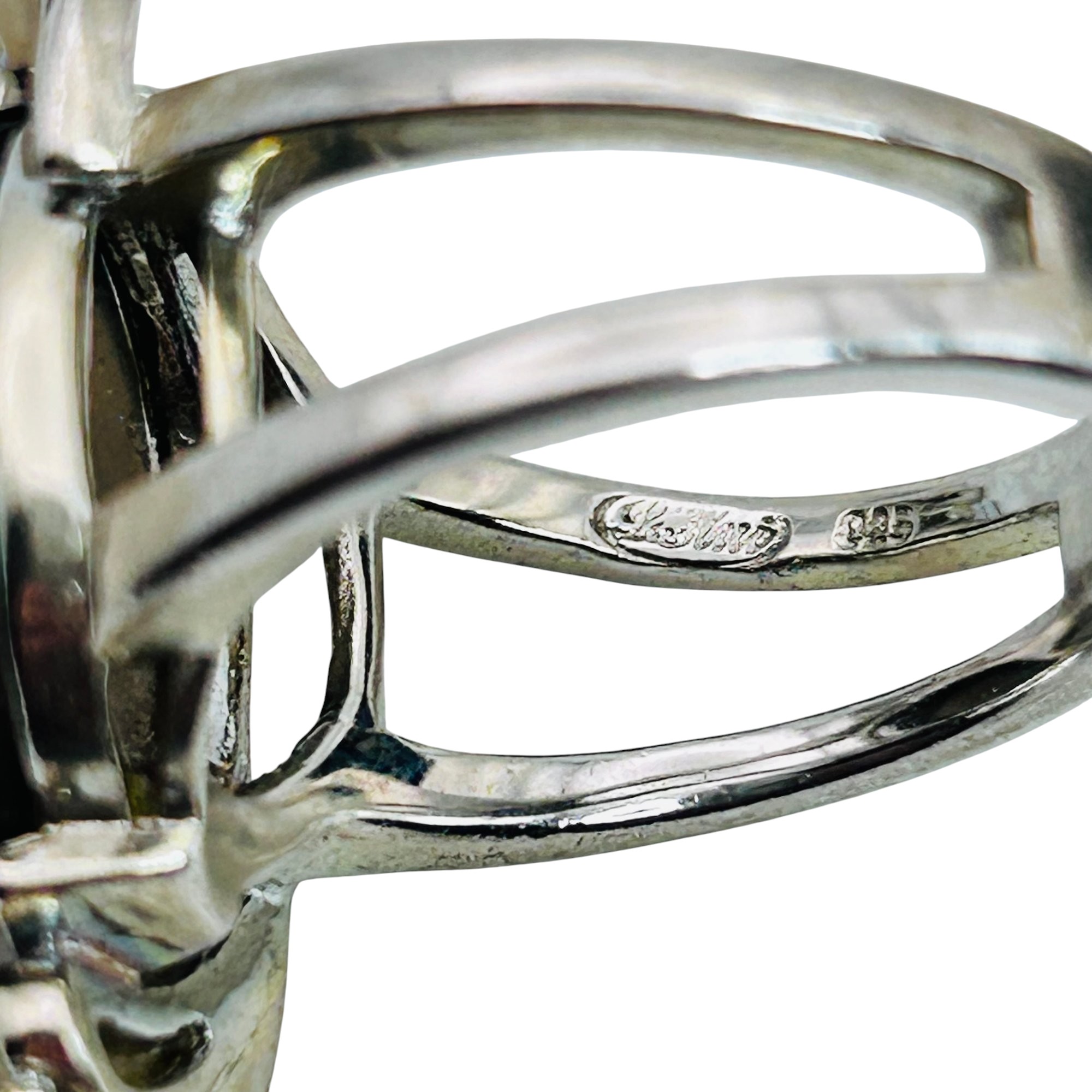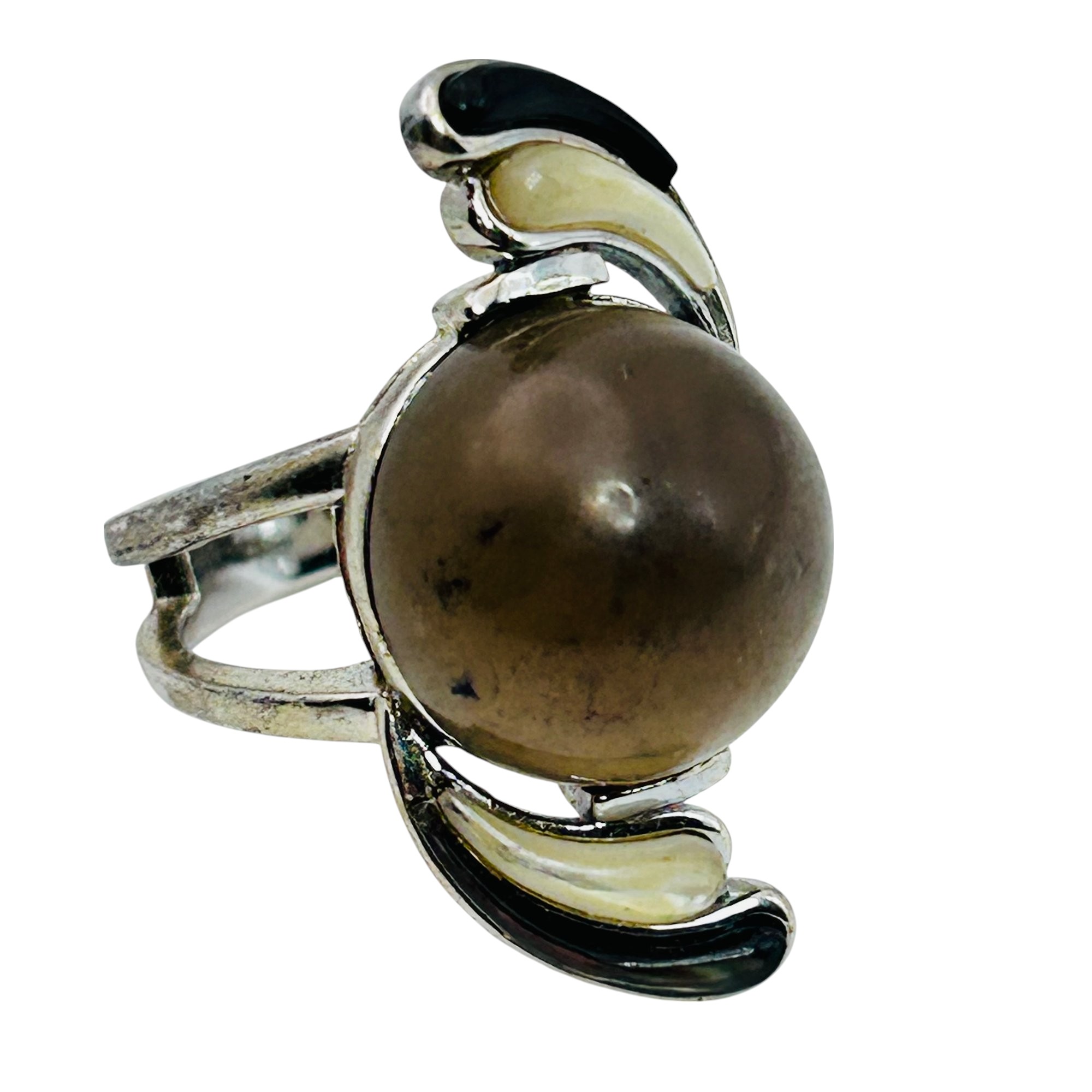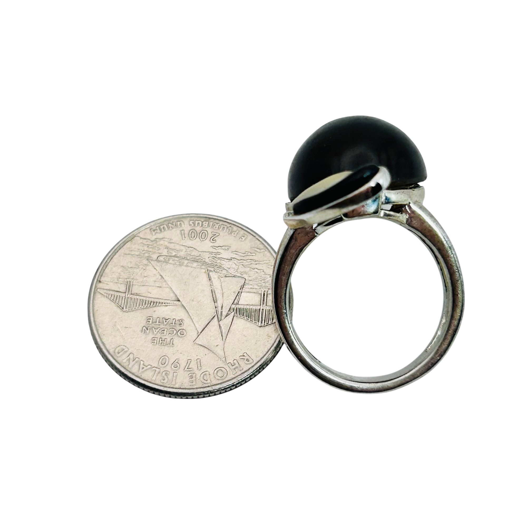 Quartz MOP onyx Sterling statement ring unknown signature size 7 10.85 g