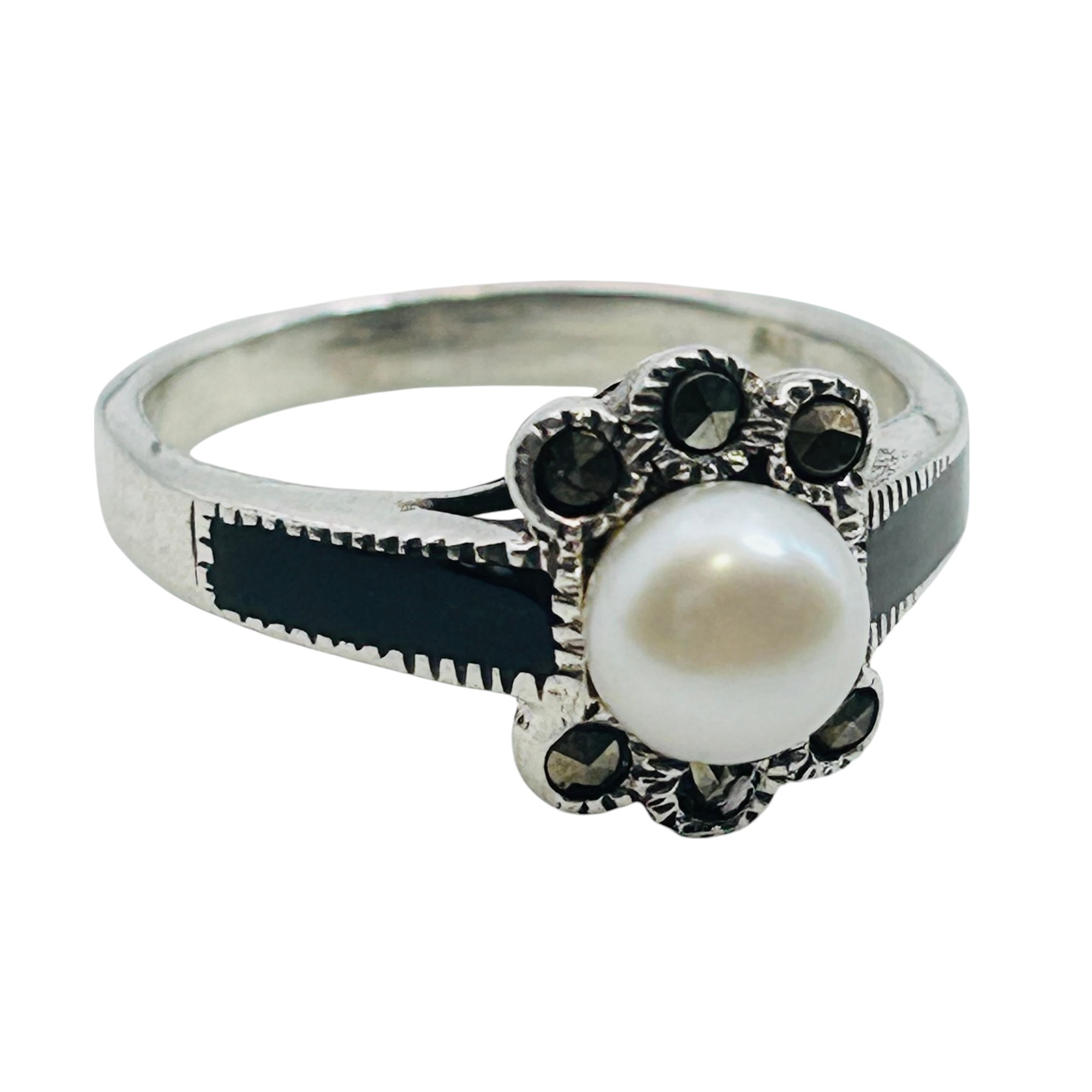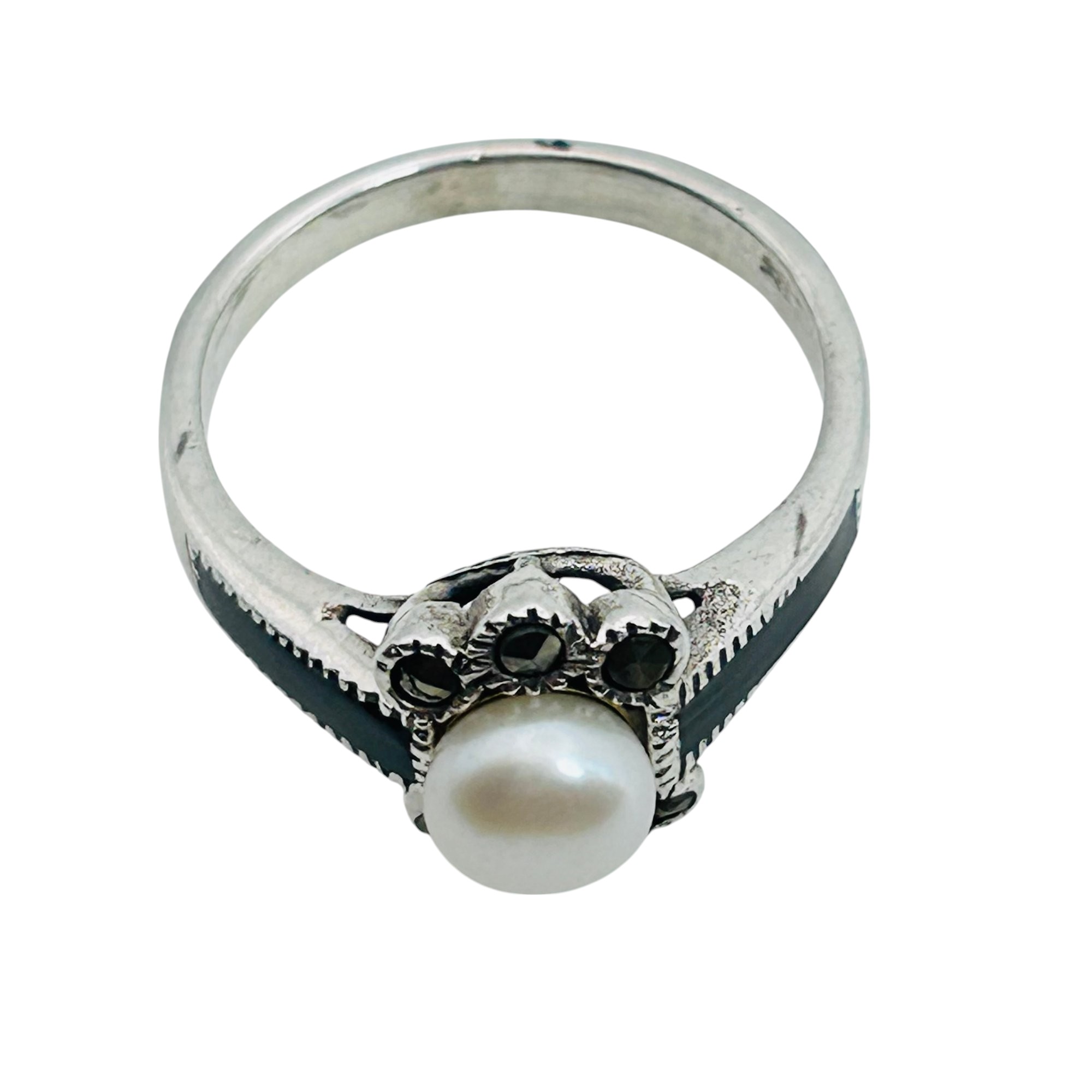 Pearl Sterling MARCASITE ring size 7 3.3 g