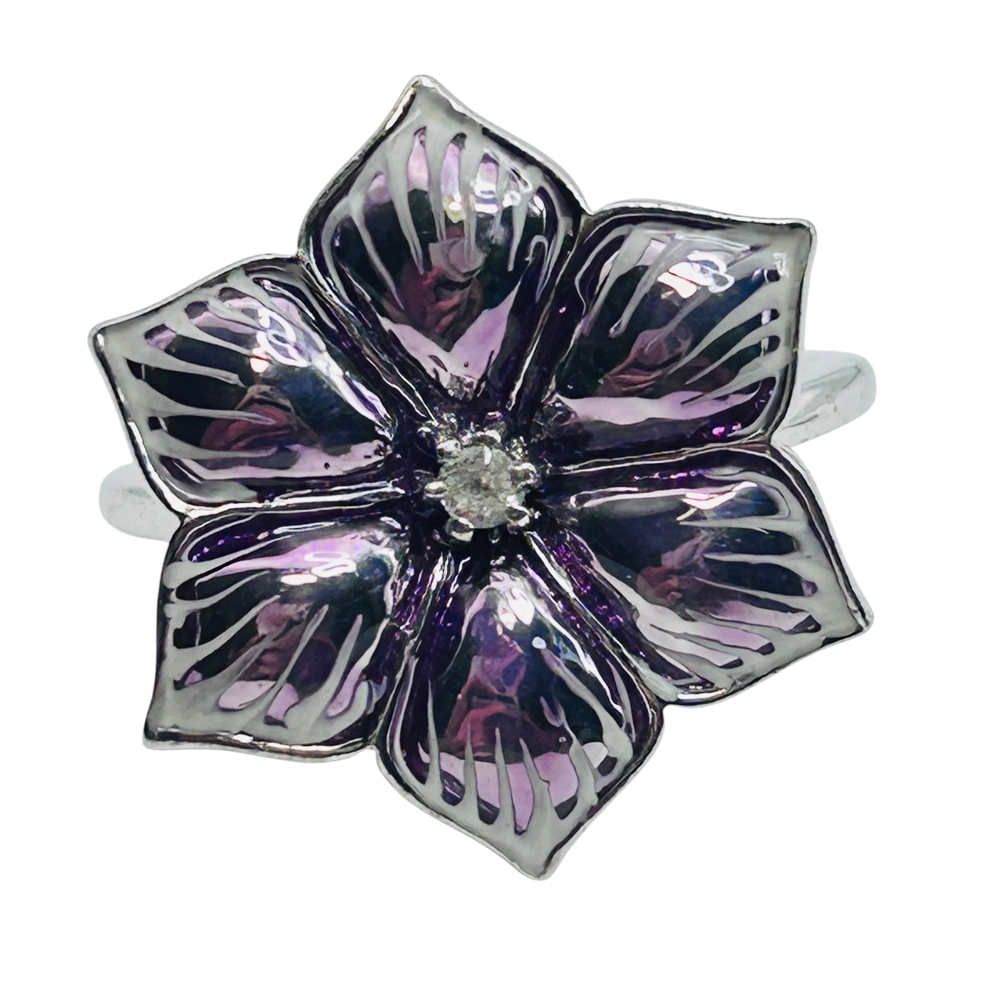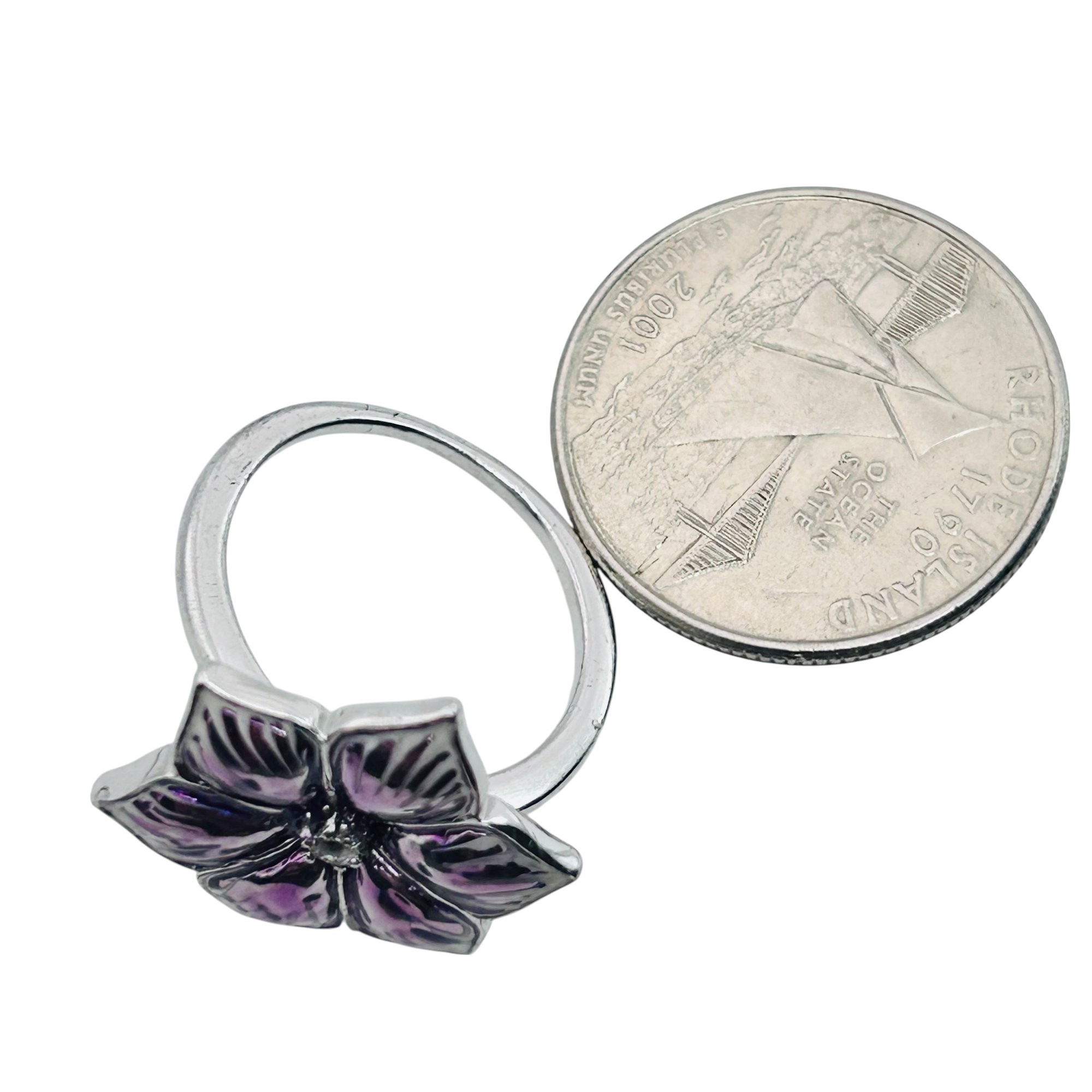 SPINEL enamel flower statement Sterling ring size 6.5 4.63 g