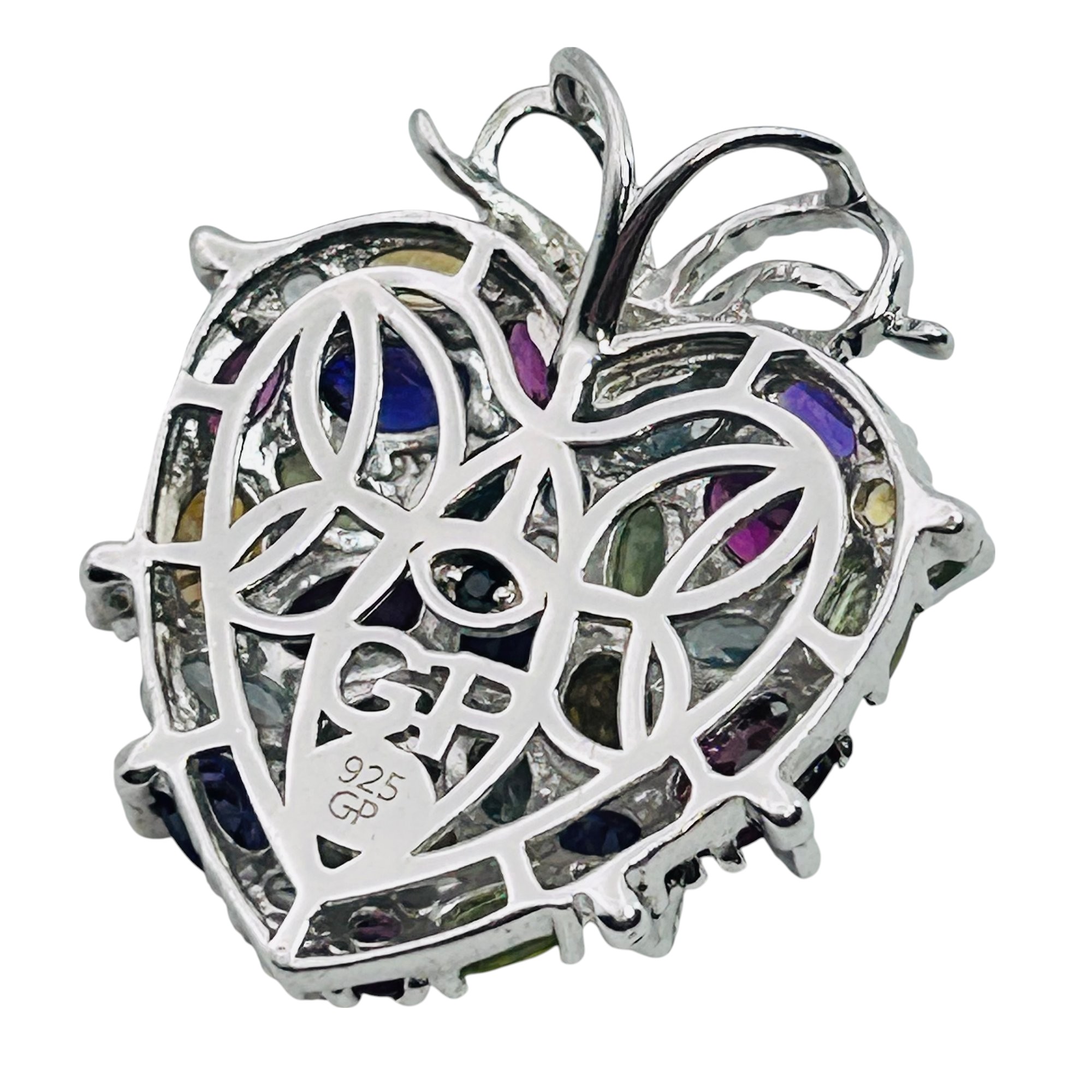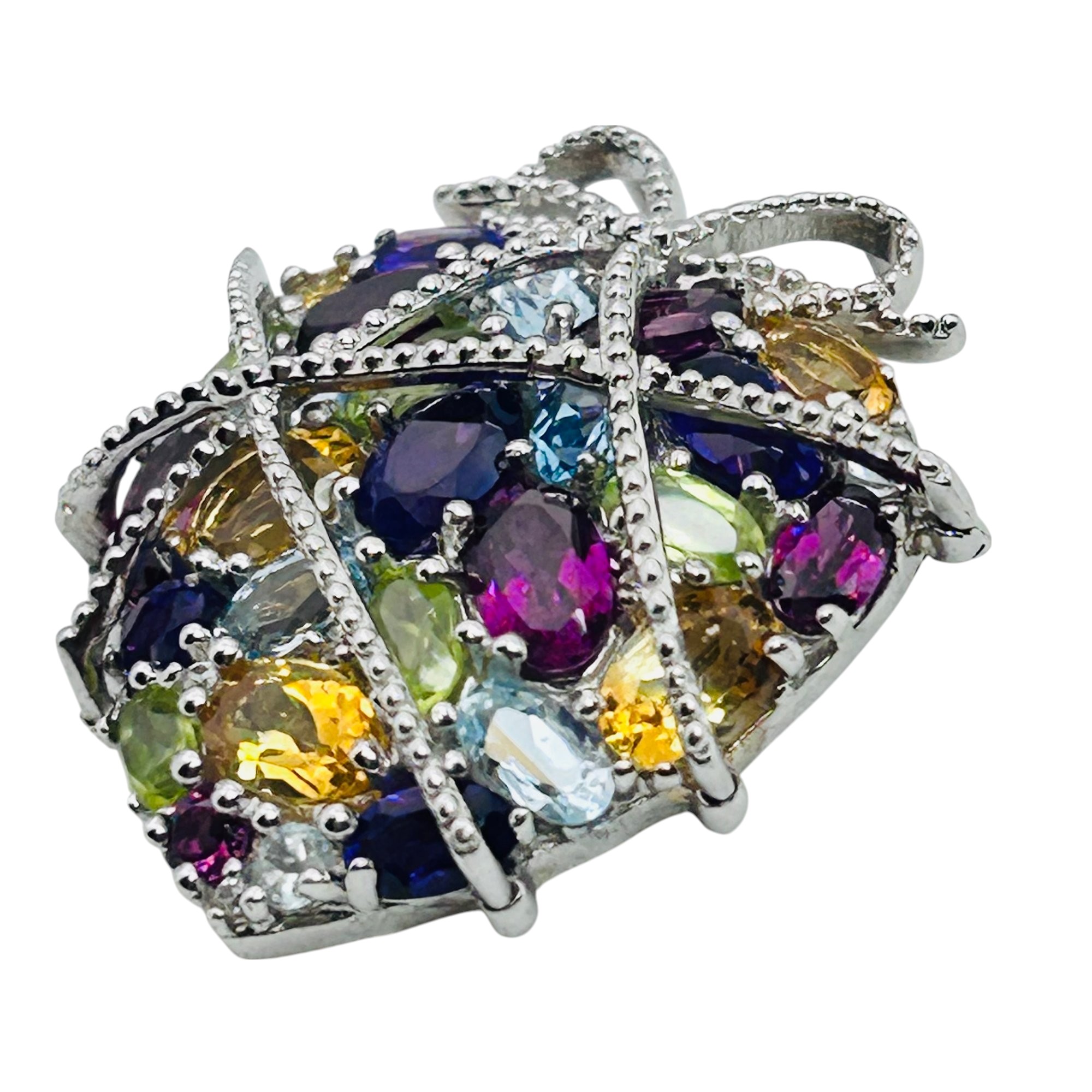 GP multi gemstone amethyst topaz Garnet citrine emerald heart pendant 9.38 g