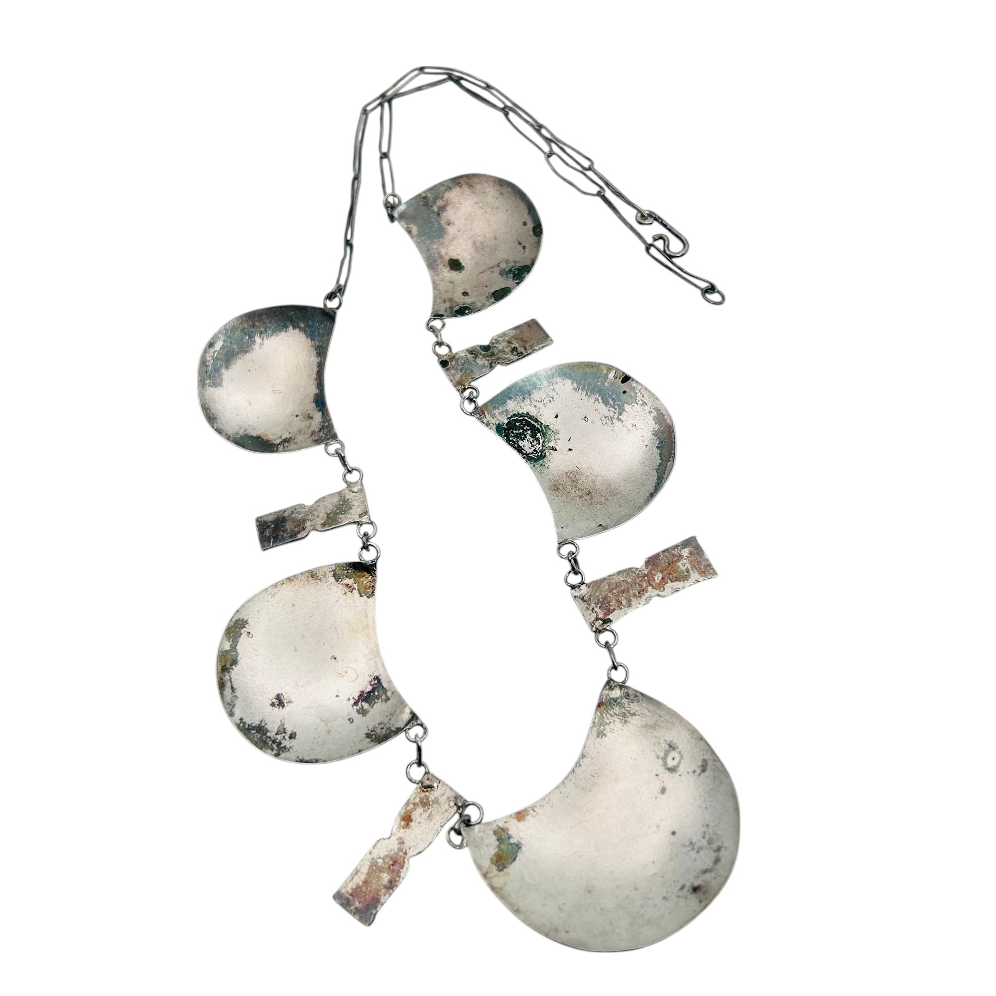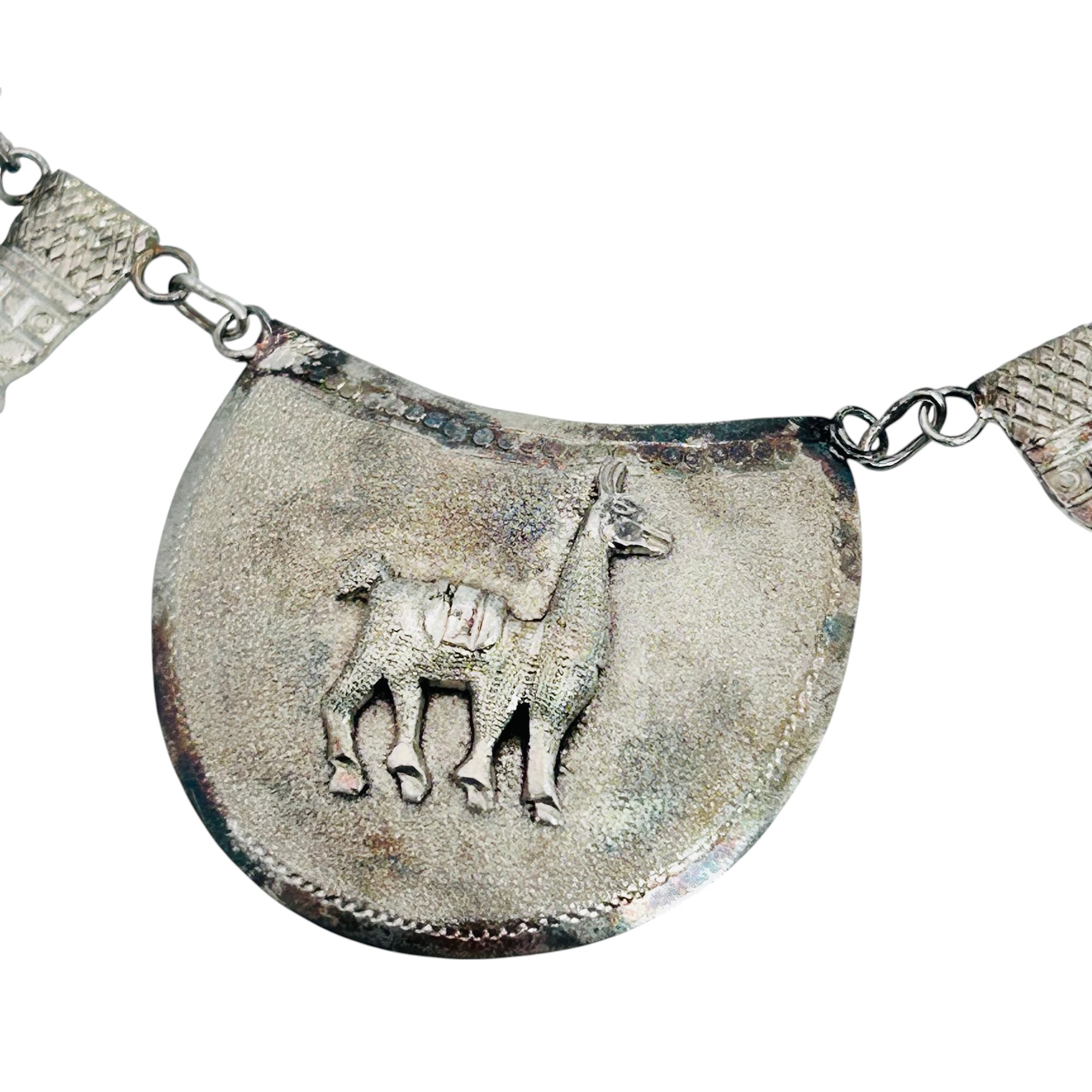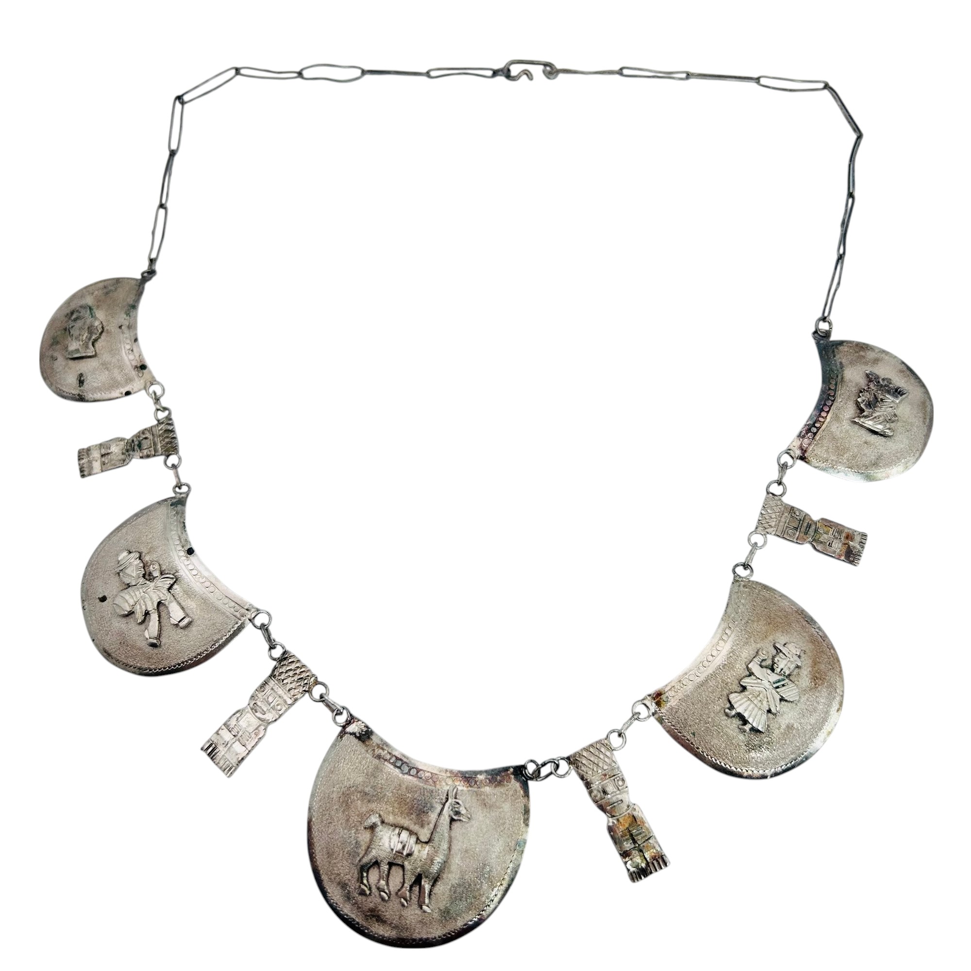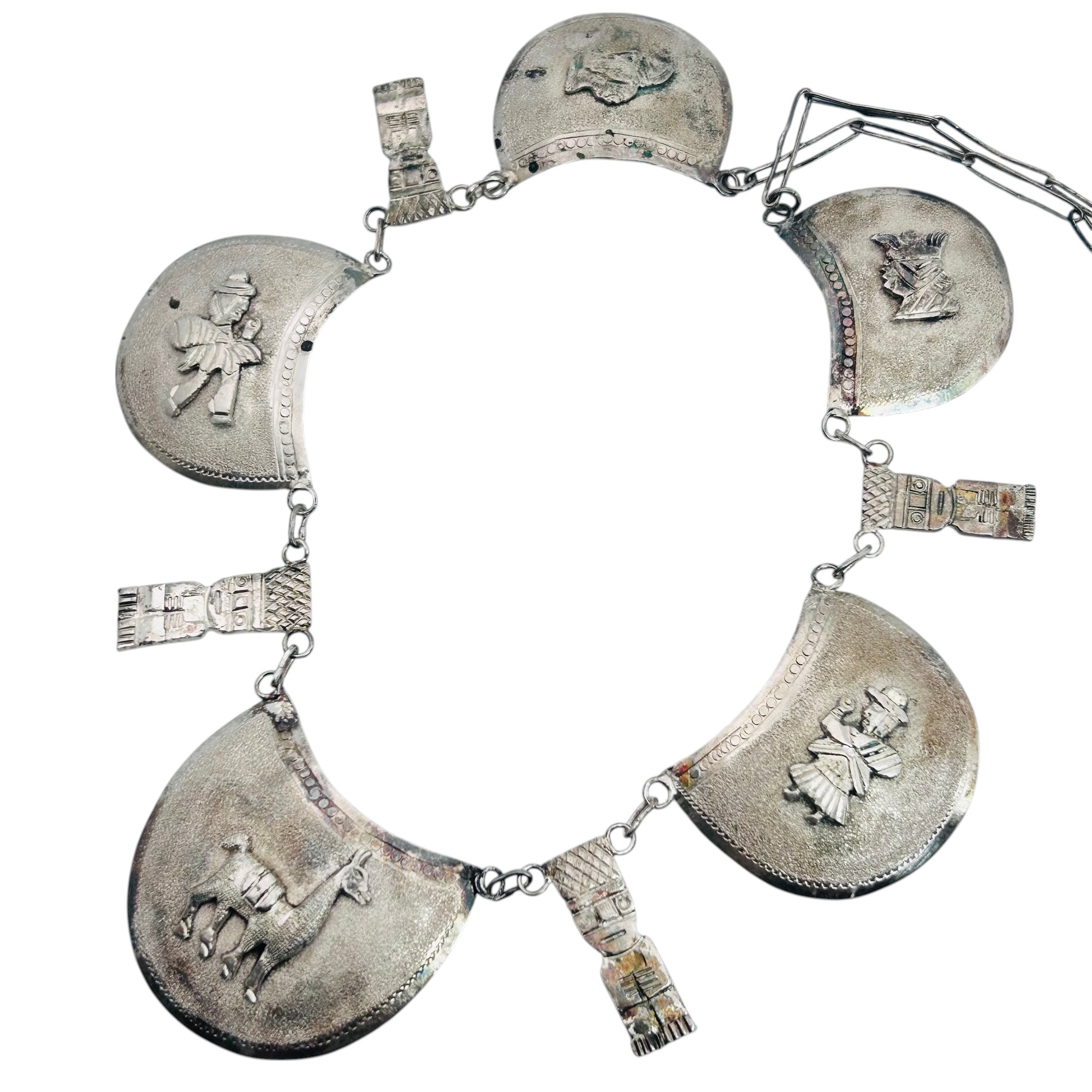 Vintage 900 silver Peruvian bib necklace some tarnish 18.73 g