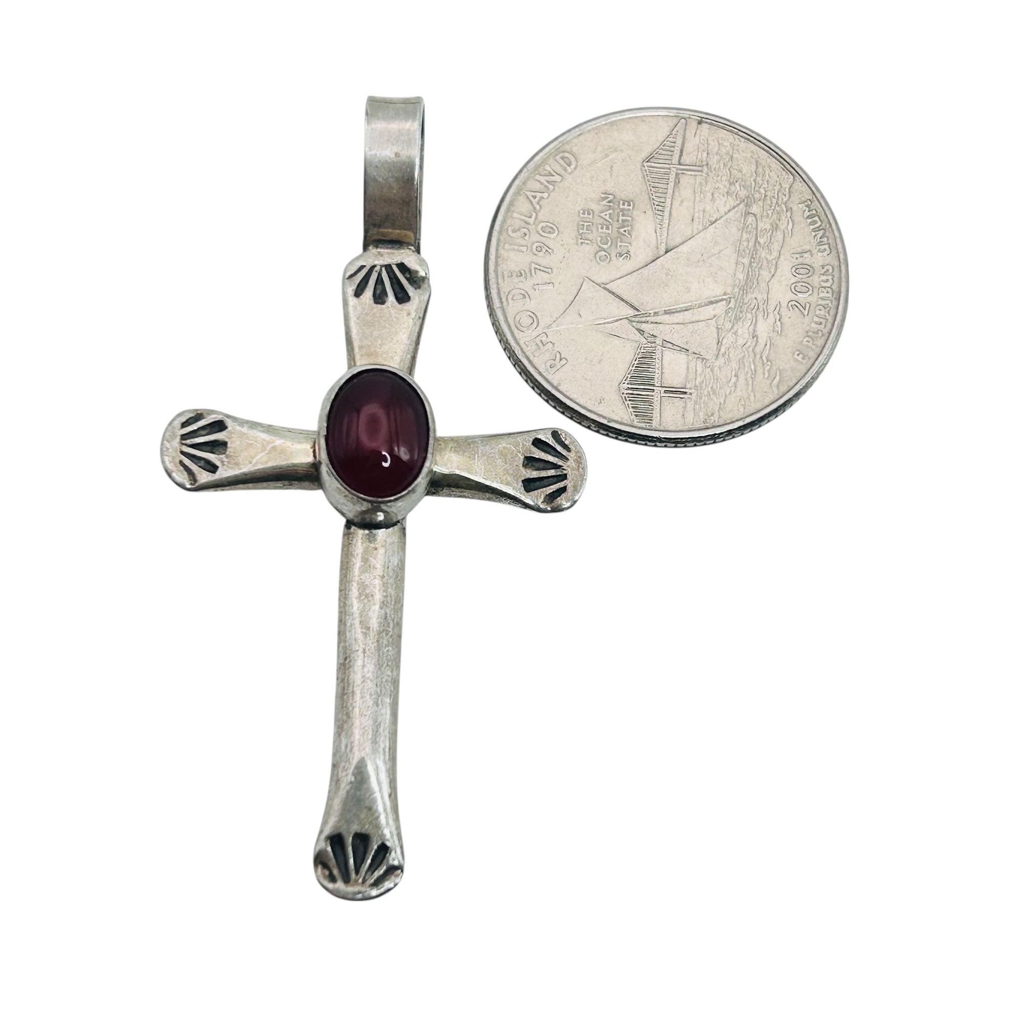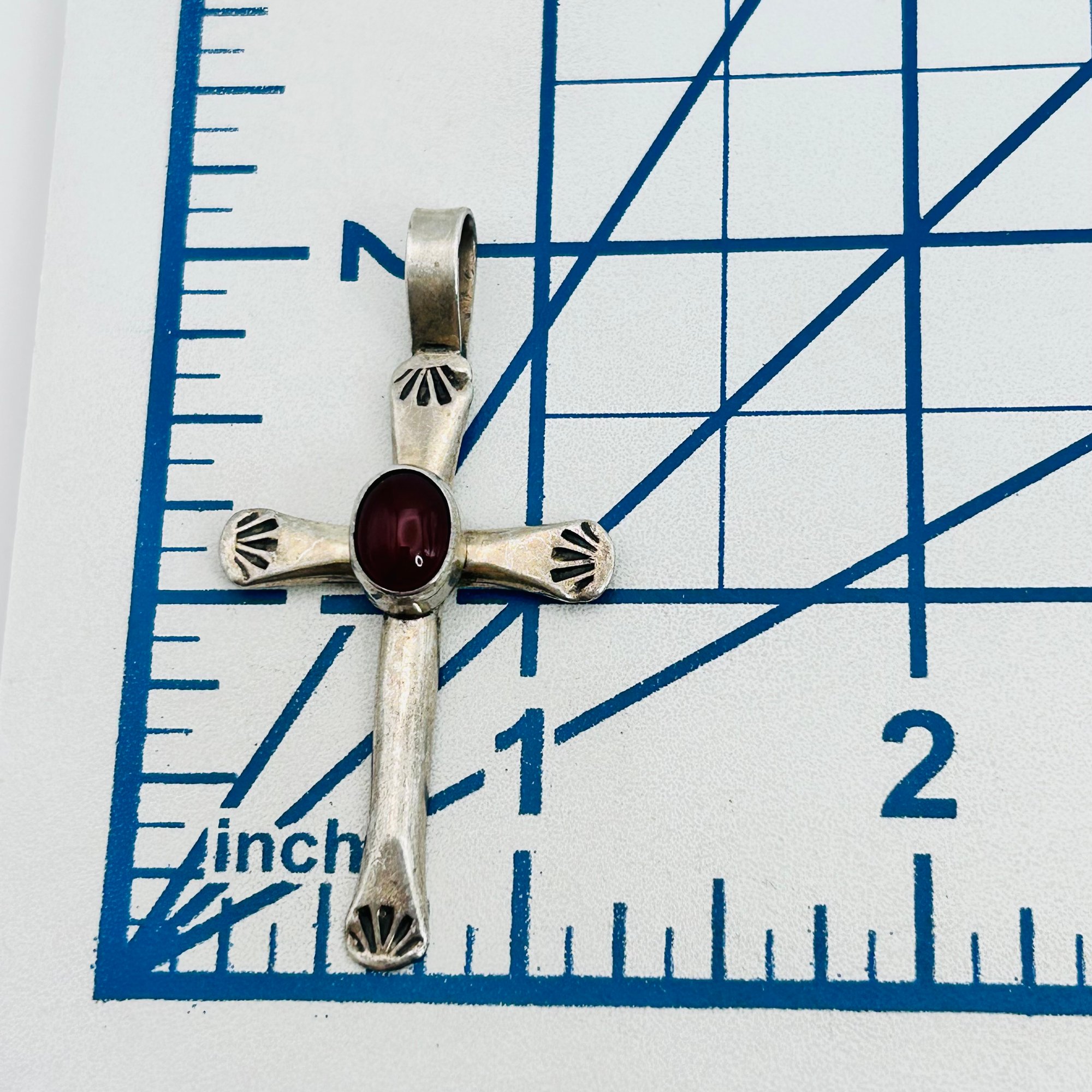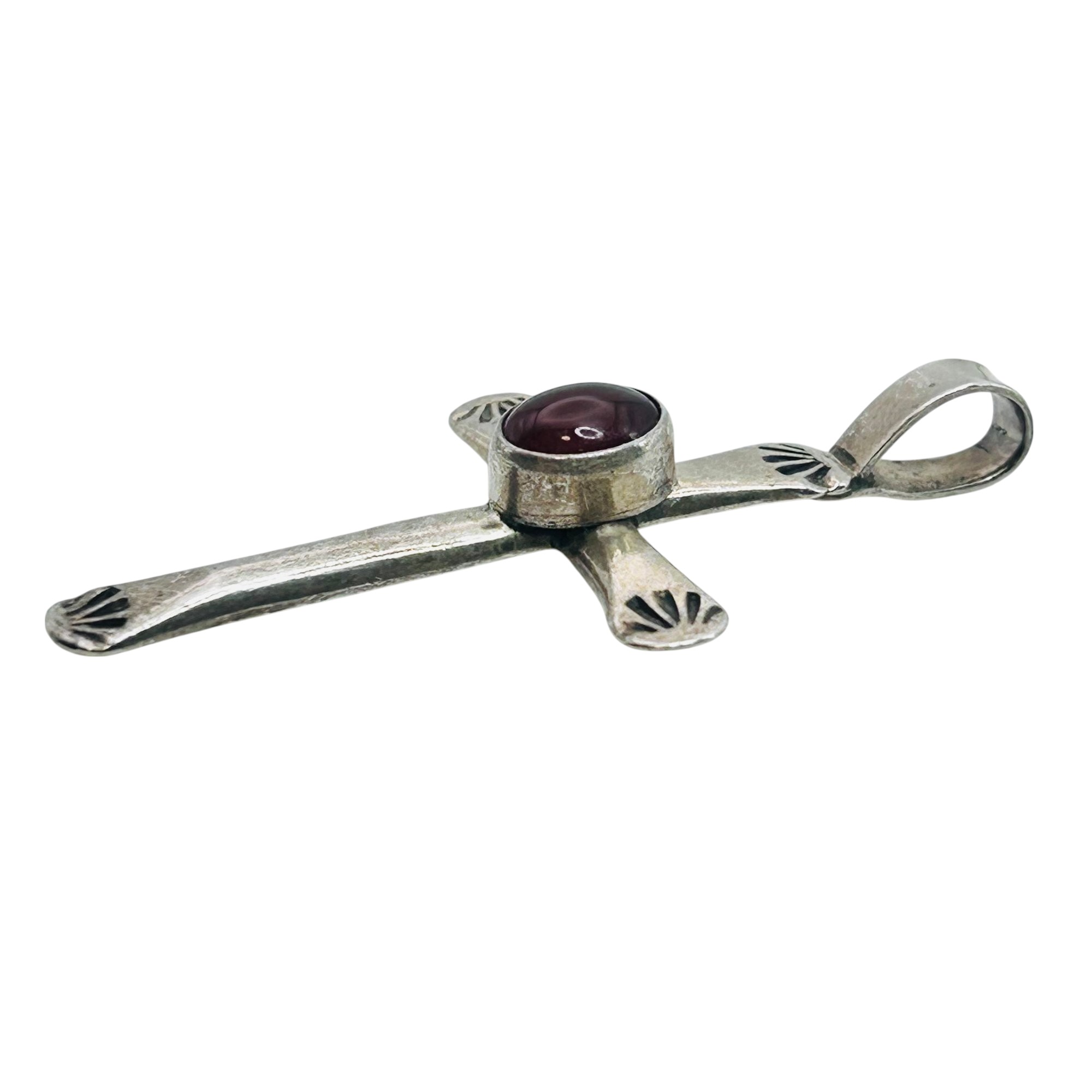Navajo Robert Platero carnelian Sterling Cross pendant 5.25 g