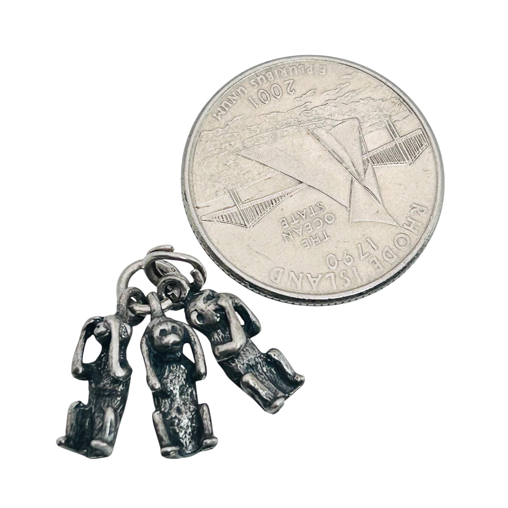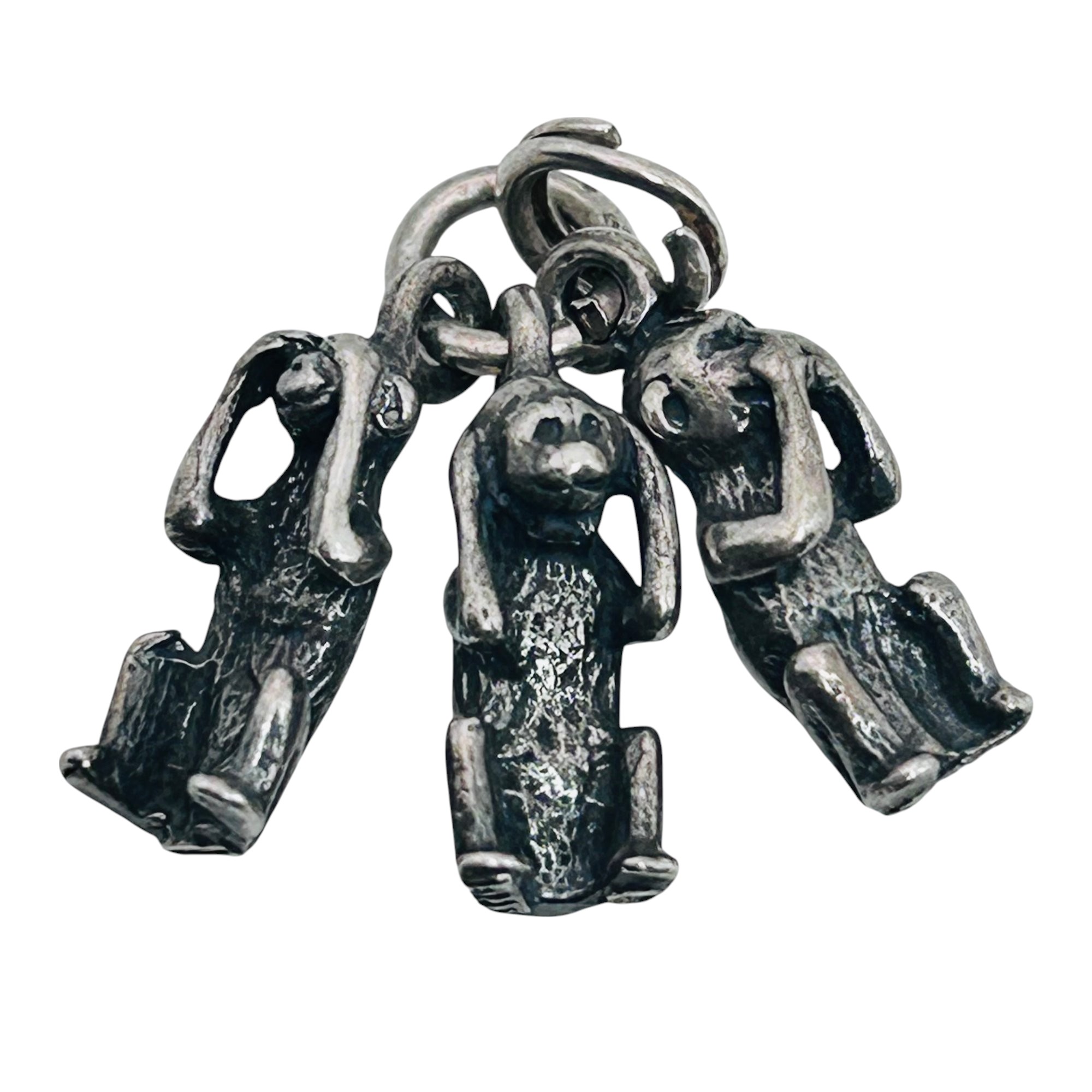 Sterling See, Hear, Speak No Evil Monkey Charm 3.83 G