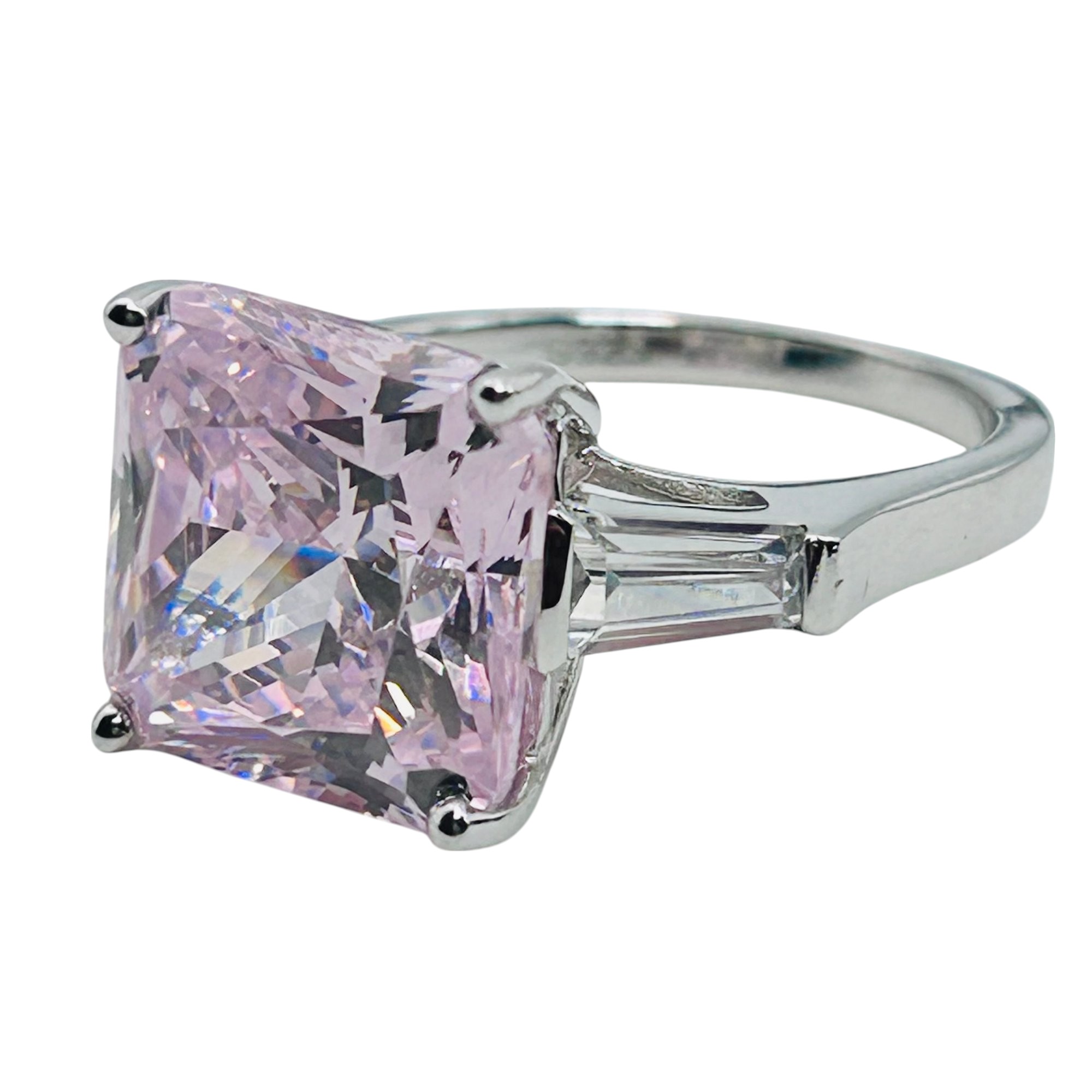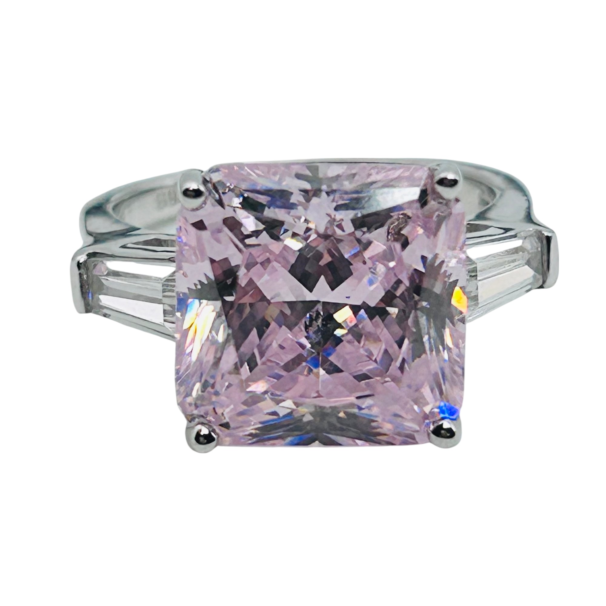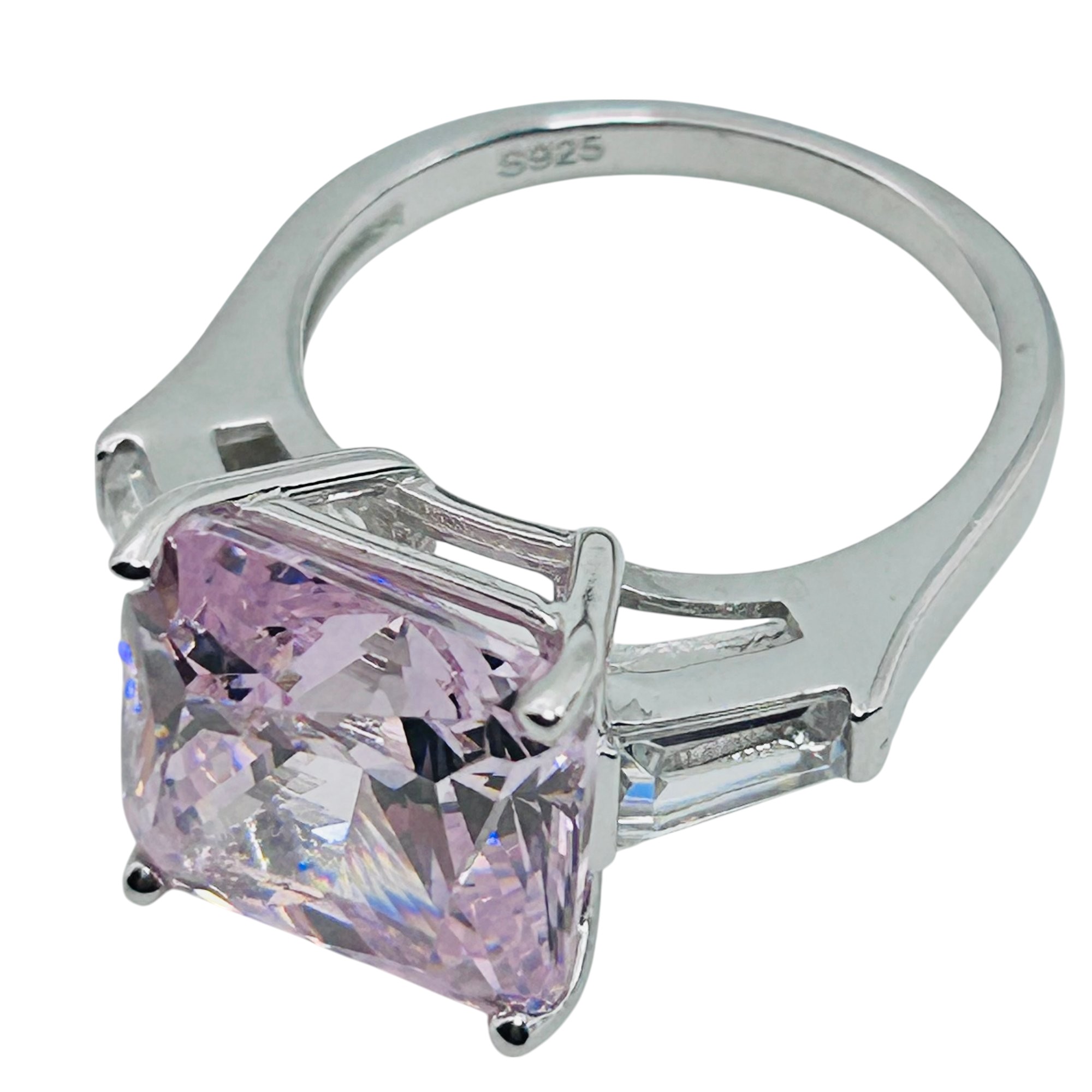 Pink rhinestone sterling square ring sz7 7.2g