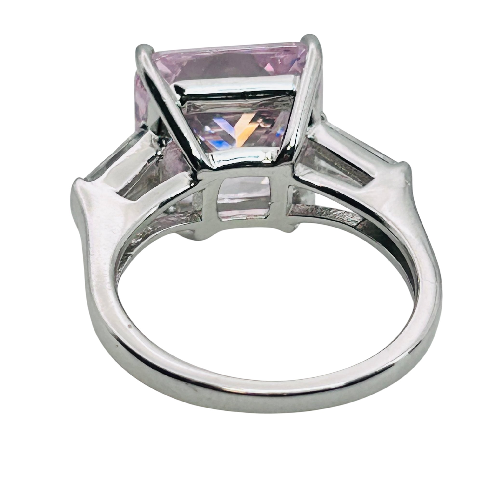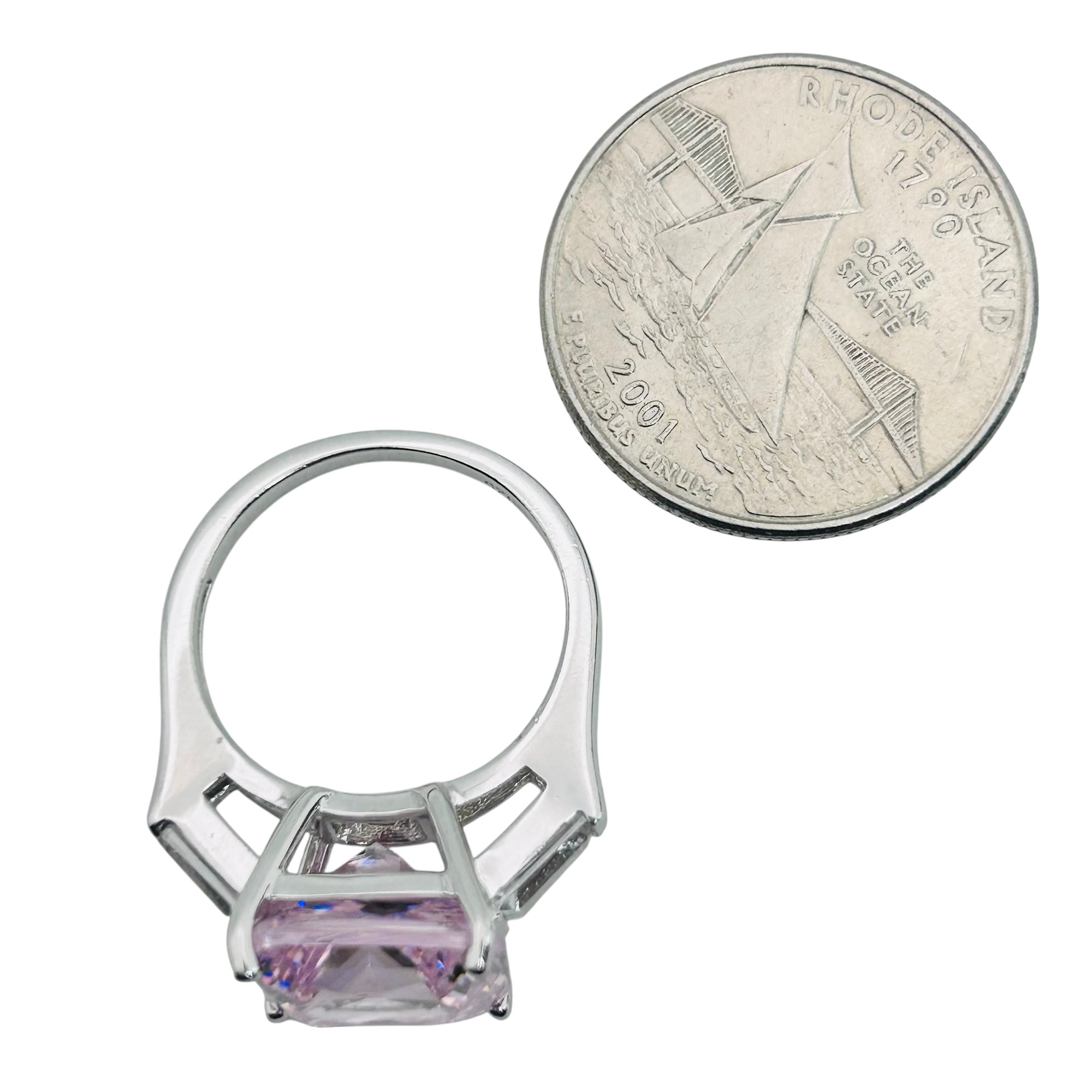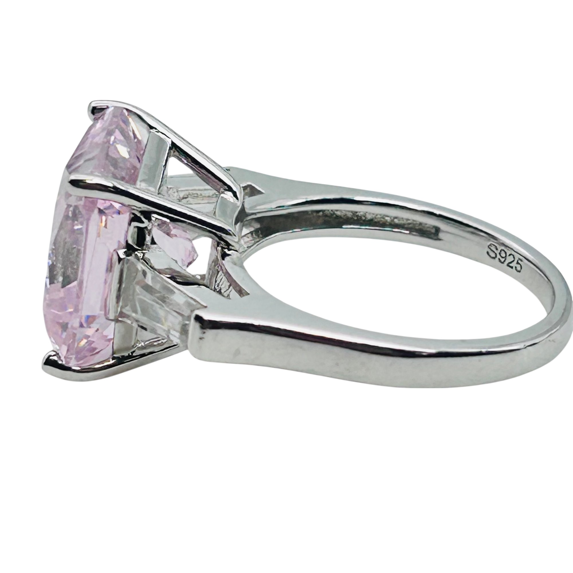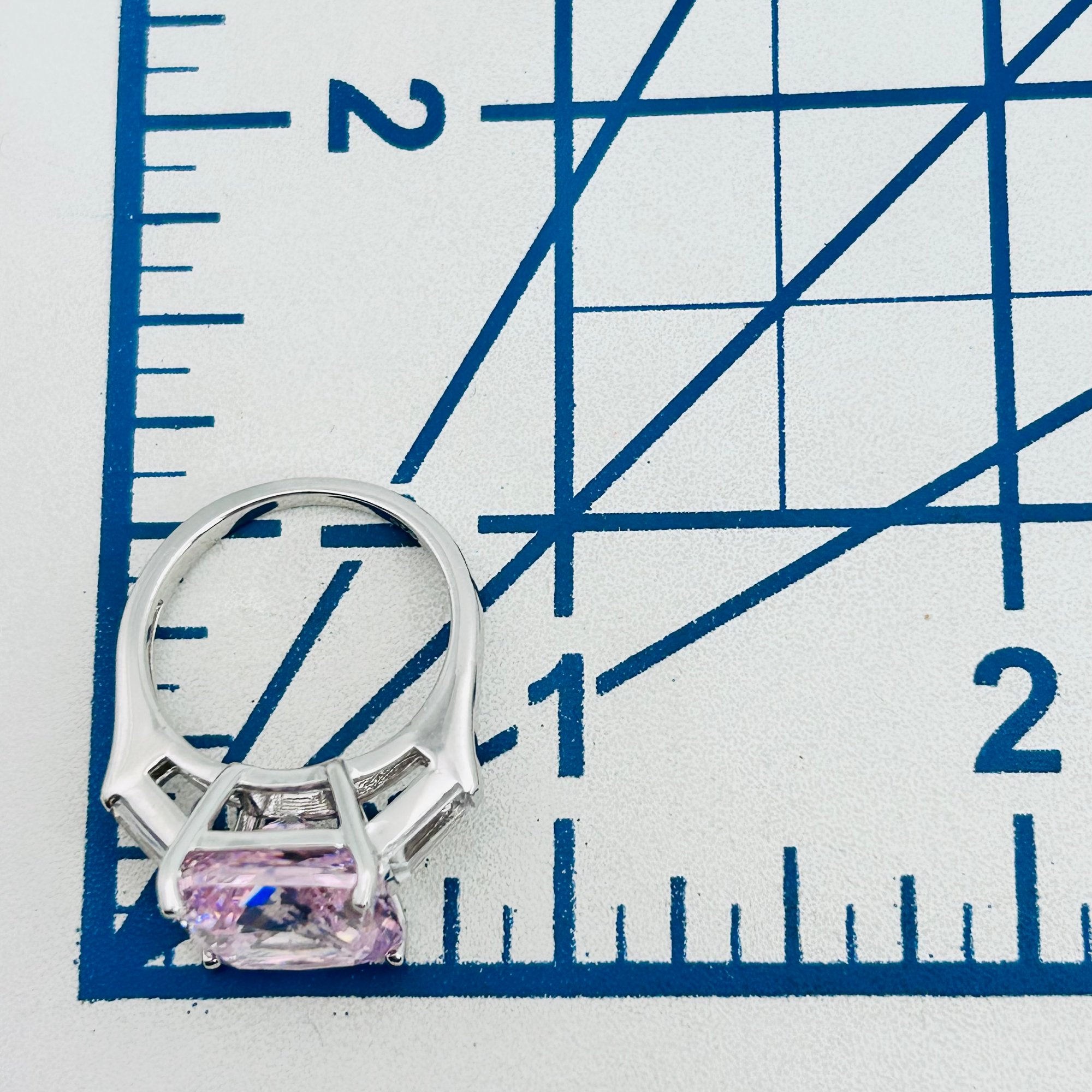 Pink rhinestone sterling square ring sz7 7.2g