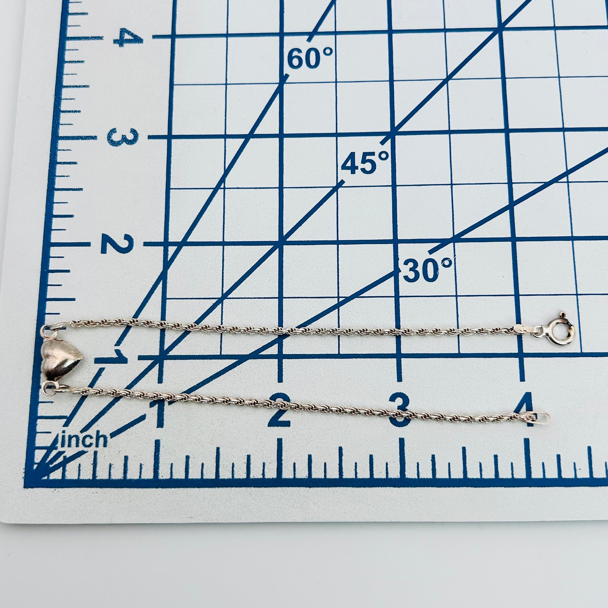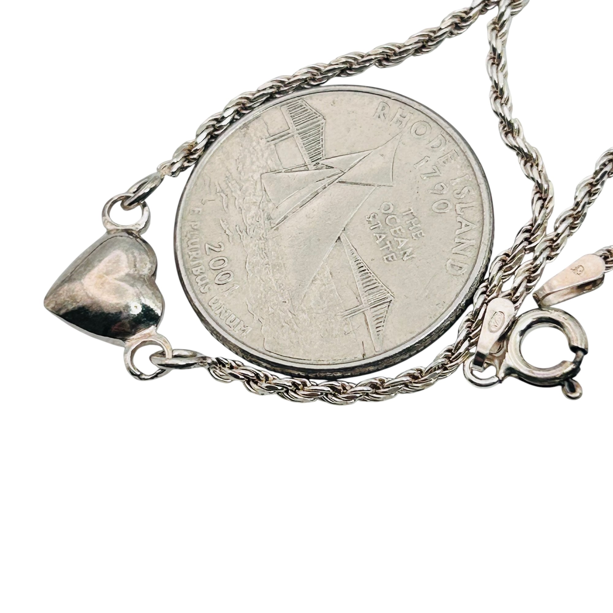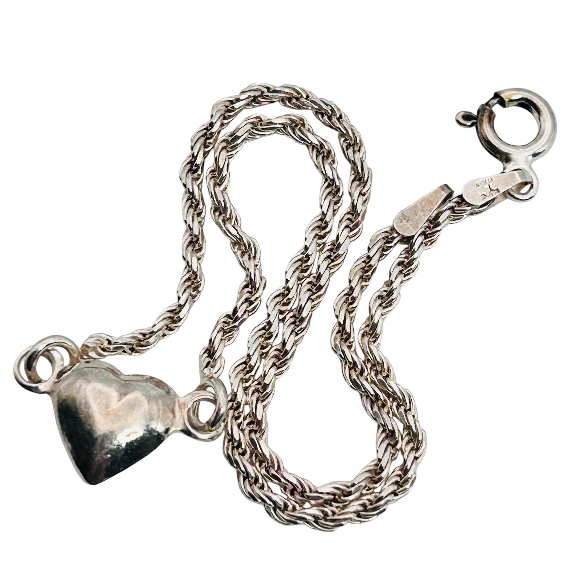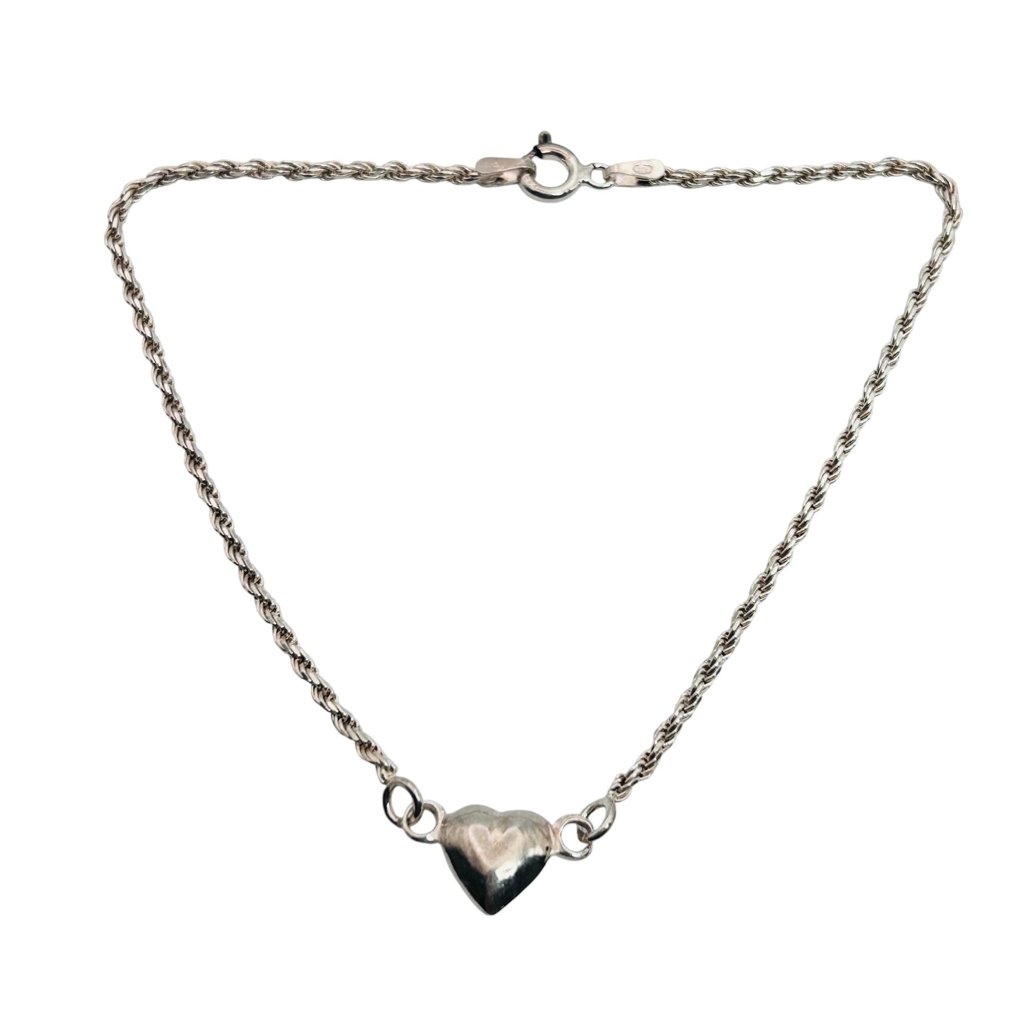 Italy Sterling rope chain heart pendant bracelet or anklet 3.54 g