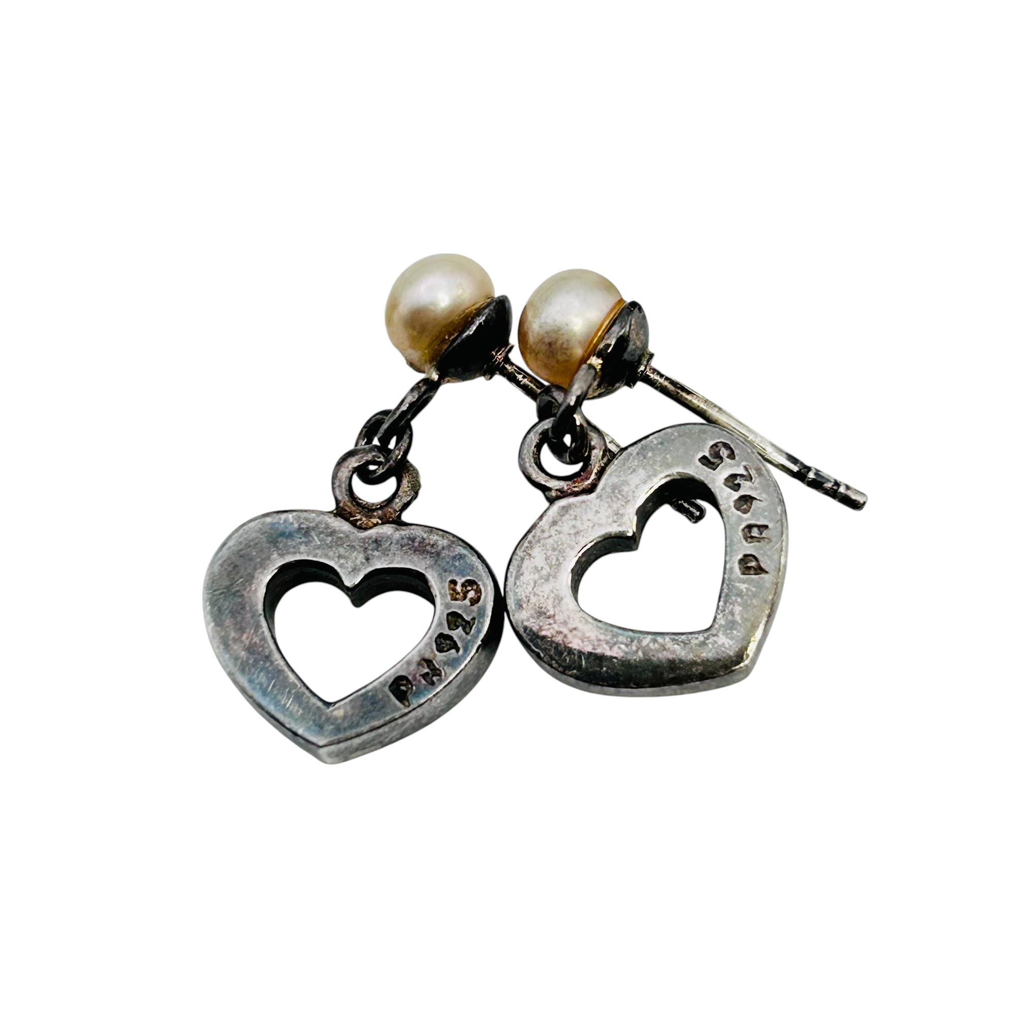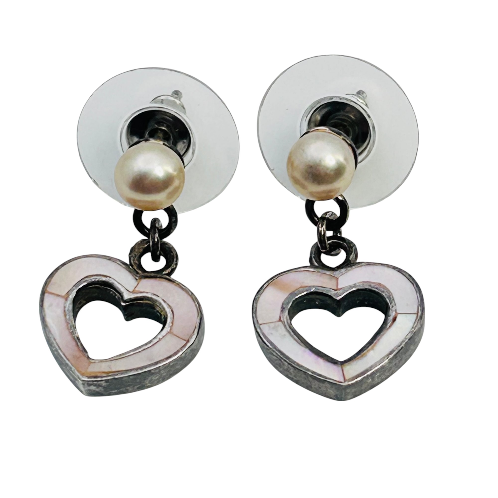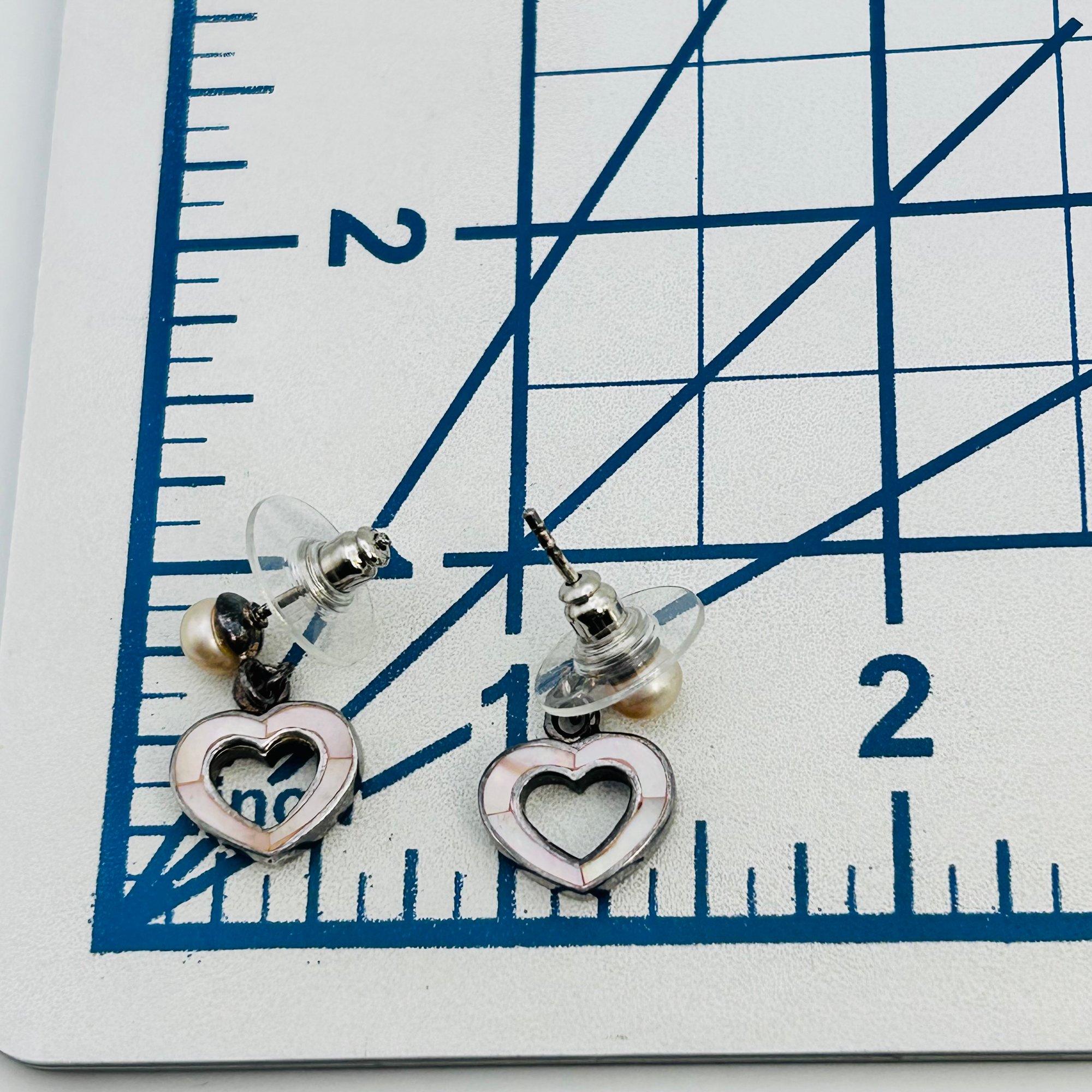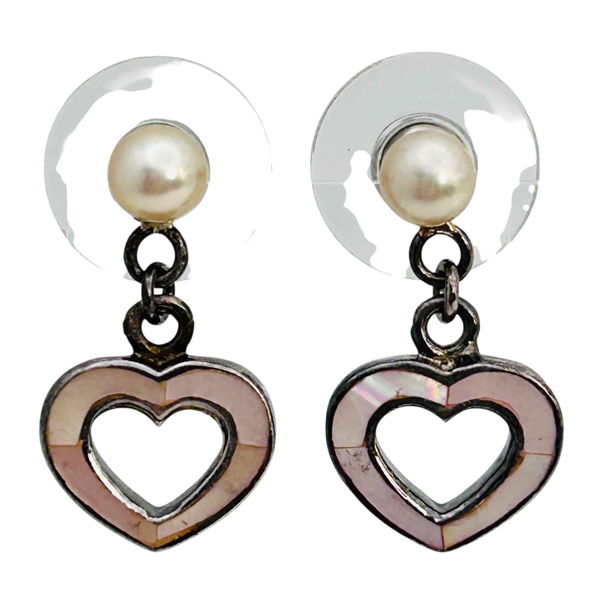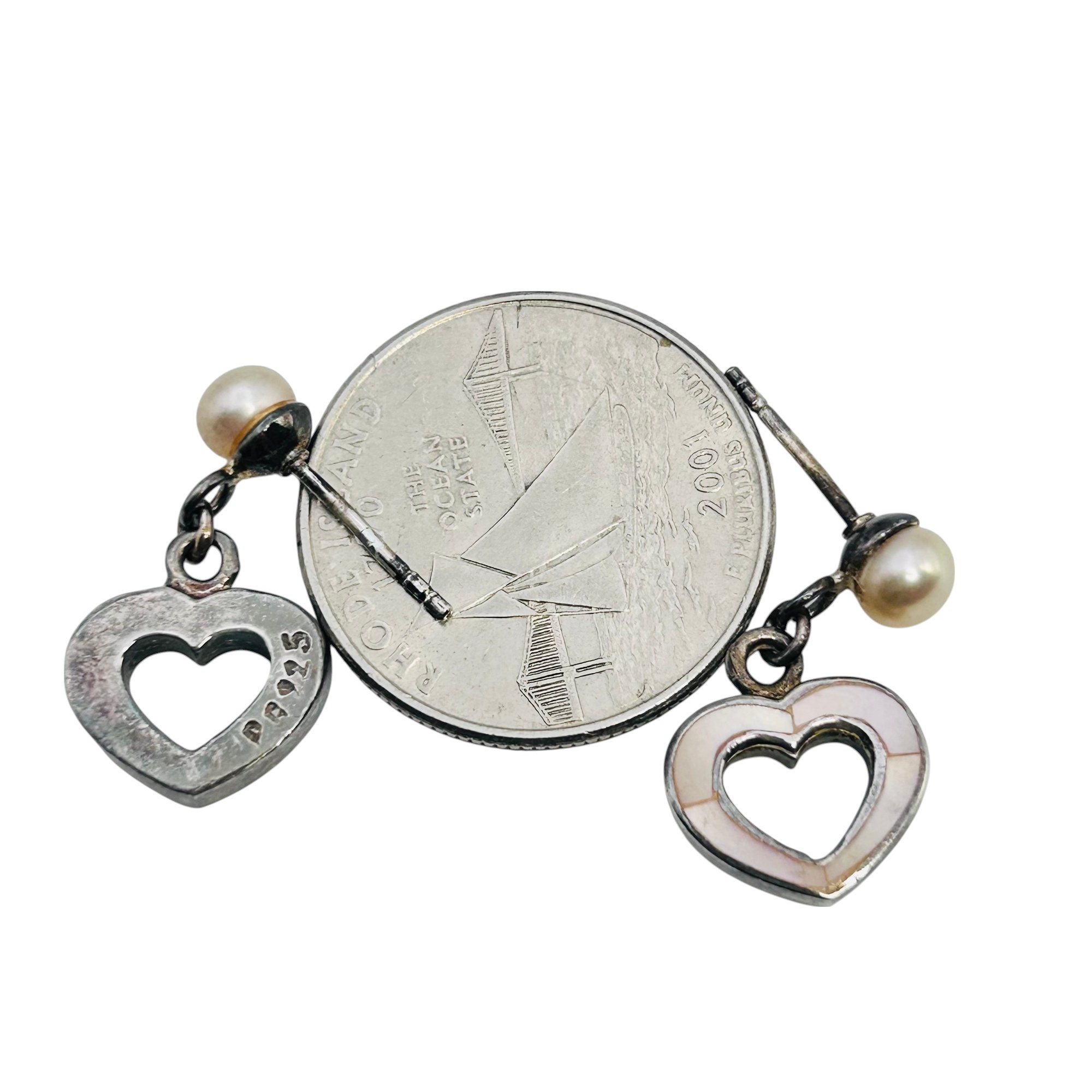 PR Sterling pearl and mother-of-pearl heart dangle earrings 4.35 g